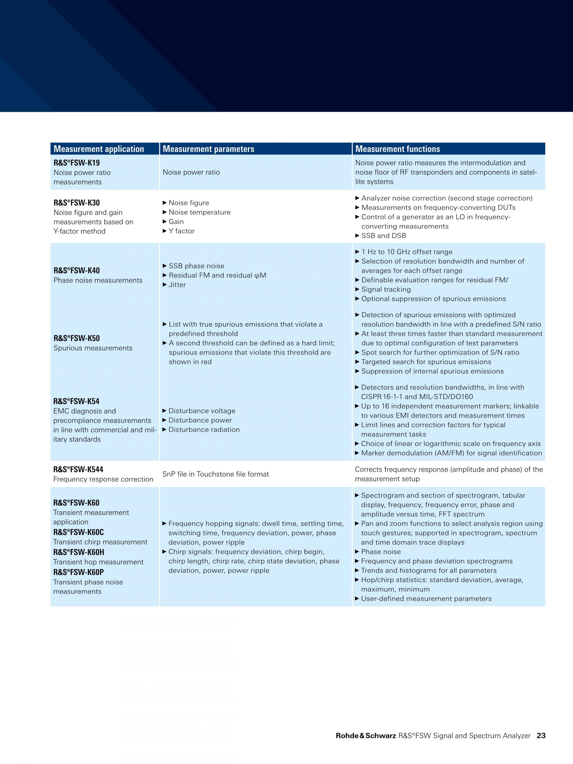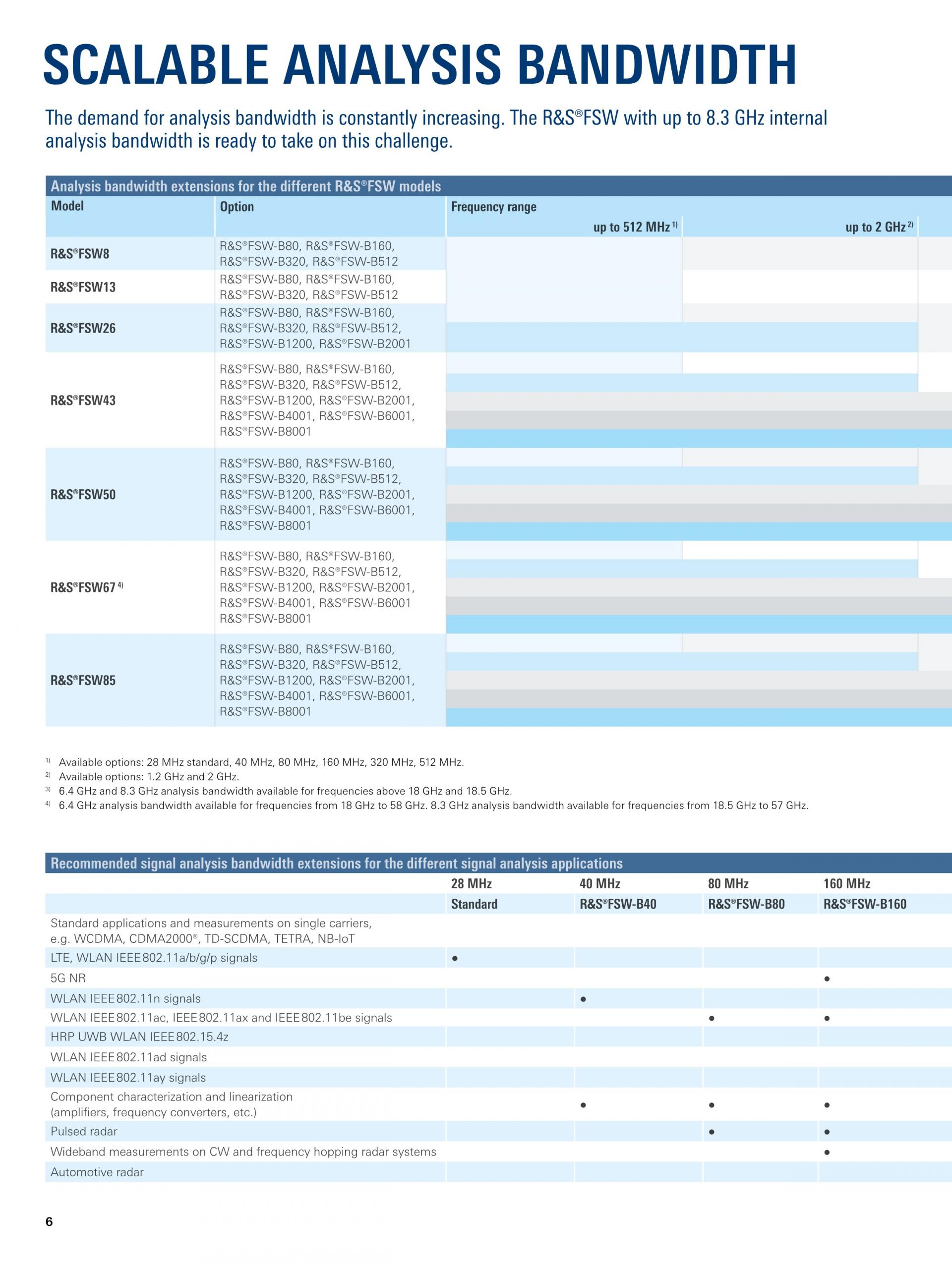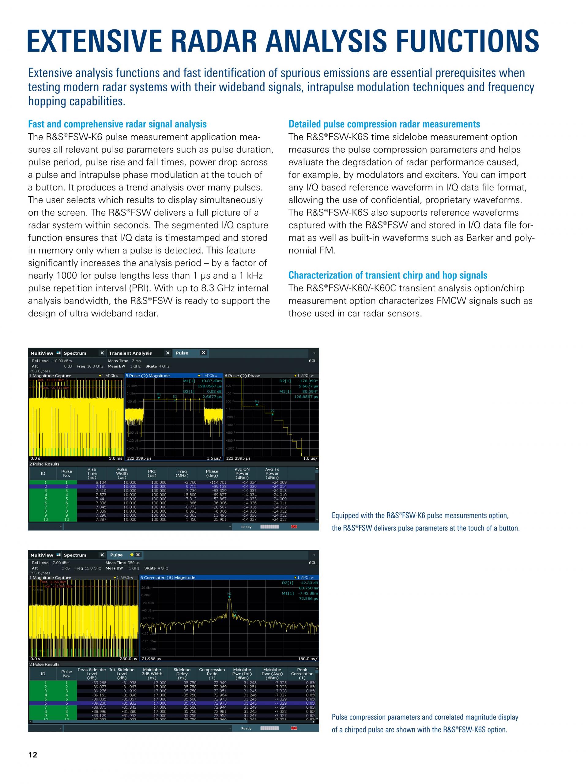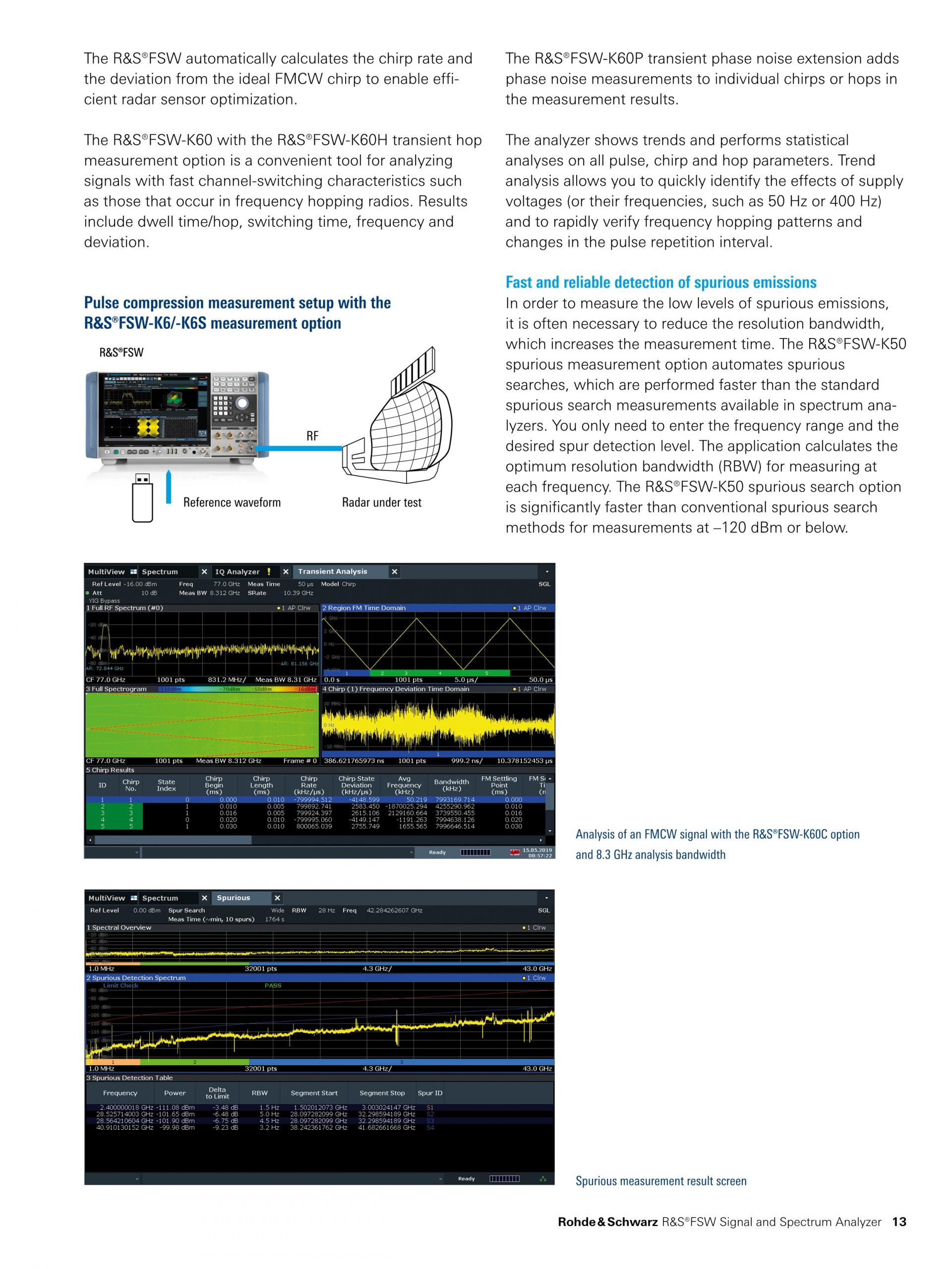 넓은 분석 대역폭(최대 8.3GHz) 외에도, R&S®FSW 분석 기능은 레이더 테스트에 필수적입니다.