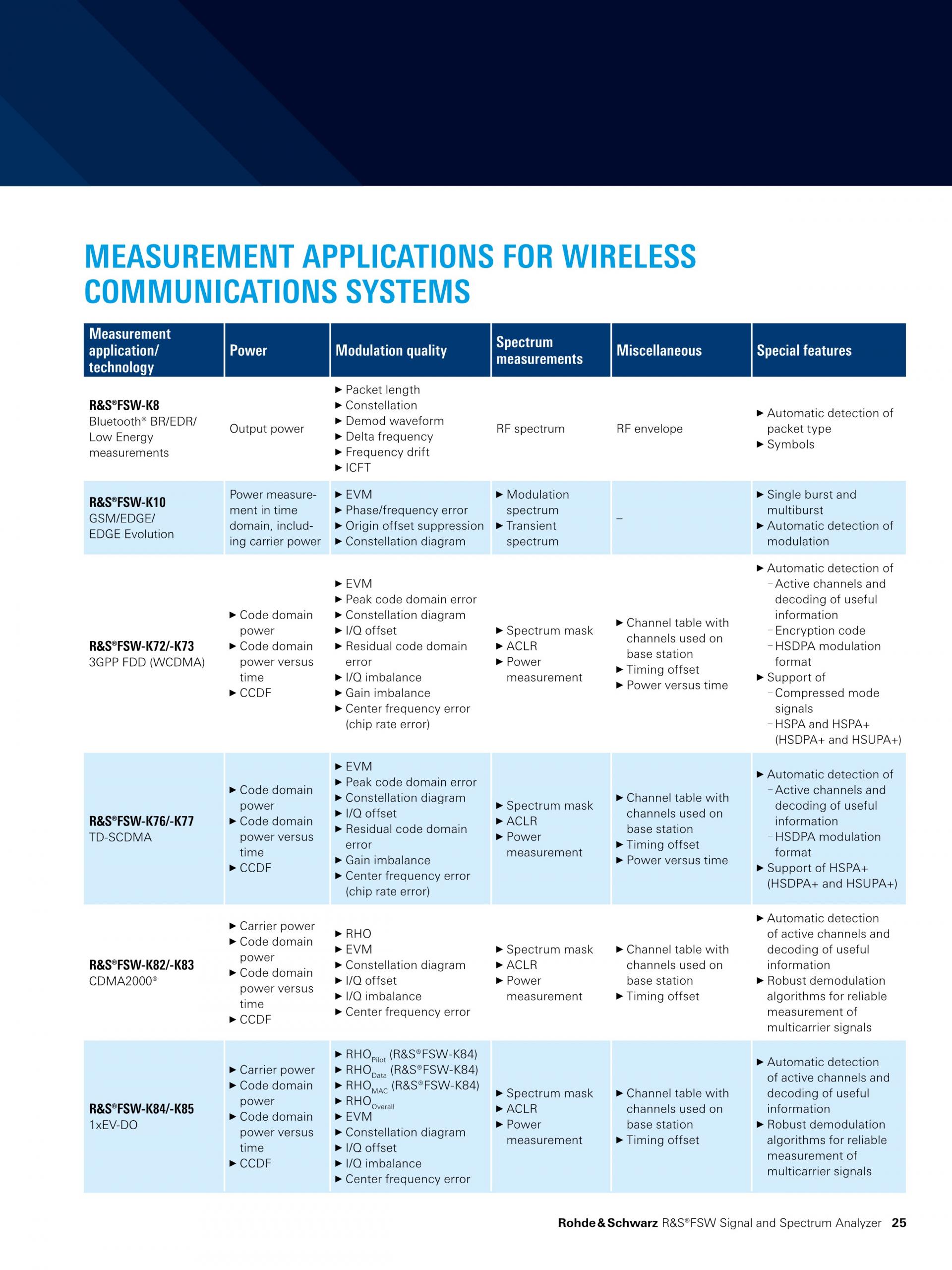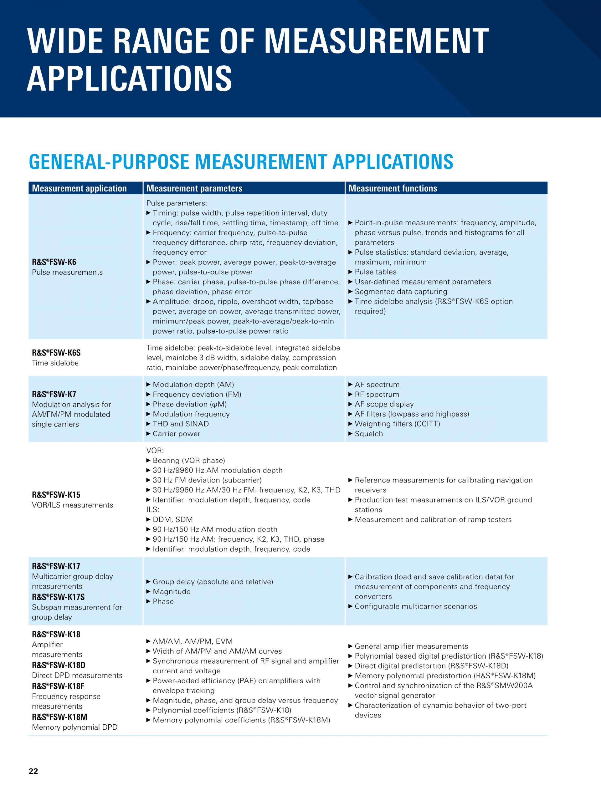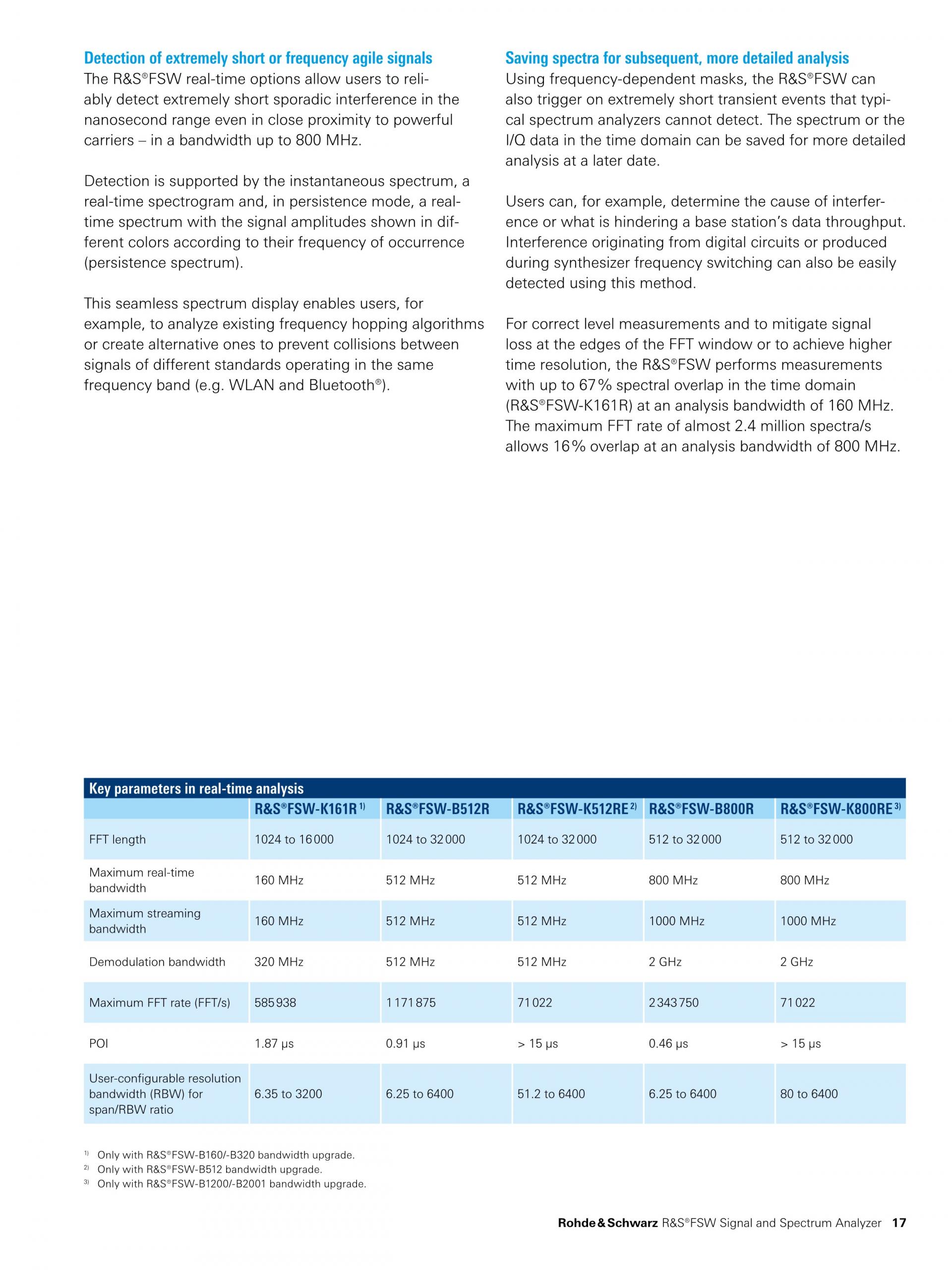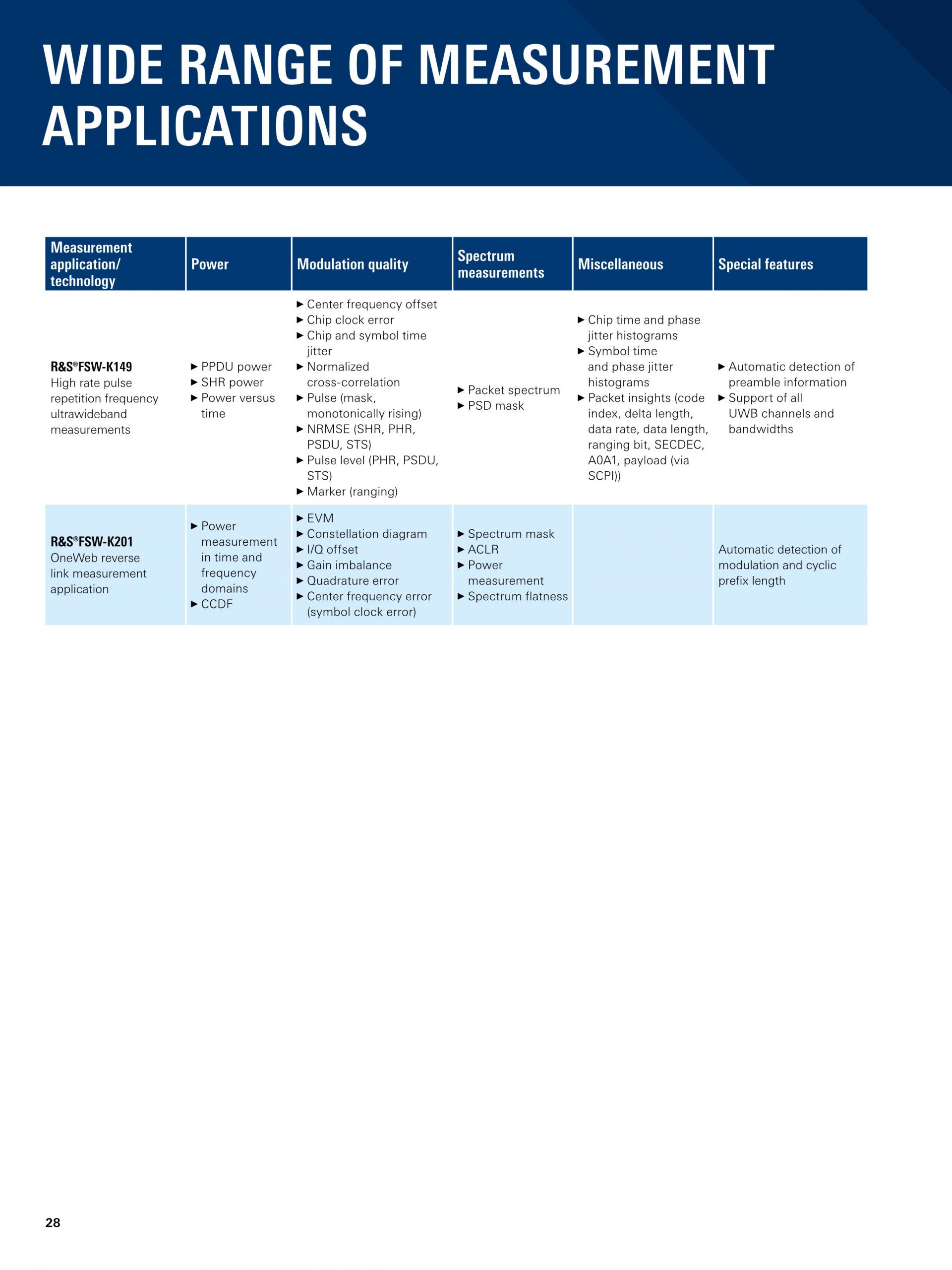 넓은 분석 대역폭(최대 8.3GHz) 외에도, R&S®FSW 분석 기능은 레이더 테스트에 필수적입니다.