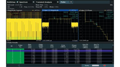 R&S®FSW-K6 Pulse Measurement 옵션 R&S®FSW-K6 Pulse Measurement 애플리케이션은 한 번의 버튼 클릭으로 관련 펄스 파라미터를 모두 측정할 수 있습니다. |