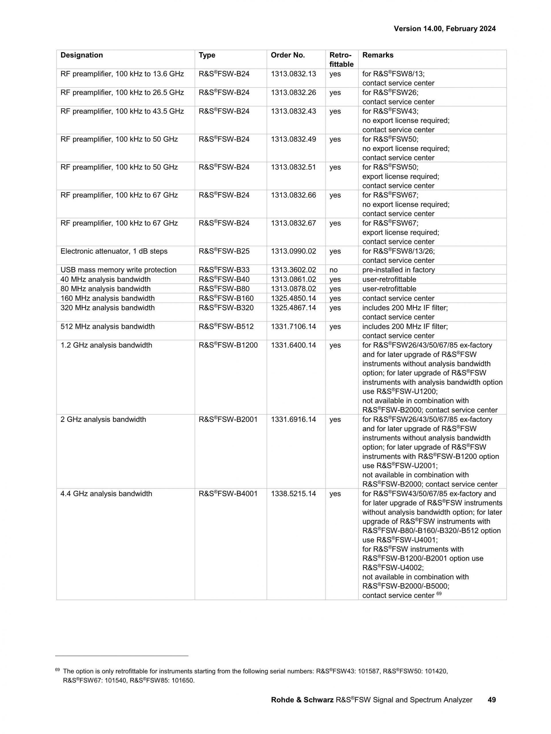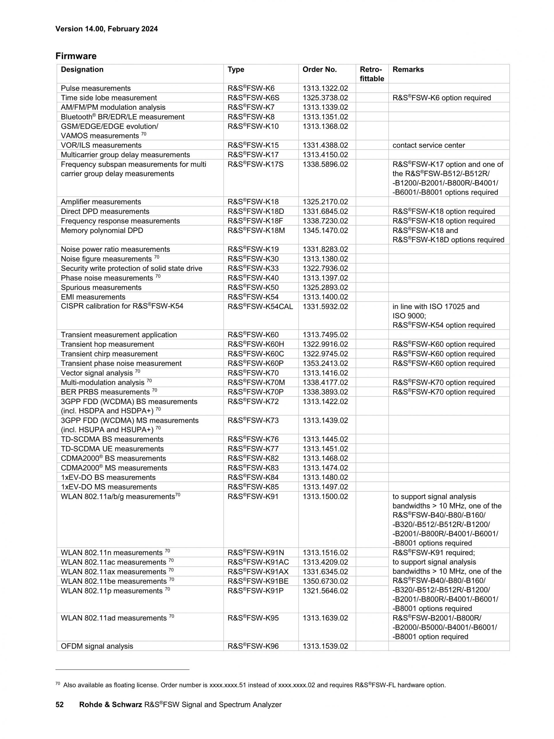 ROHDE & SCHWARZ FSW 신호 및 스펙트럼 분석기