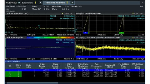 자동차 레이더 측정 R&S®FSW-K60C 옵션 및 R&S®FSW-B2001 2GHz Internal Bandwidth Extension으로 측정한 77GHz에서의 2GHz 대역폭 FMCW 신호 |