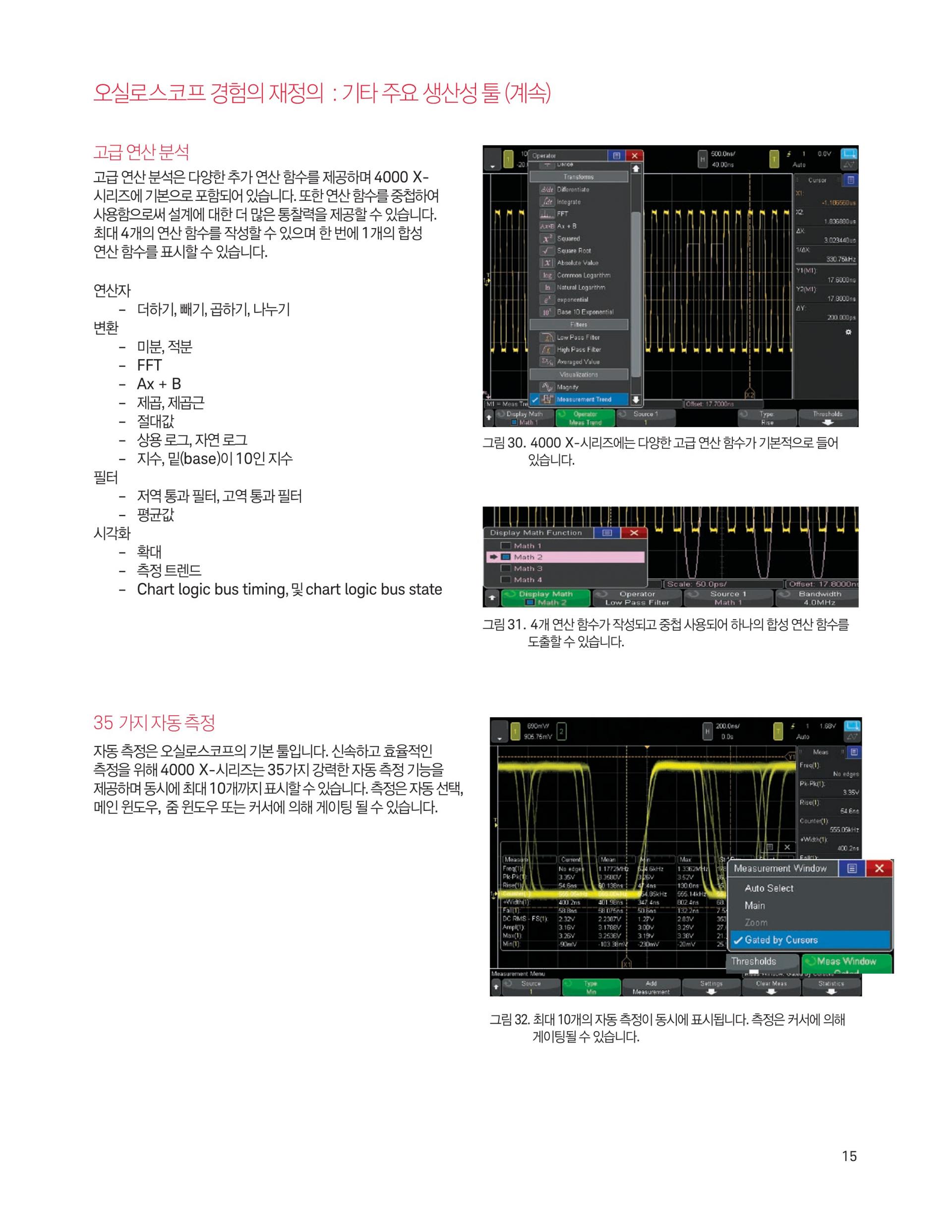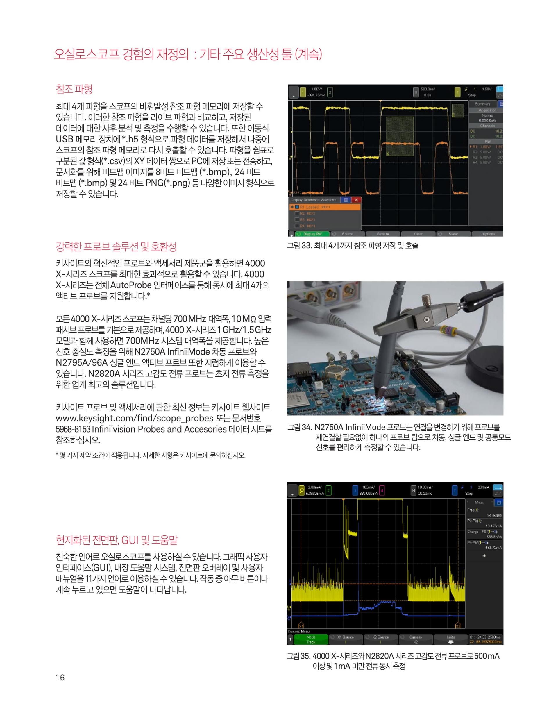 - 4 Mpts의 메모리와 표준 세그먼트 메모리로 더 많은 데이터 수집