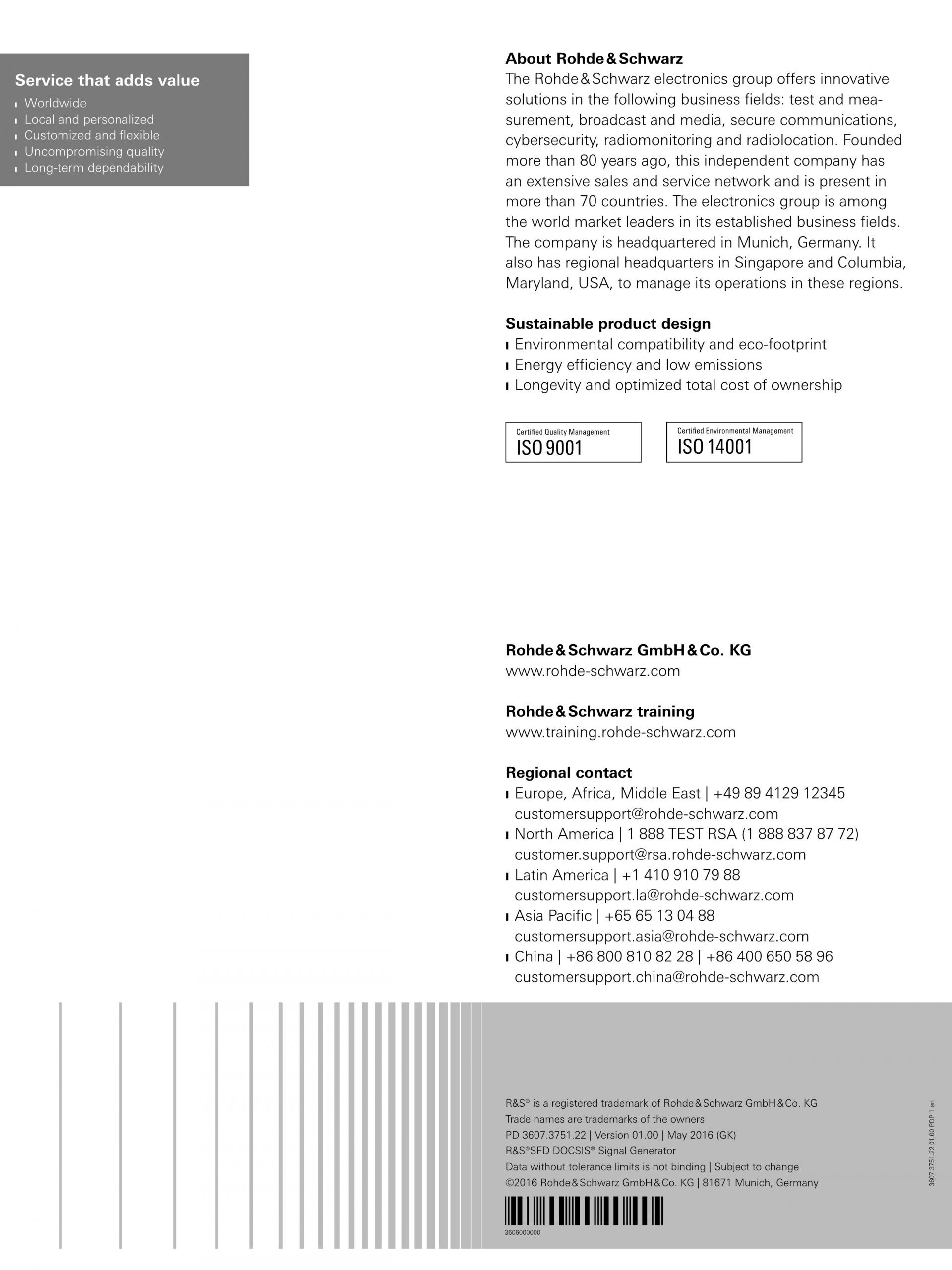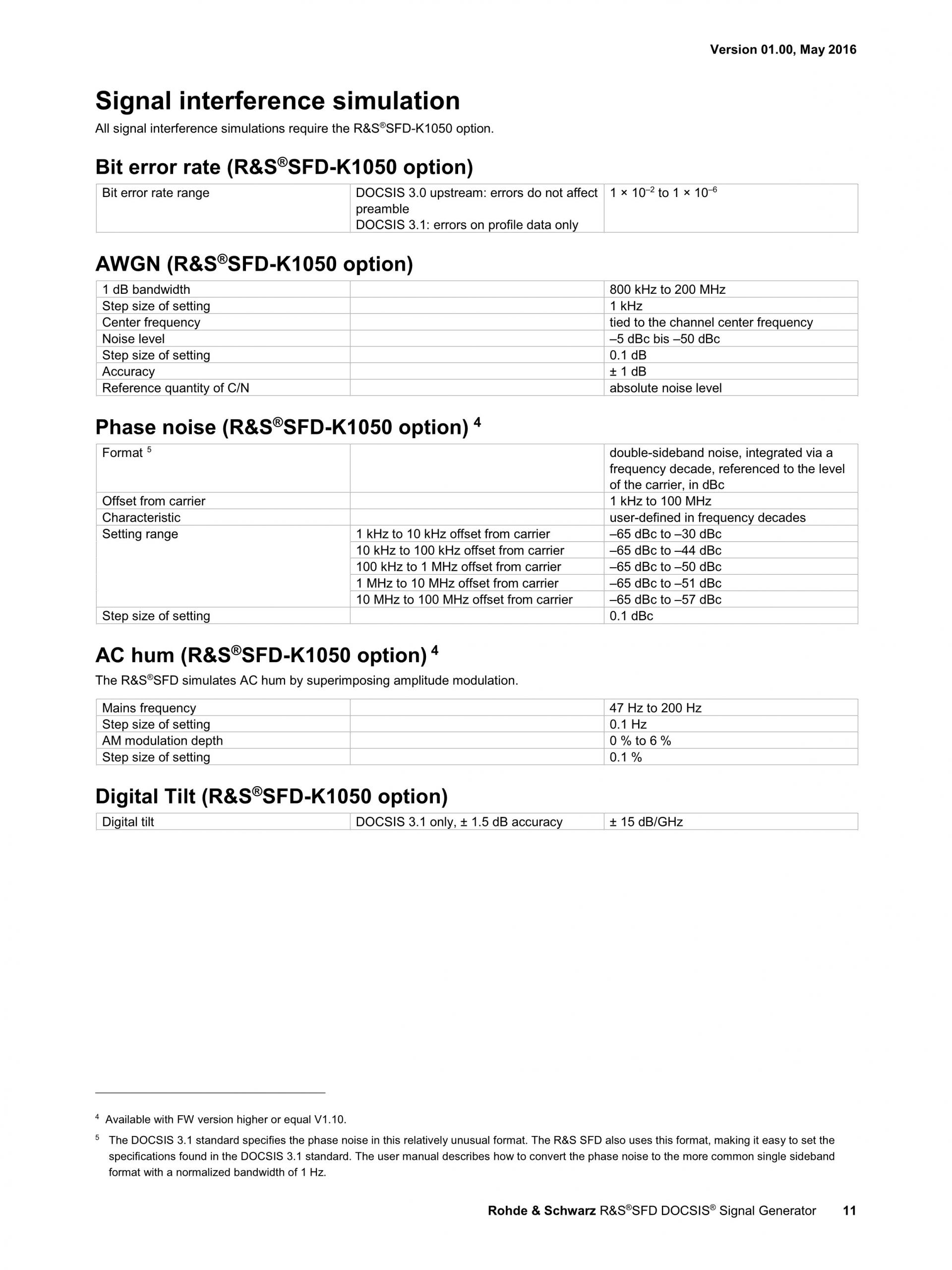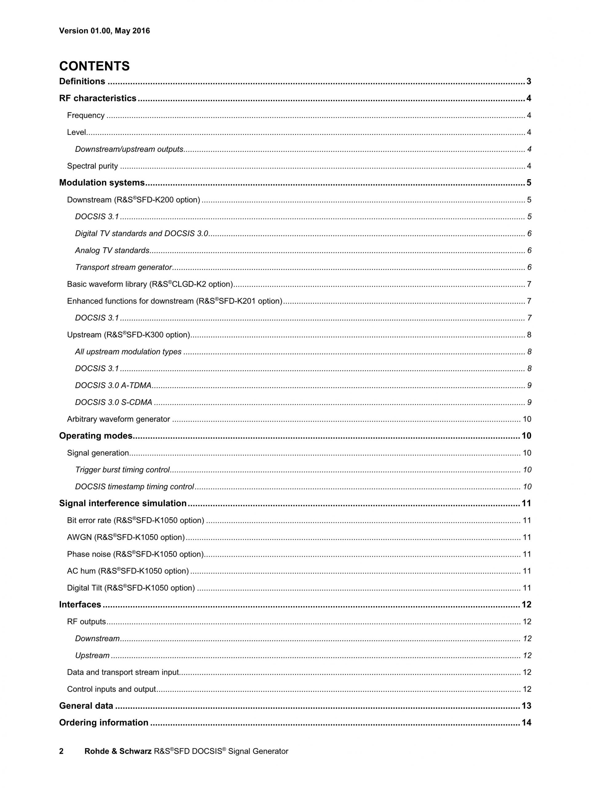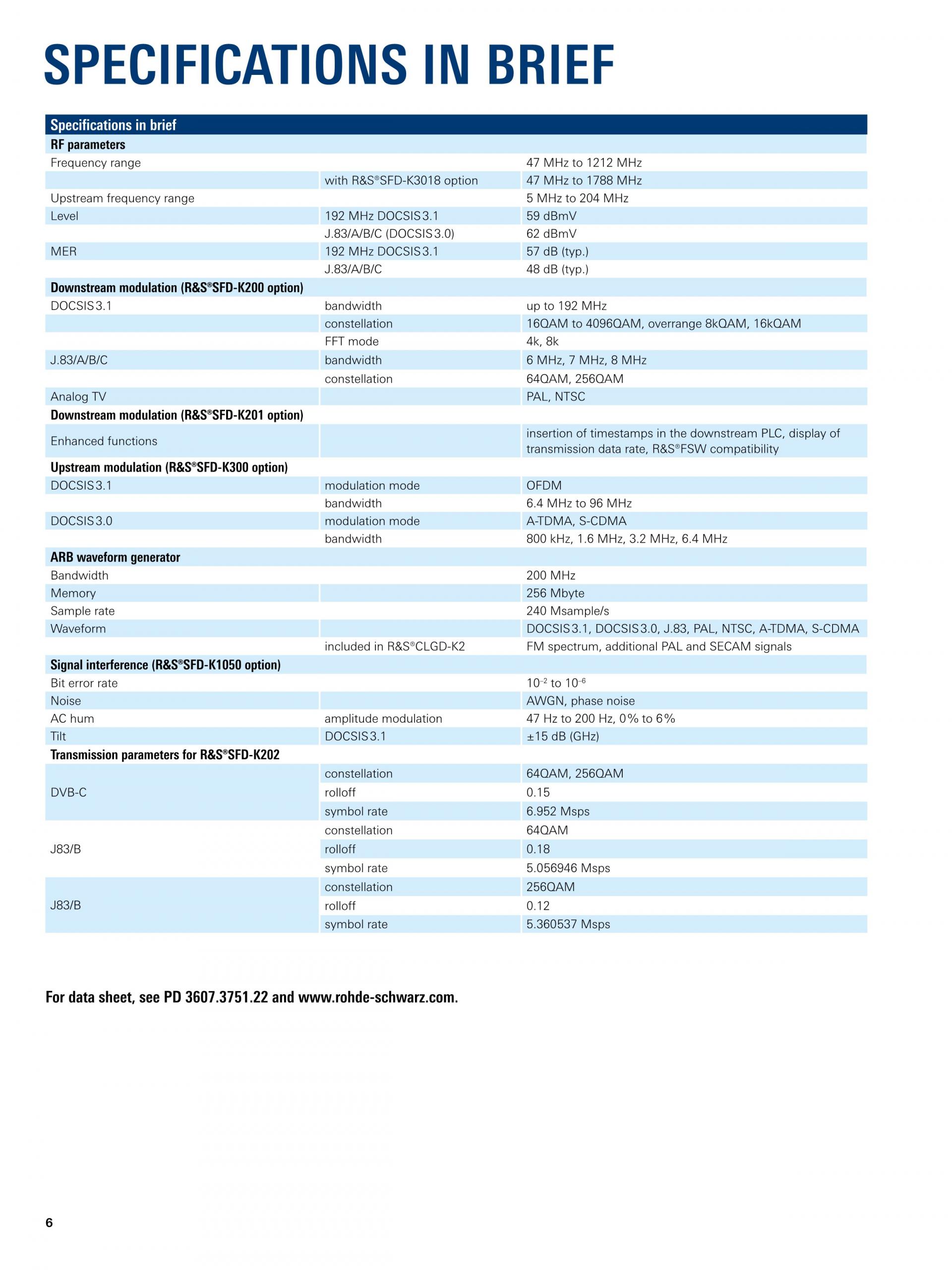 ROHDE & SCHWARZ SFD DOCSIS 신호 발생기