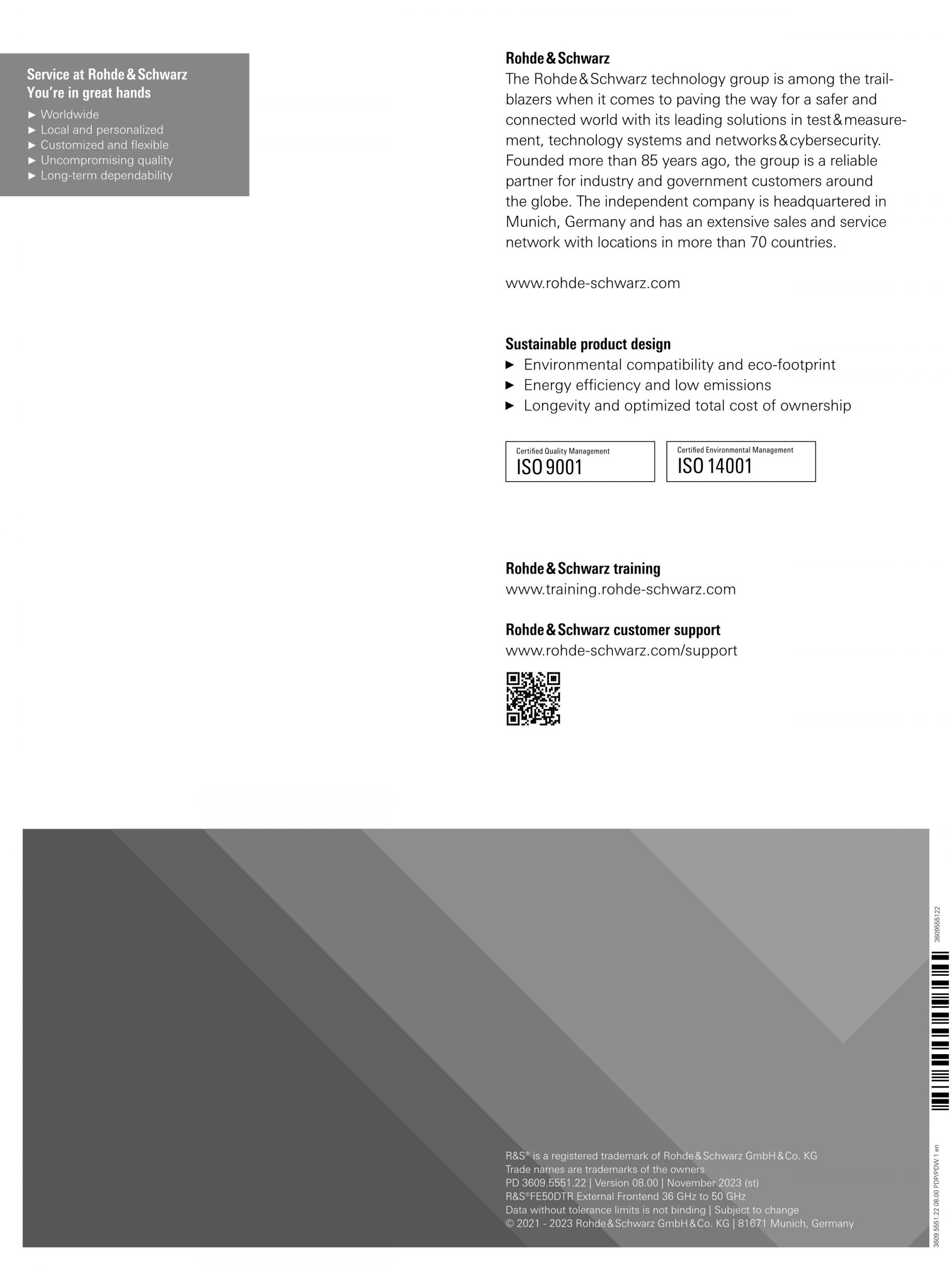 R&S®FE50DTR 외부 프론트엔드는 Rohde&Schwarz 신호 및 스펙트럼 분석기와 신호 발생기의 주파수 범위를 최대 50 GHz까지 확장할 수 있습니다. R&S®FE50DTR은 테스트 대상 장치(DUT)에서 직접 신호의 상향 및 하향 변환을 가능하게 하여 케이블 손실을 줄이고, 감도를 높이며, OTA 환경에서 안테나에 더 많은 전력을 전달합니다. 듀얼 커넥터 시스템을 통해 활성 구성요소의 테스트가 용이합니다.