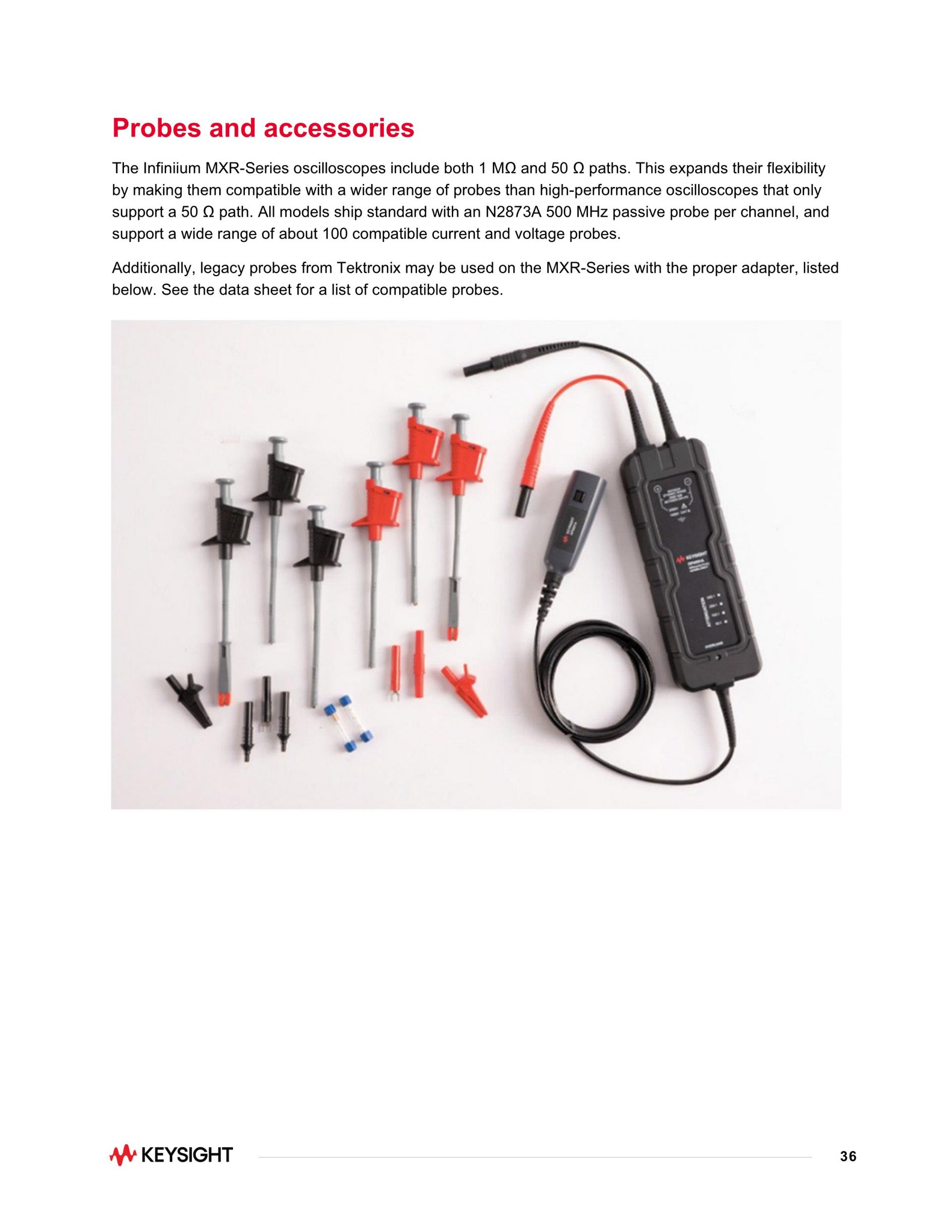 - 채널당 하나의 N2873A 500MHz 패시브 프로브