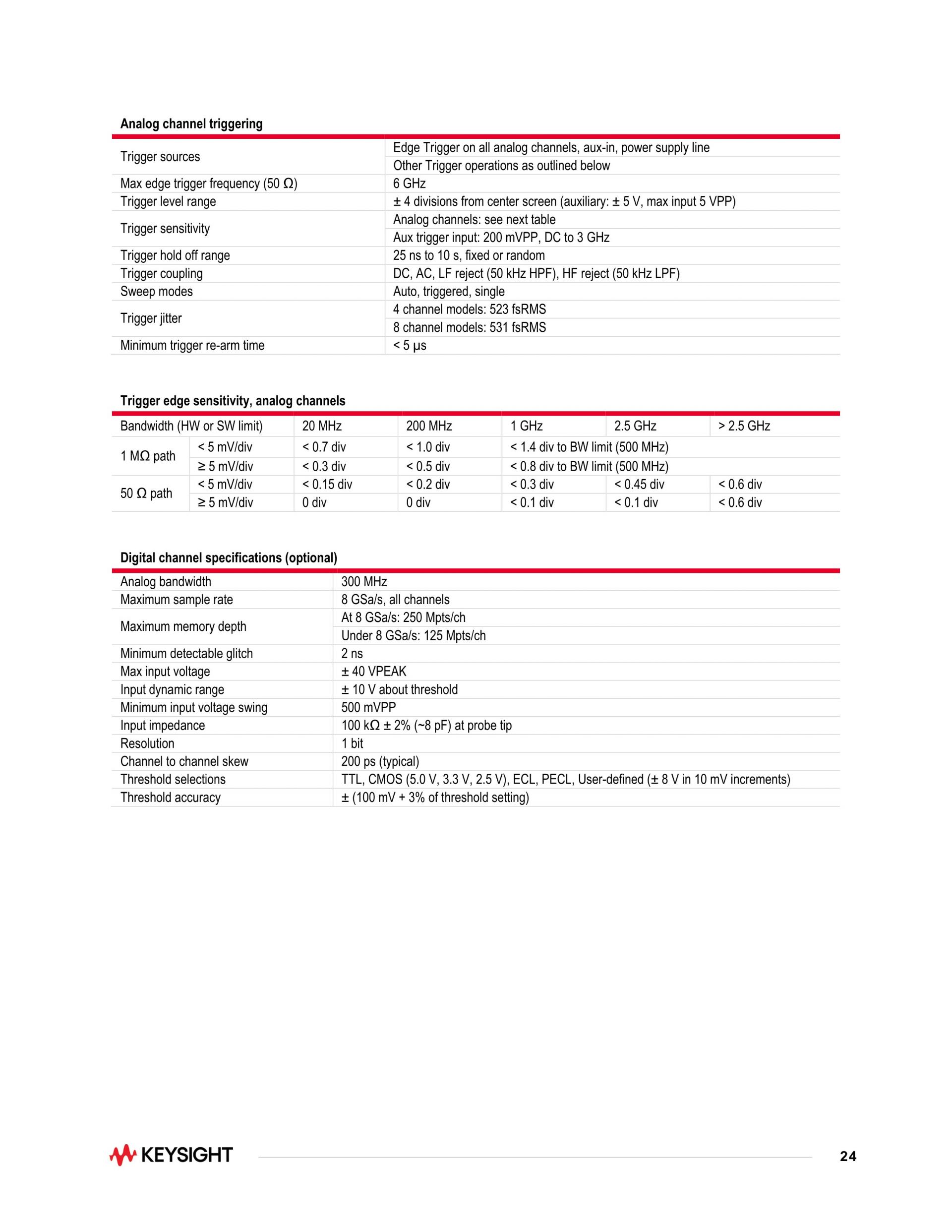 - 8개 아날로그 채널 모두에서 2 GHz