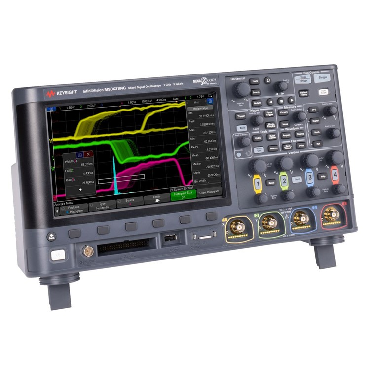 - The DSOX3104G 1 GHz oscilloscope provides 4 analog channels, 4 Mpts memory, 1,000,000 waveforms/sec update rate, zone touch trigger with an 8.5-in capacitive touch screen, and standard embedded software with waveform and measurement histograms.
