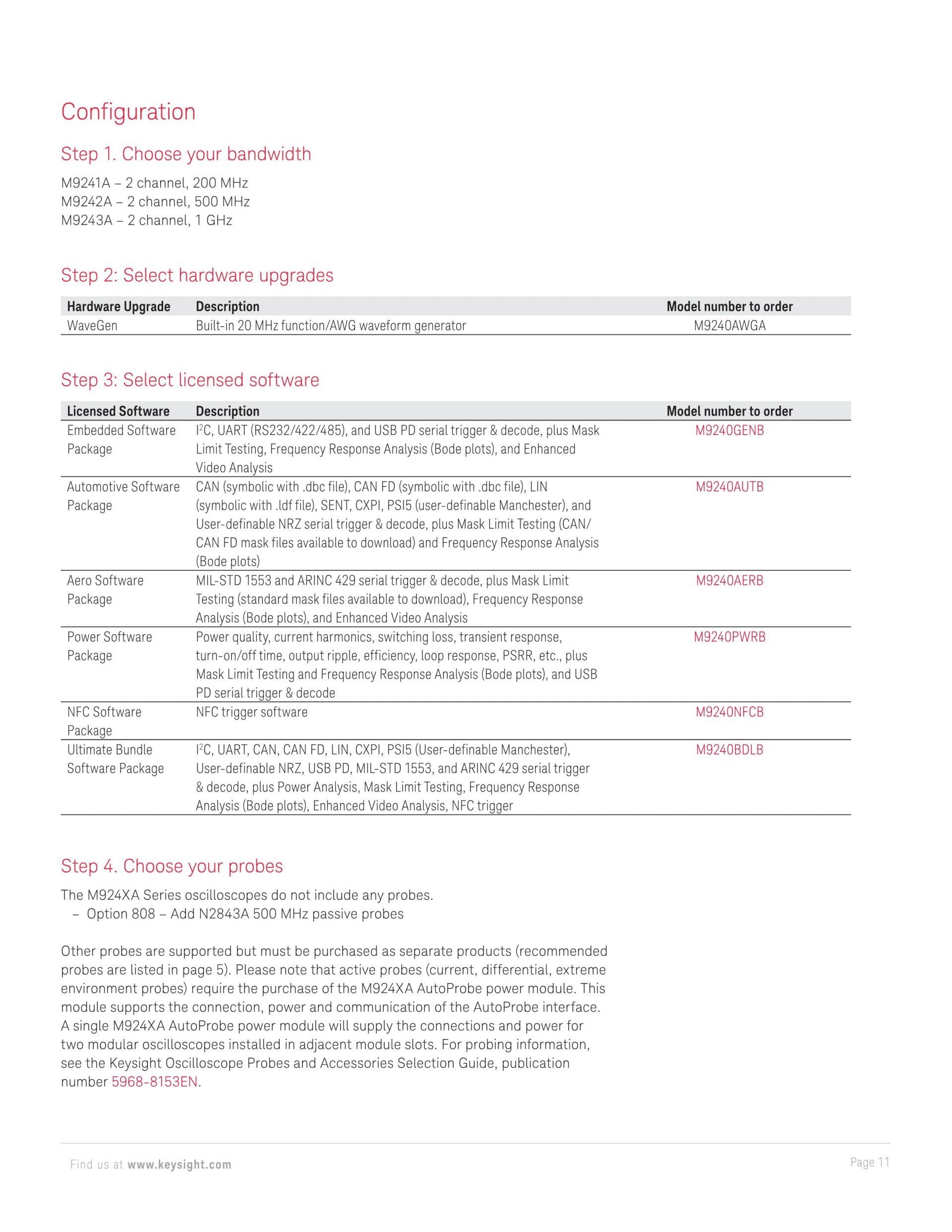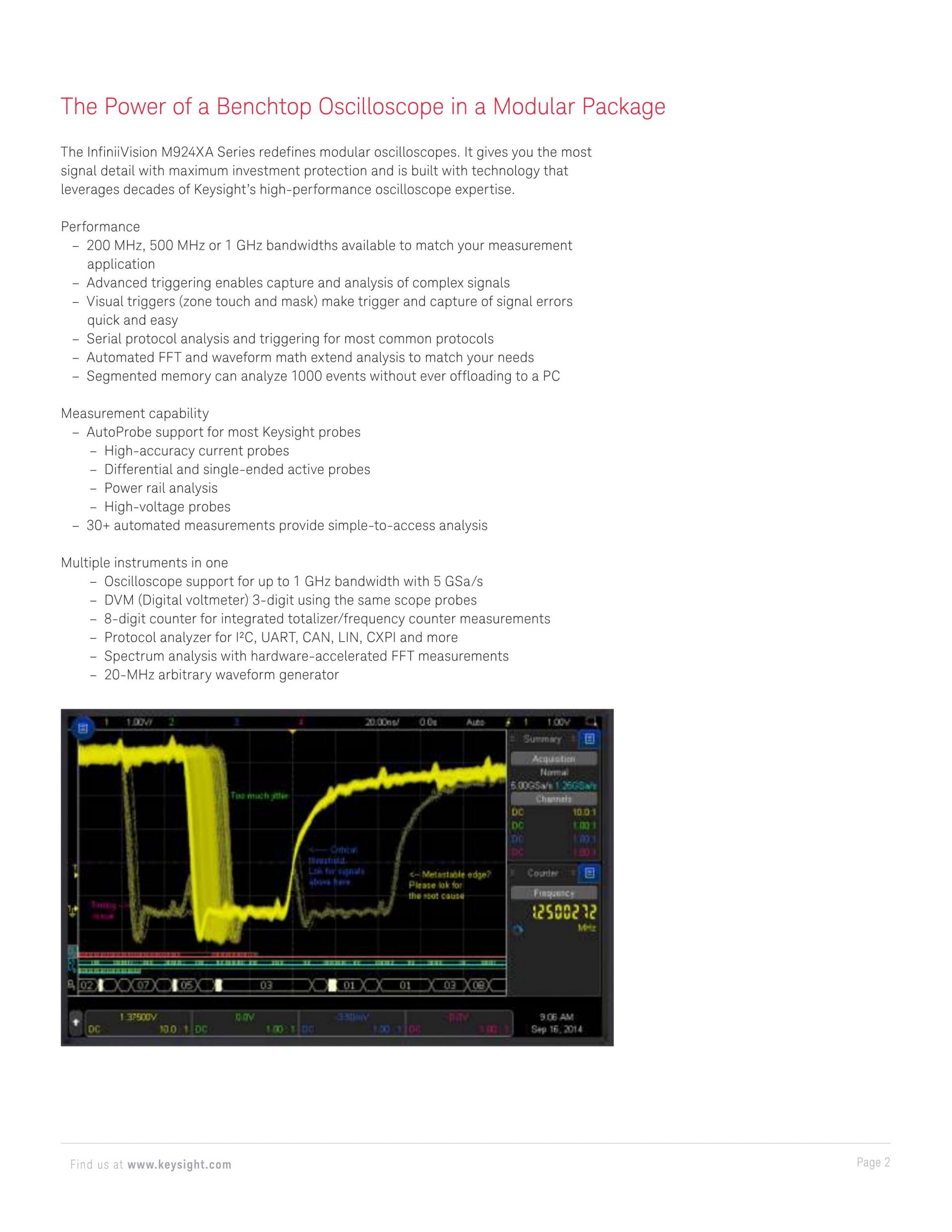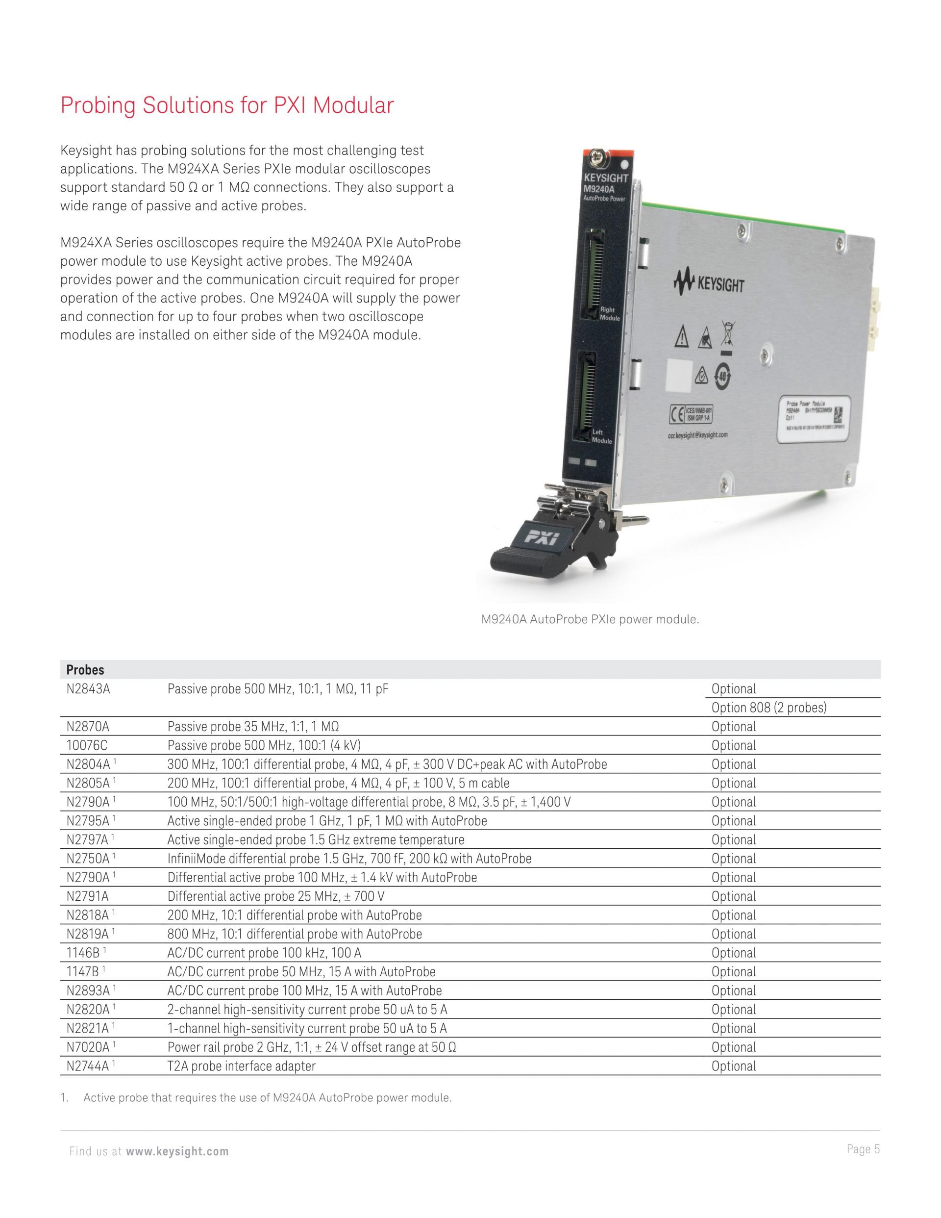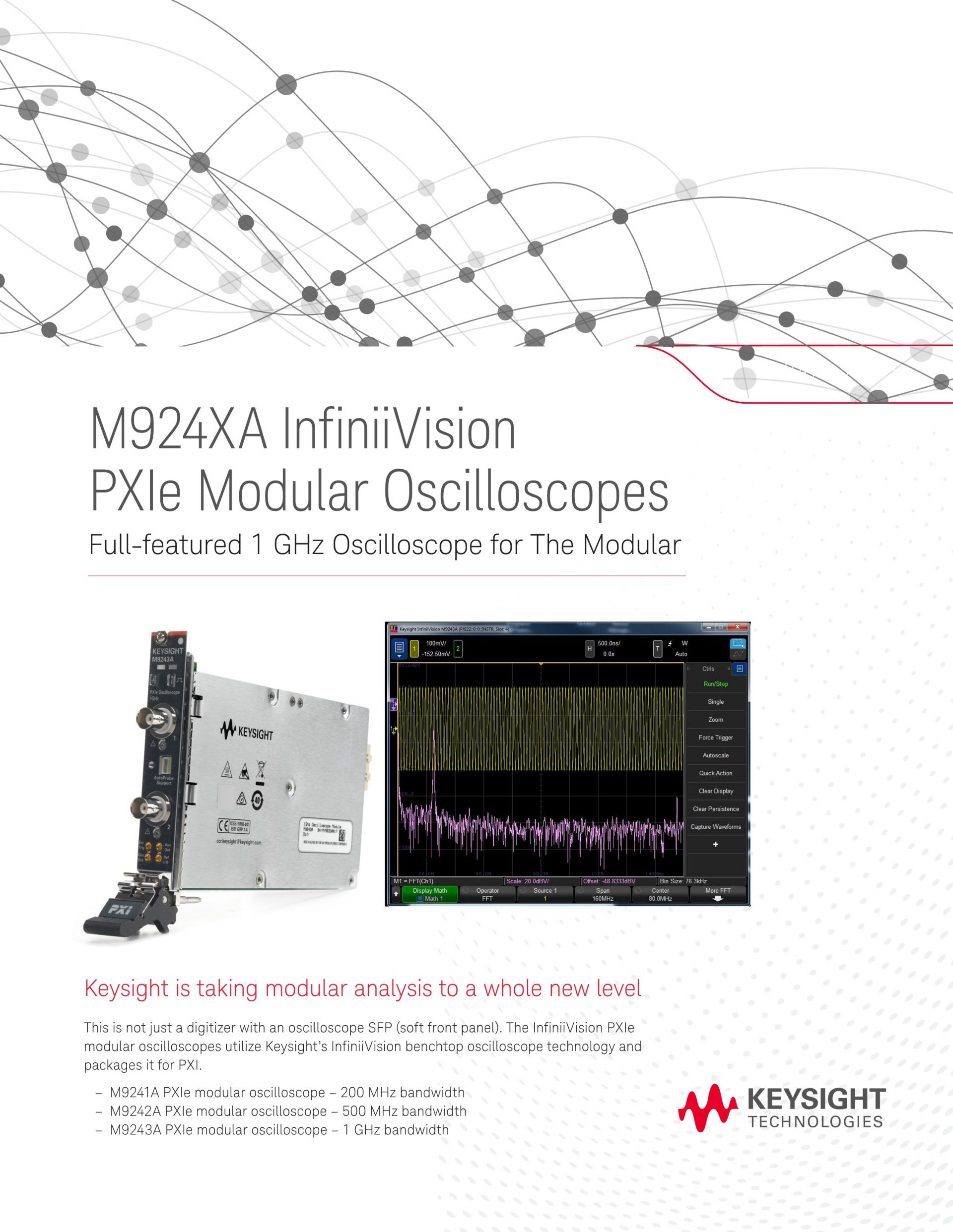 - InfiniiVision M9242A PXIe 모듈러 오실로스코프는 500 MHz의 분석 대역폭을 제공하며 다양한 프로빙 및 분석 도구를 지원합니다.