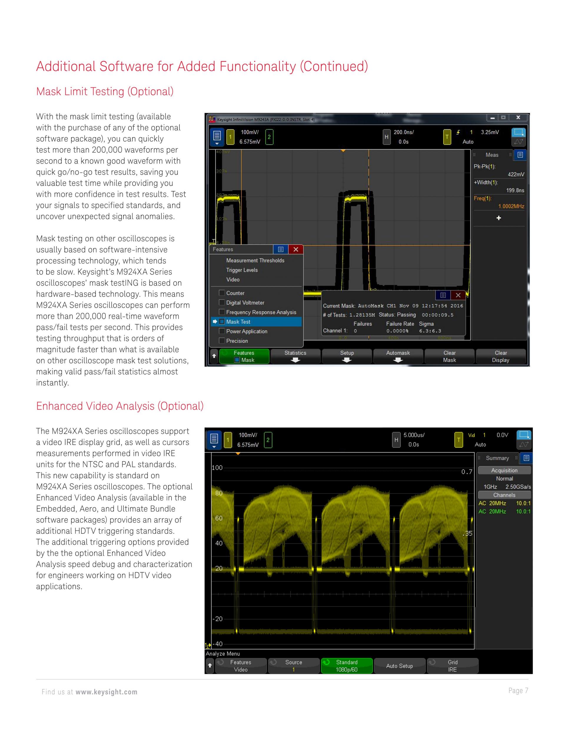 - 추가 옵션: 20 MHz 임의 파형 생성기, 3디지트 전압계, 직렬 트리거 및 분석, 마스크 테스트