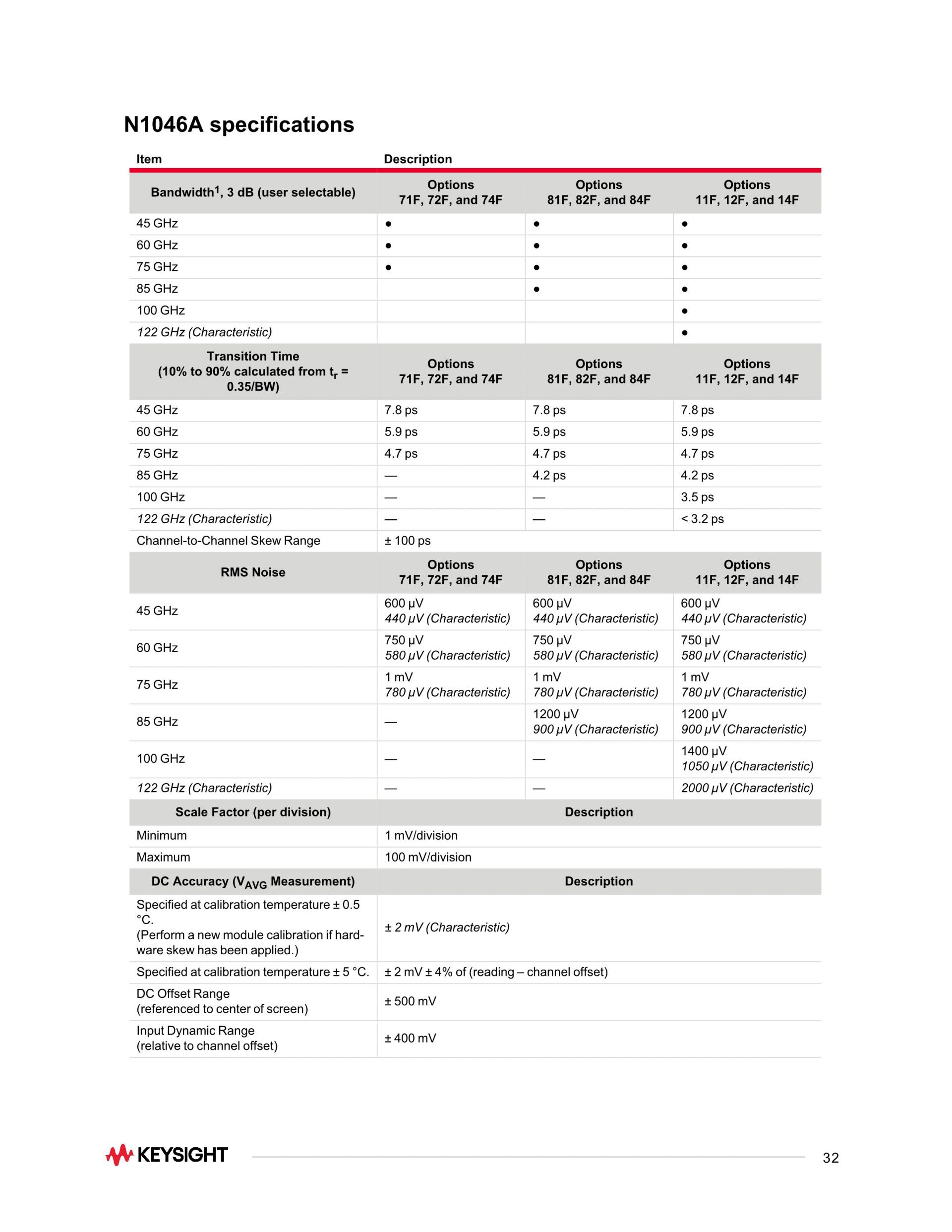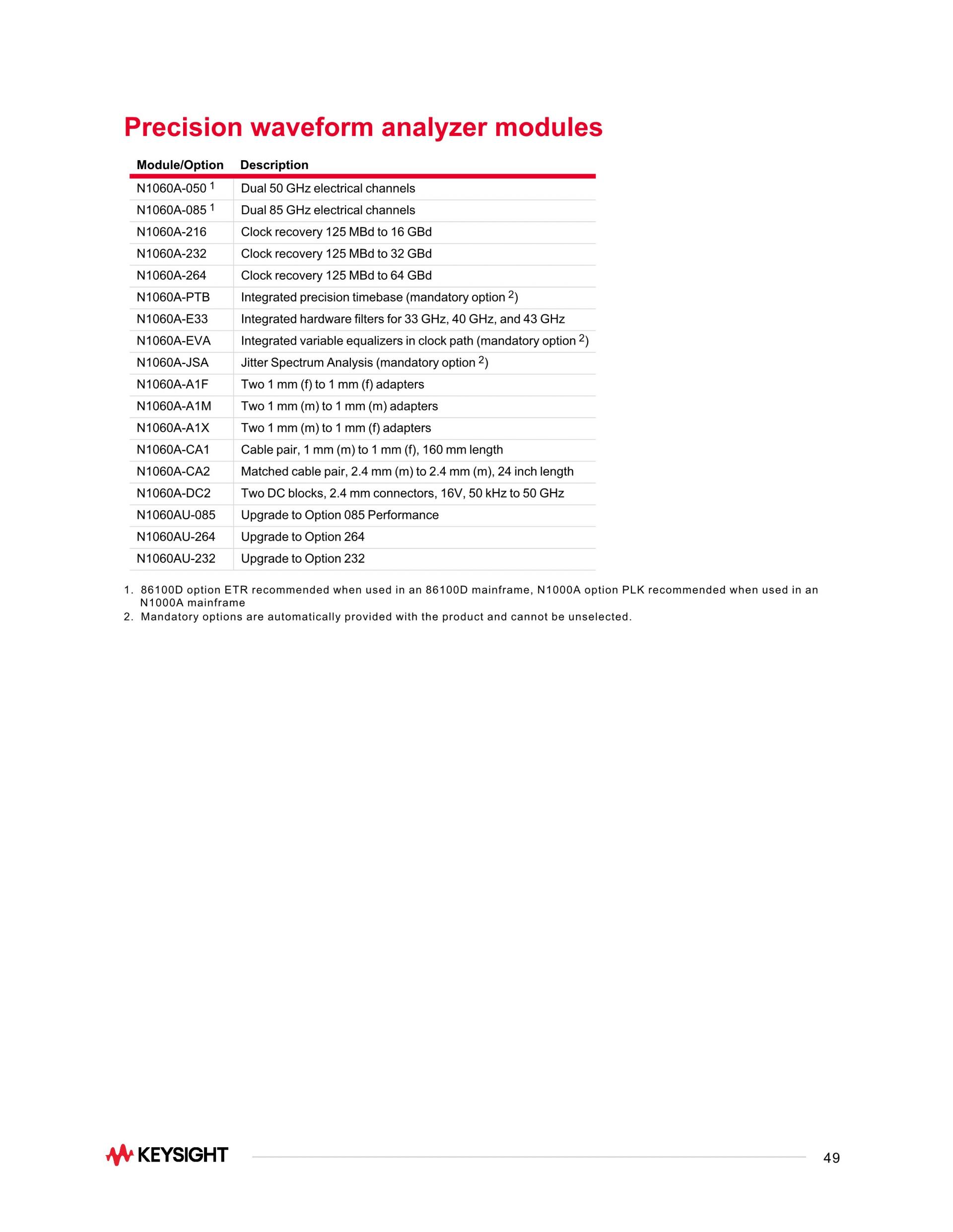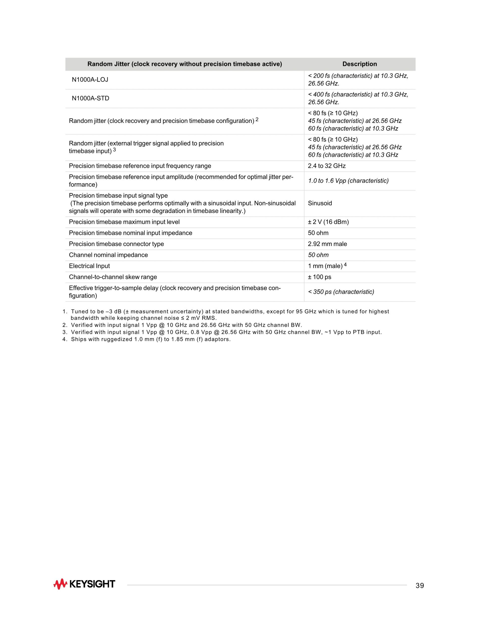 - 최소 50 fs의 낮은 지터와 최소 275 µV의 적은 노이즈, 110 GHz가 넘는 테스트 대역폭을 테스트합니다.