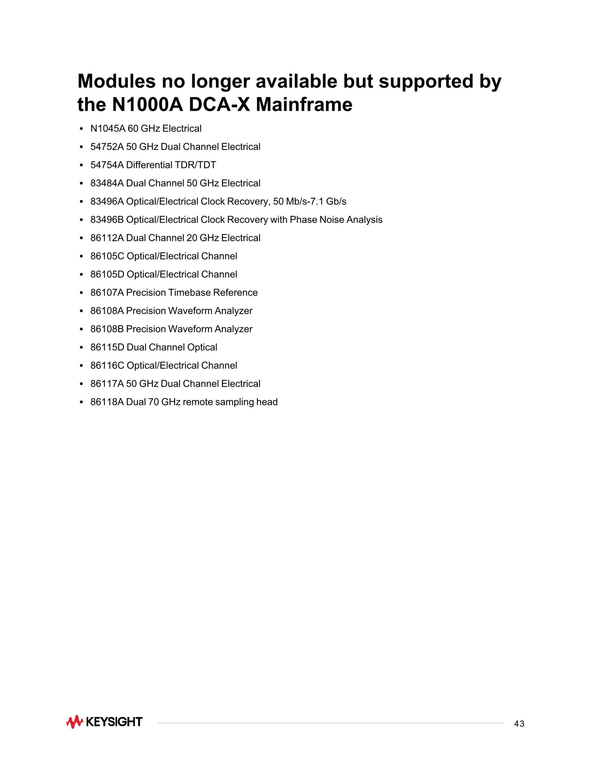 - 투자 보호를 위해 최신형 모듈 외에도 오래되어 단종된 광, 전기 및 TDR 모듈까지 지원합니다.