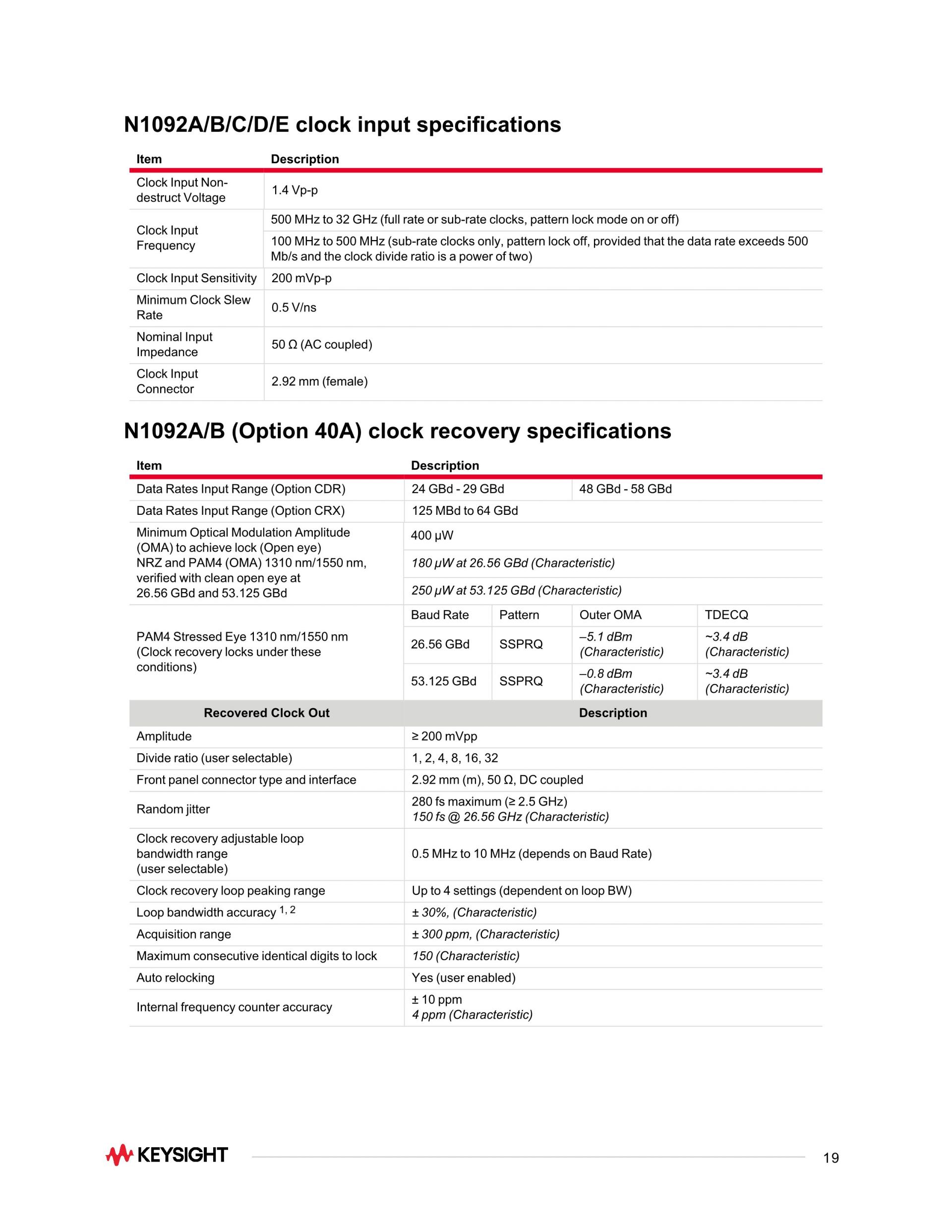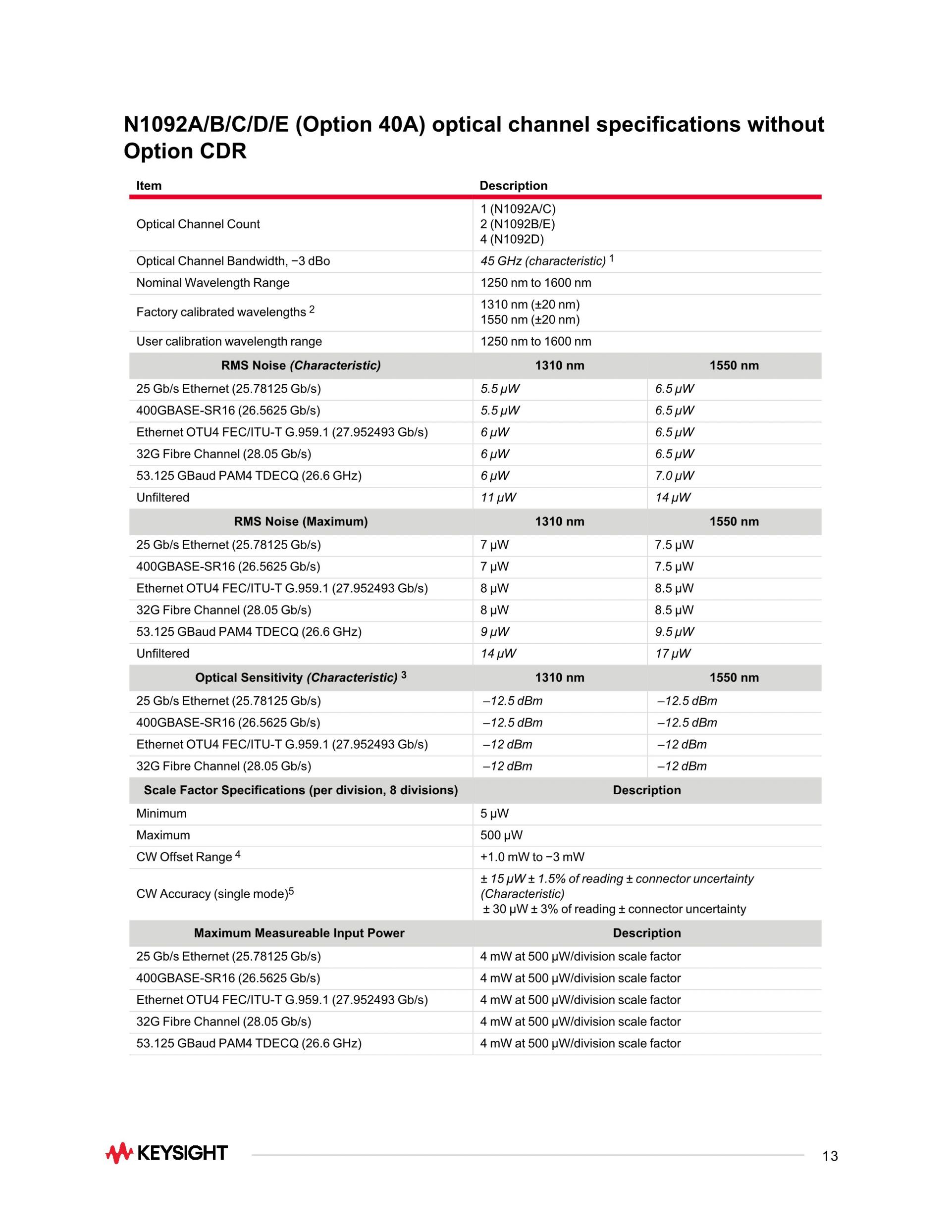 - 필터링되지 않은 대역폭 >40 GHz(옵션 40A)