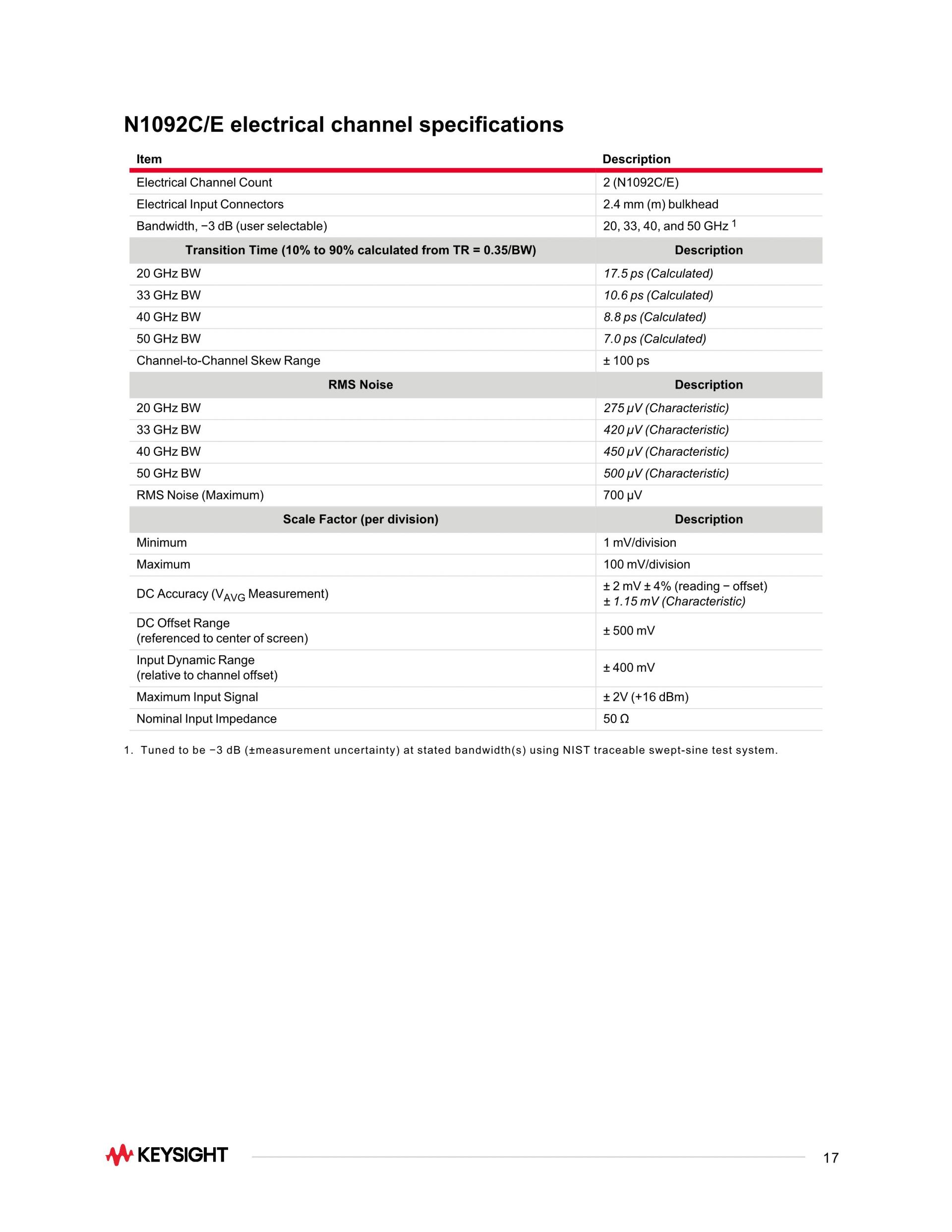 KEYSIGHT N1092A 28/45 GHz 싱글 광 채널 DCA-M, 옵션 CDR 포함