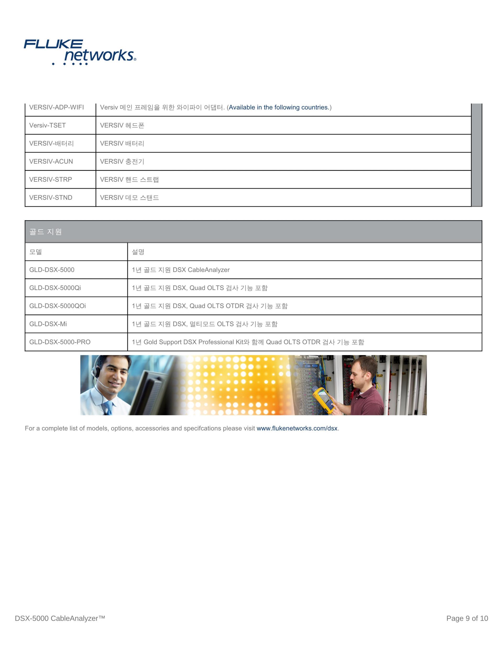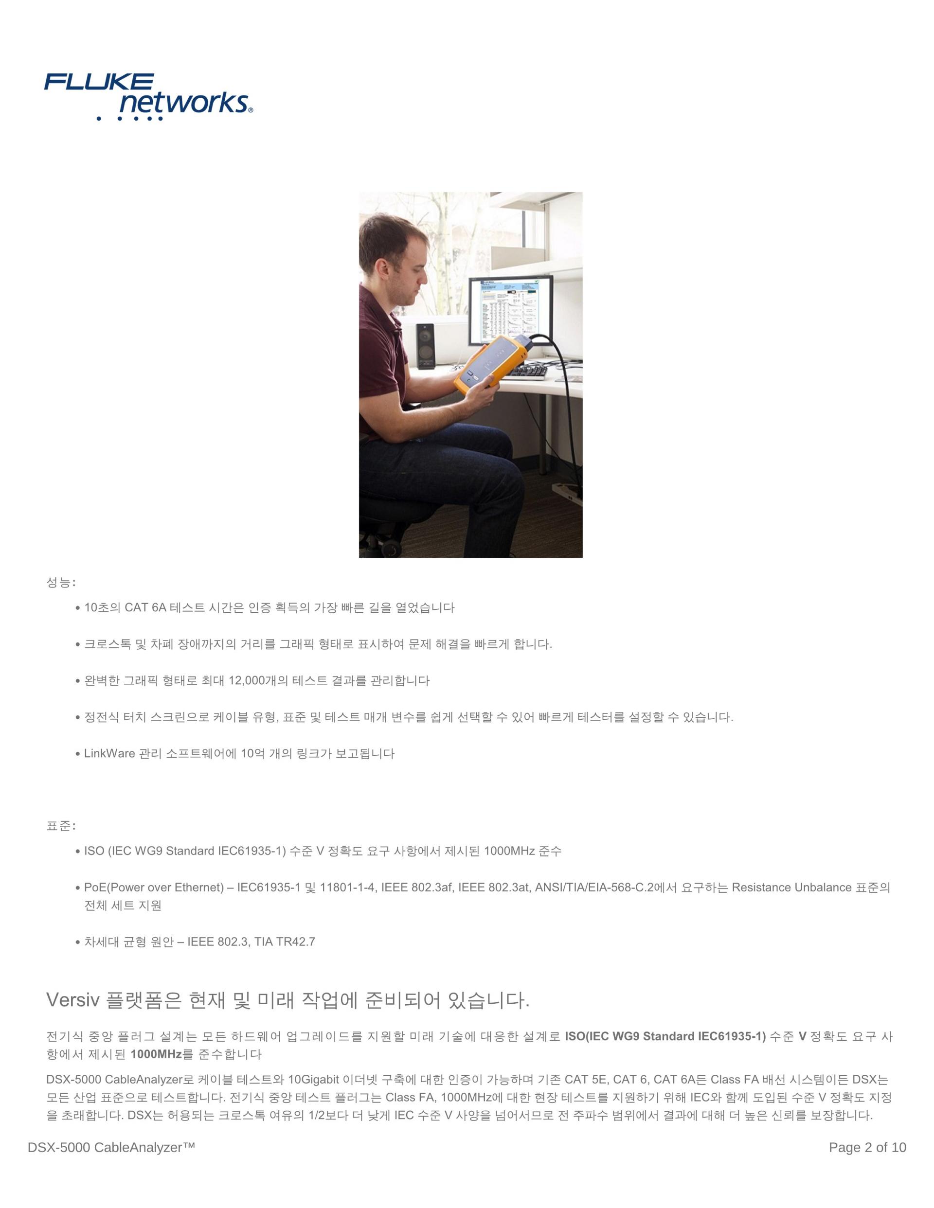 전체 Versiv 모델 지원: DSX CableAnalyzer 시리즈, CertiFiber Pro, OptiFiber Pro 및 FI-7000.