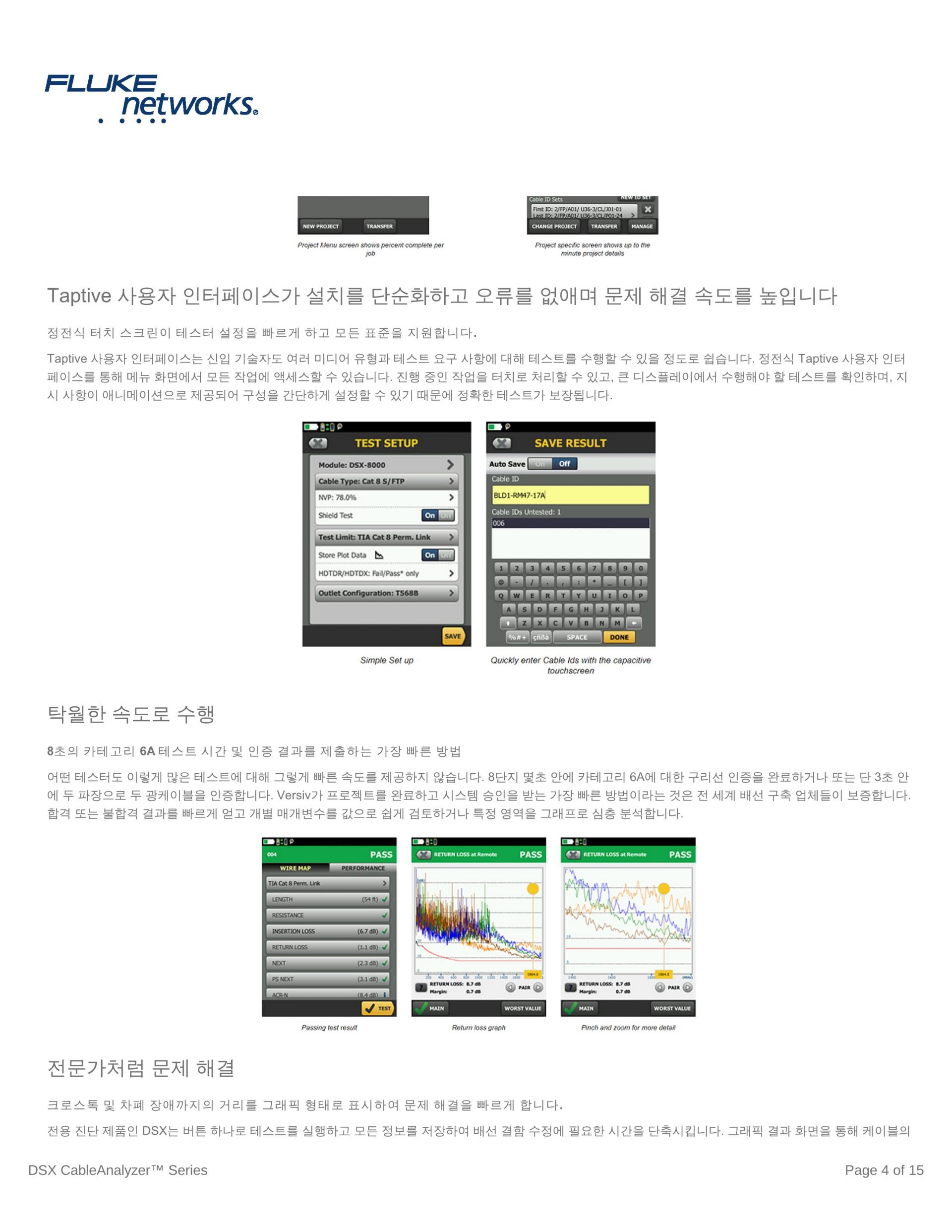 완벽한 그래픽 형태로 최대 12,000개의 카테고리 6A 테스트 결과를 관리합니다.