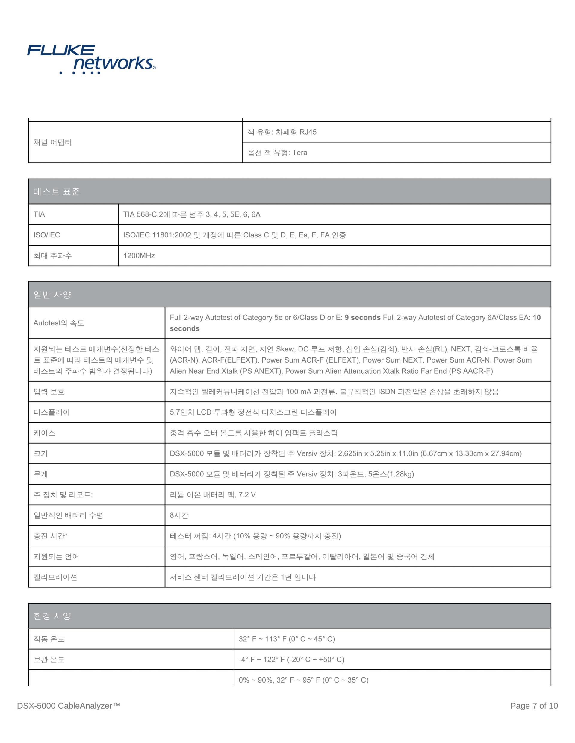 | 카테고리 6A / 클래스 EA 테스트 시간 | 8초 | 10초 |