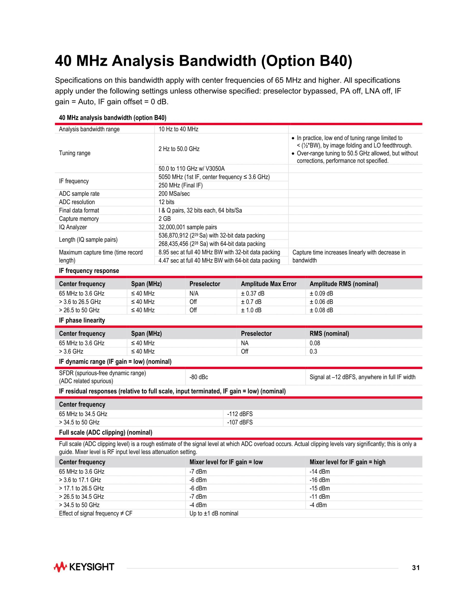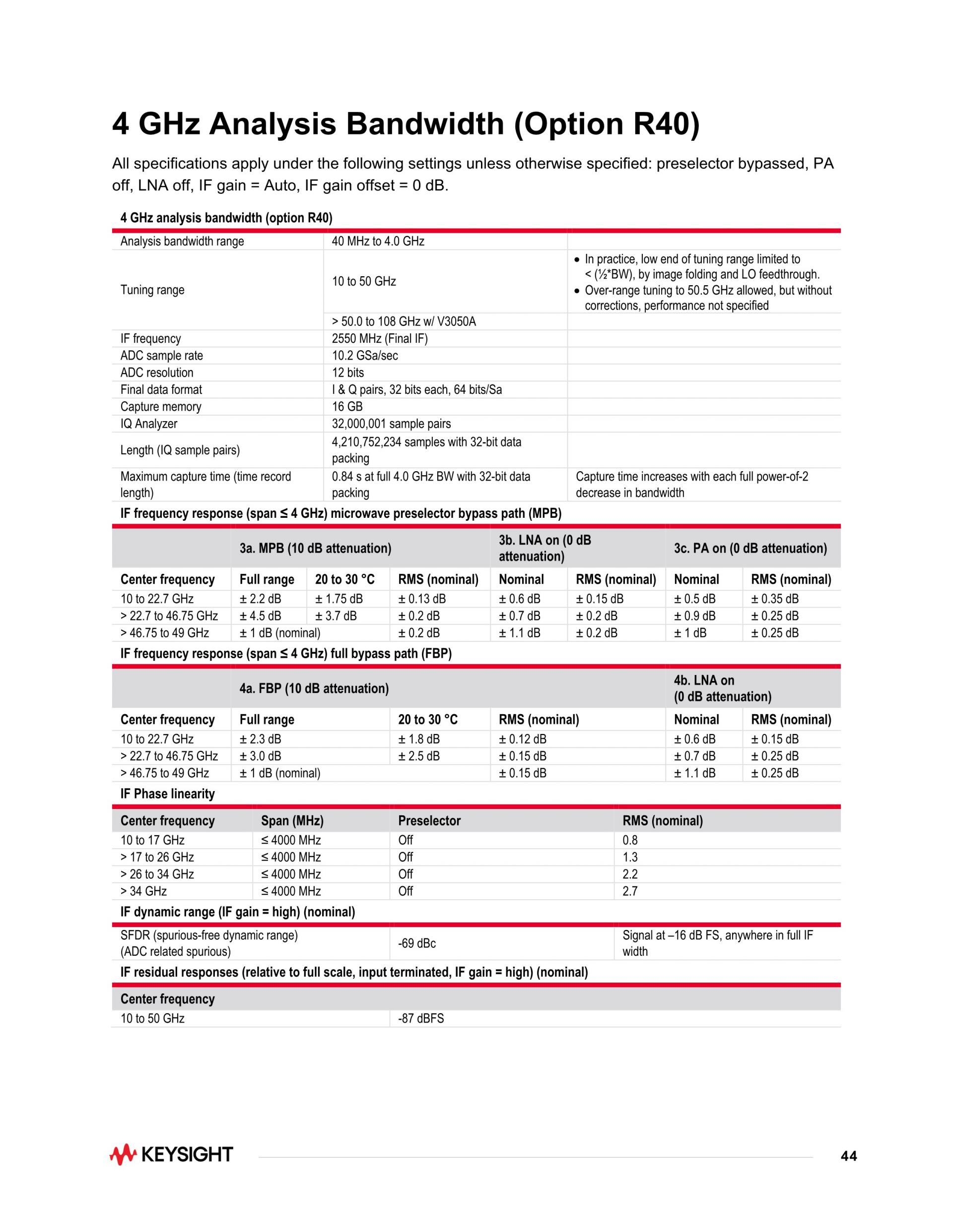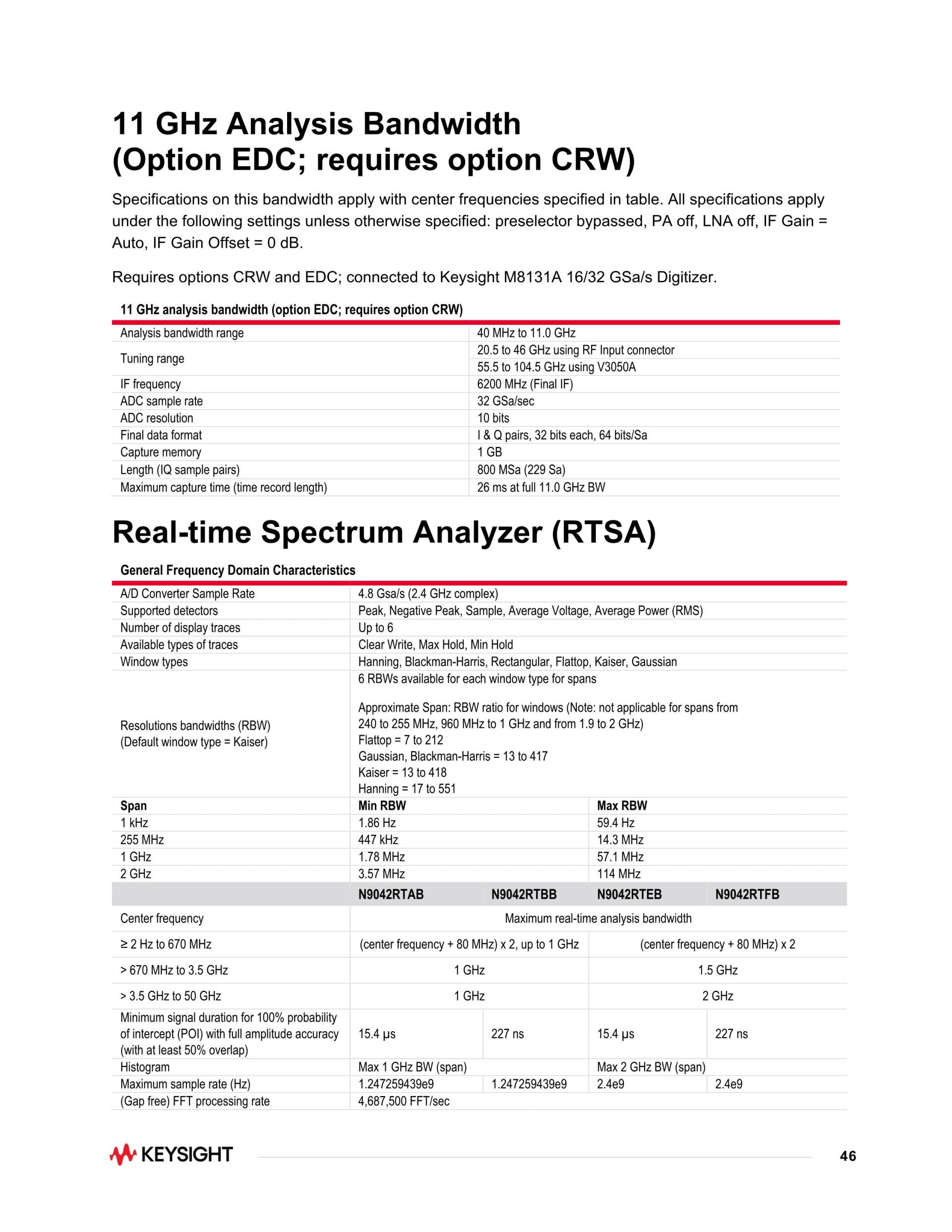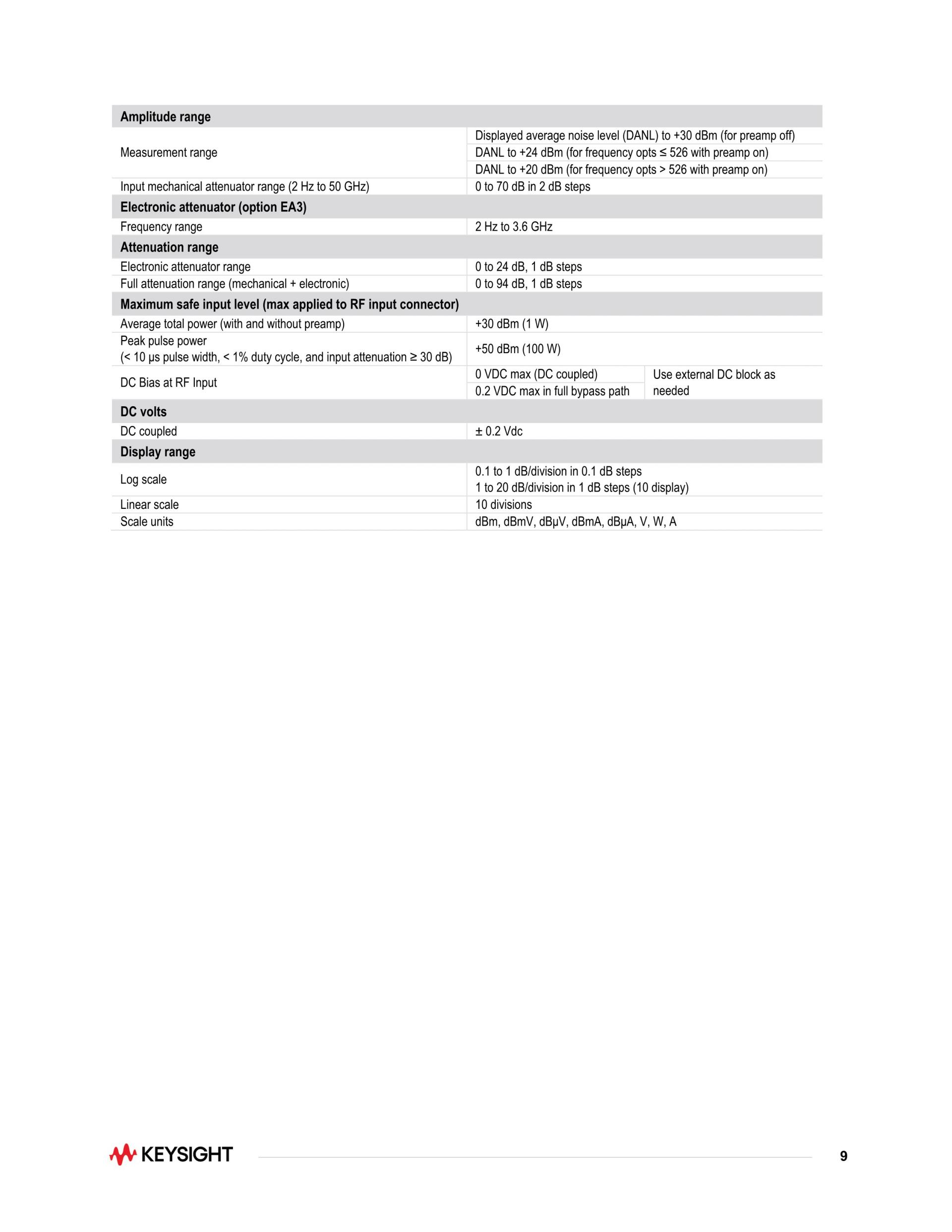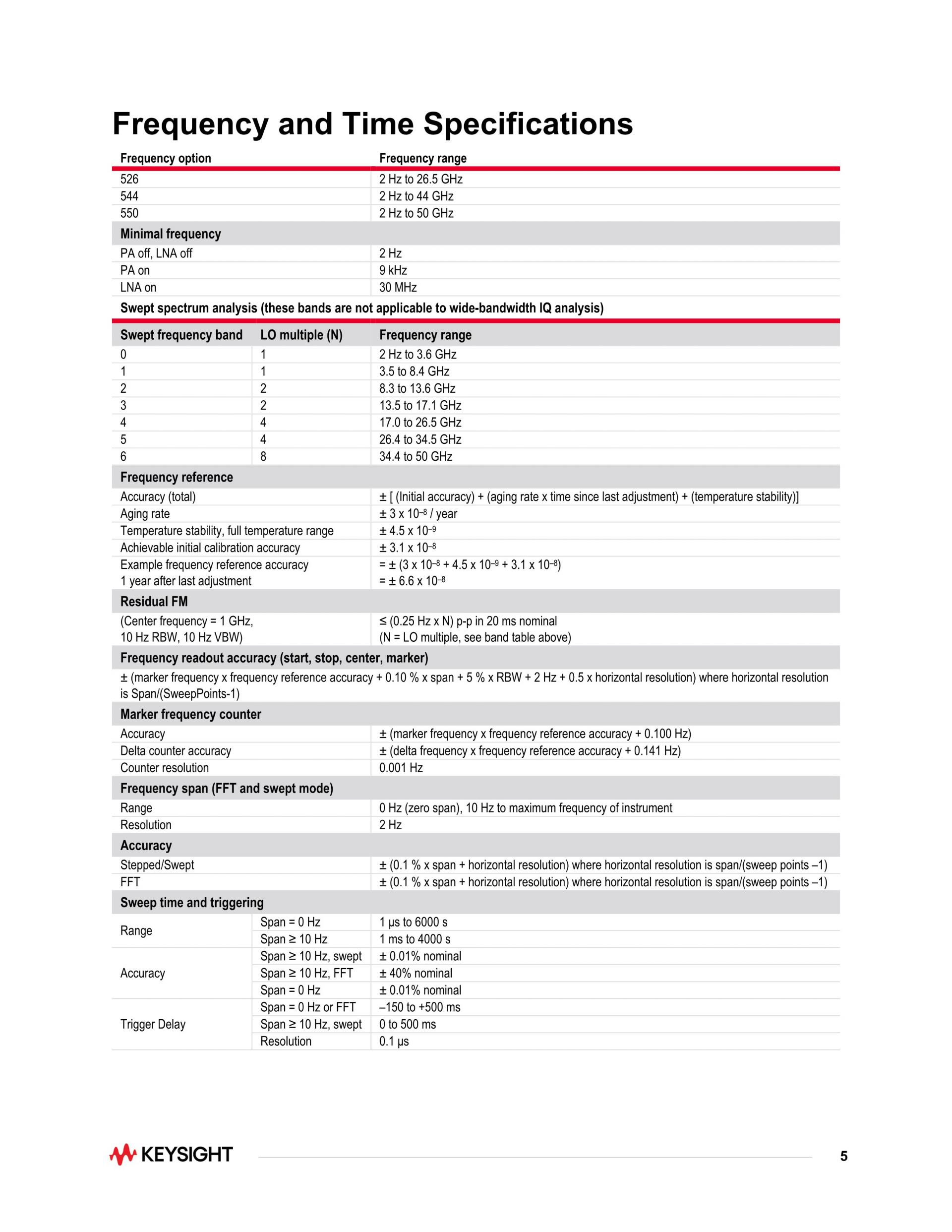 UXA 신호 분석기, 2 Hz ~ 50 GHz