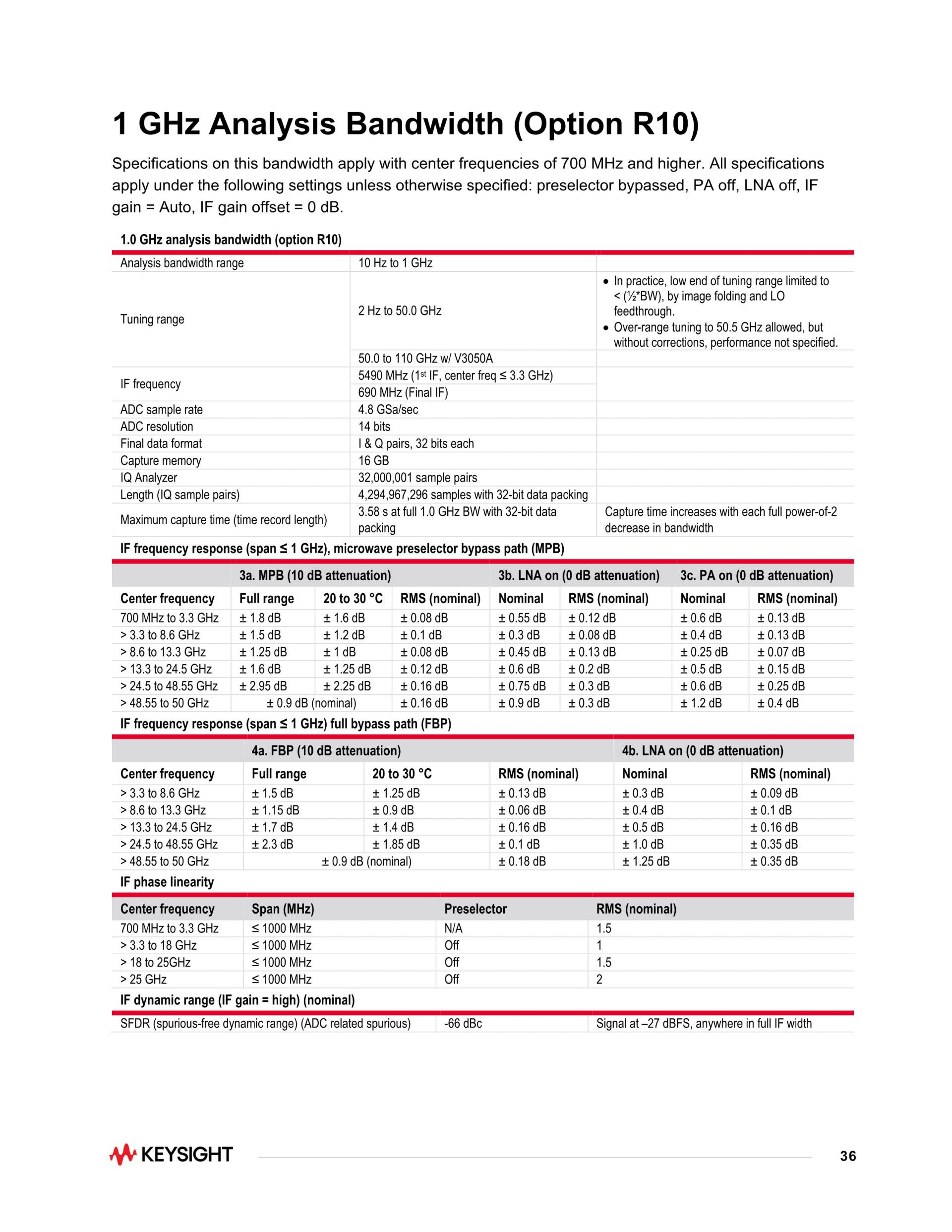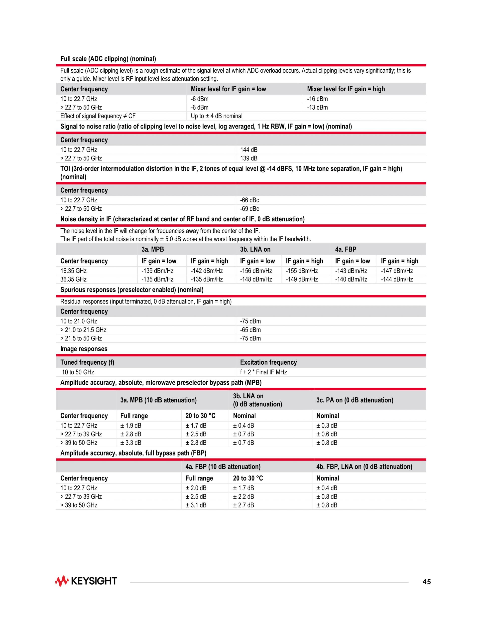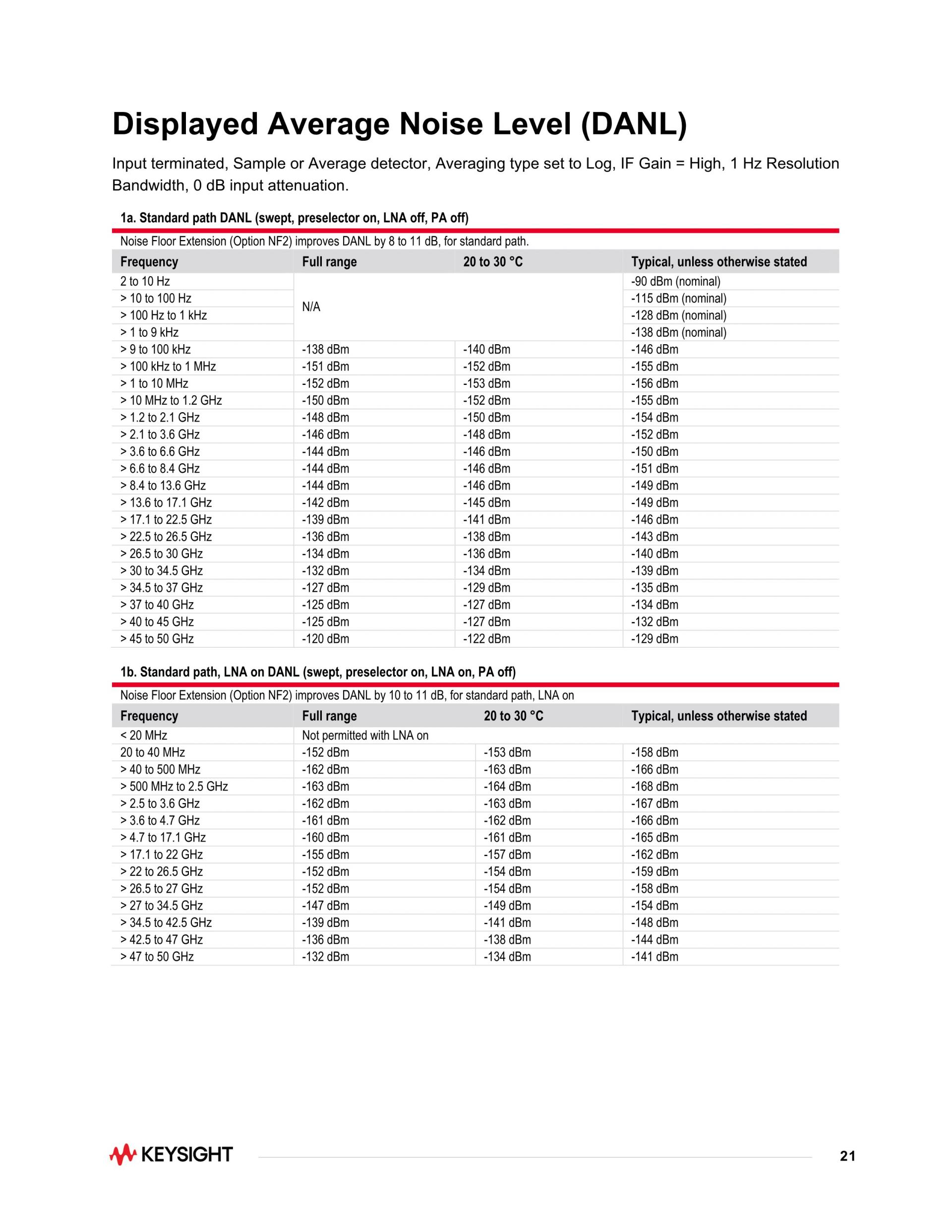 - 업계 최고의 스위프 DANL(Displayed Average Noise Level)로 레이더 설계의 대역외 방출 또는 스퍼를 신속하게 검출
