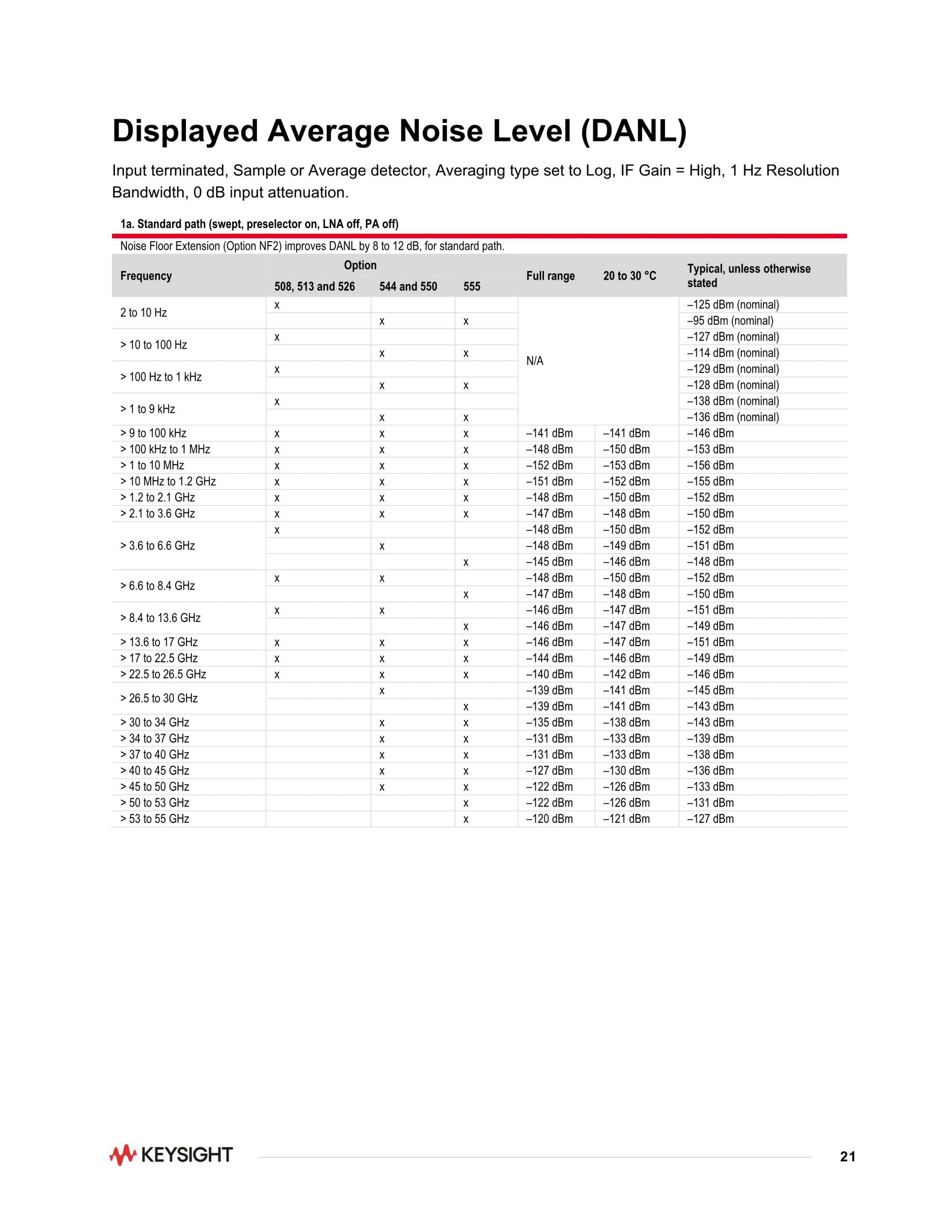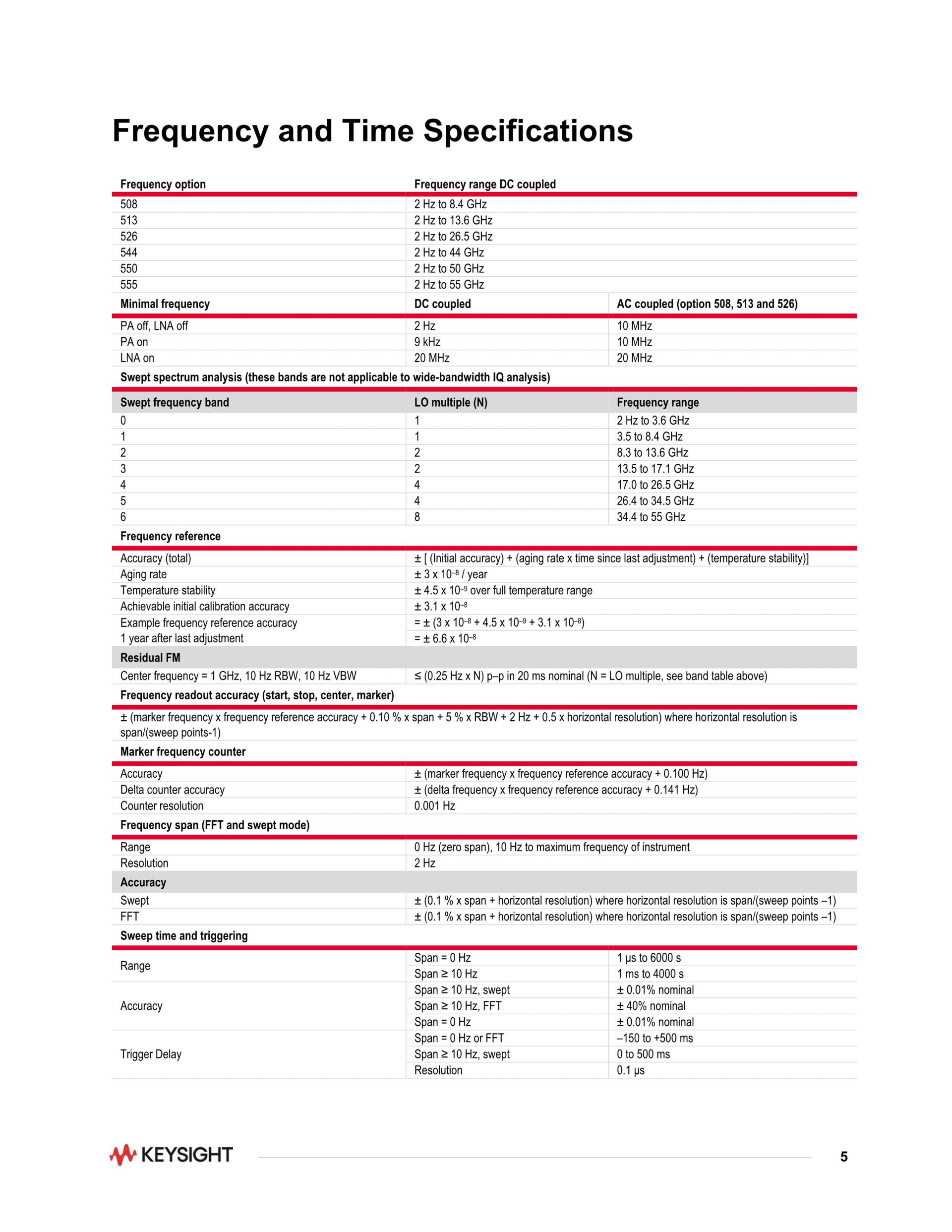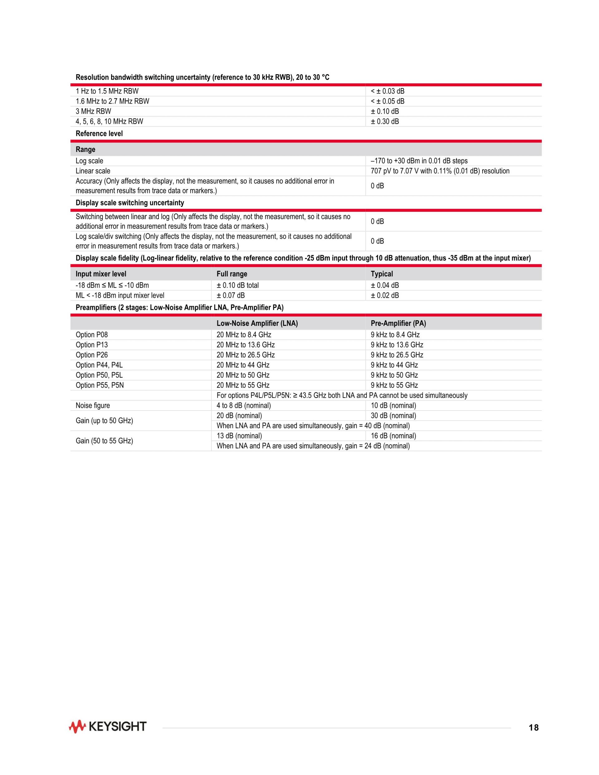 PXA 신호 분석기, 2 Hz ~ 55 GHz