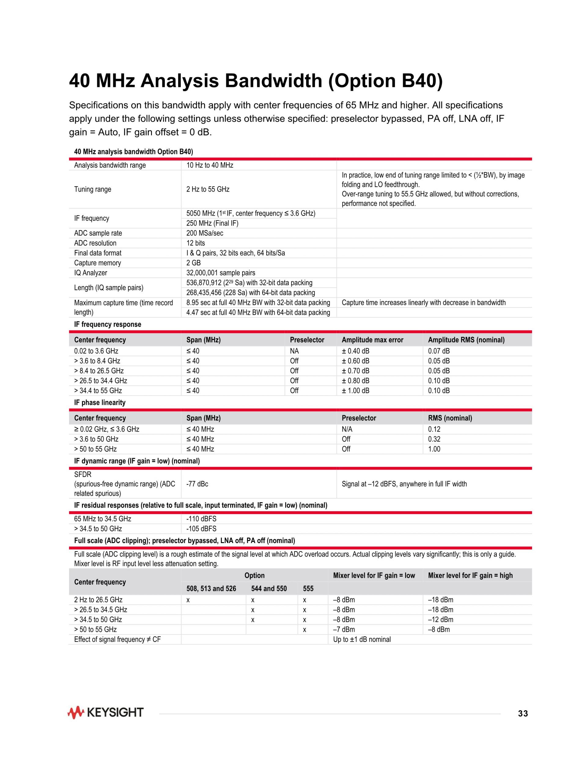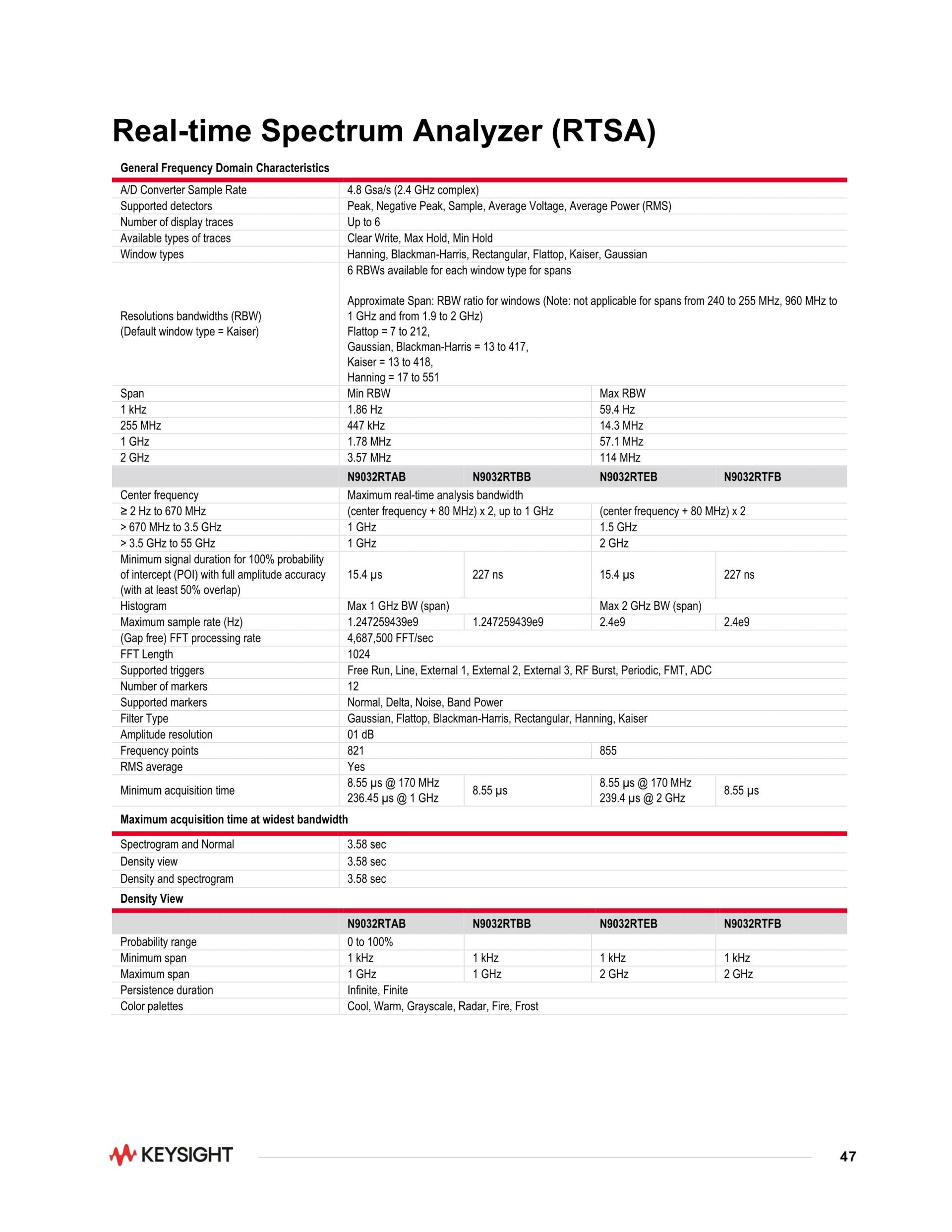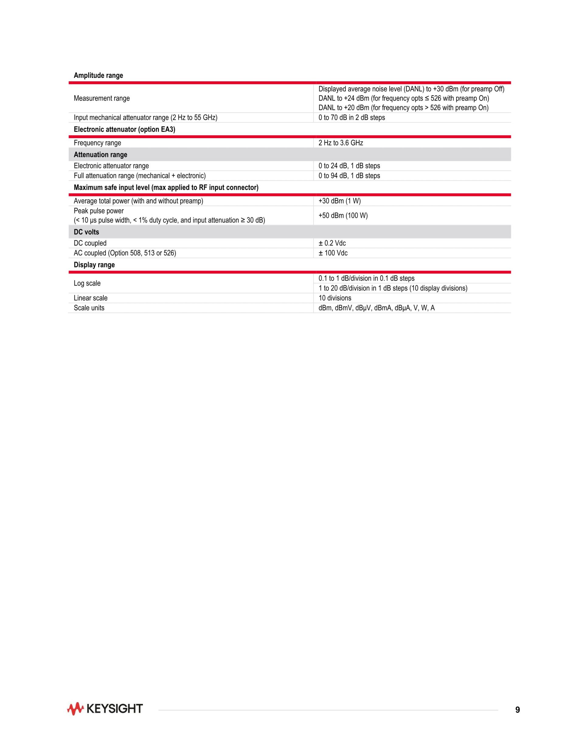 PXA 신호 분석기, 2 Hz ~ 55 GHz
