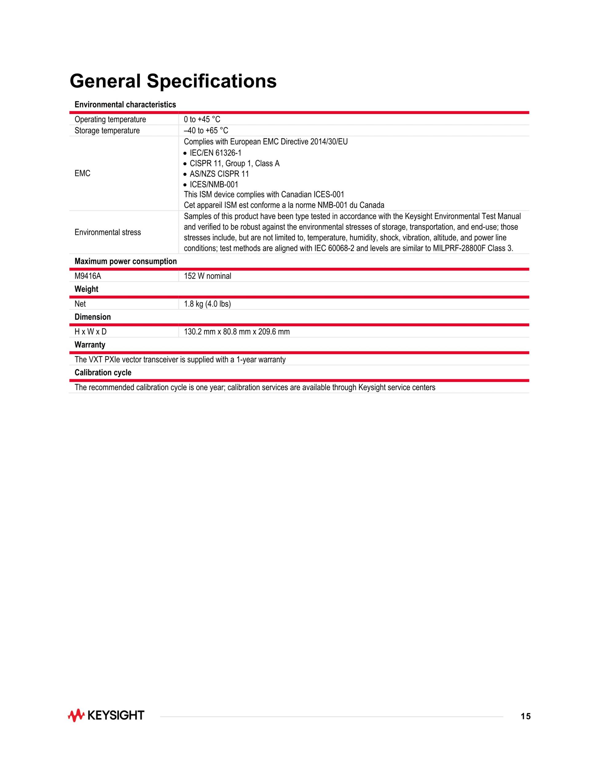KEYSIGHT M9416A VXT PXI 벡터 트랜시버, 380 MHz ~ 6/8/12 GHz