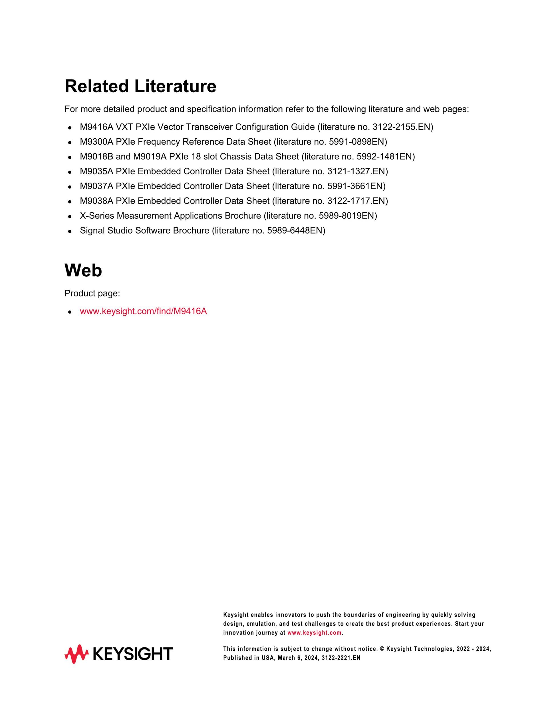 KEYSIGHT M9416A VXT PXI Vector Transceiver, 380 MHz to 6/8/12 GHz