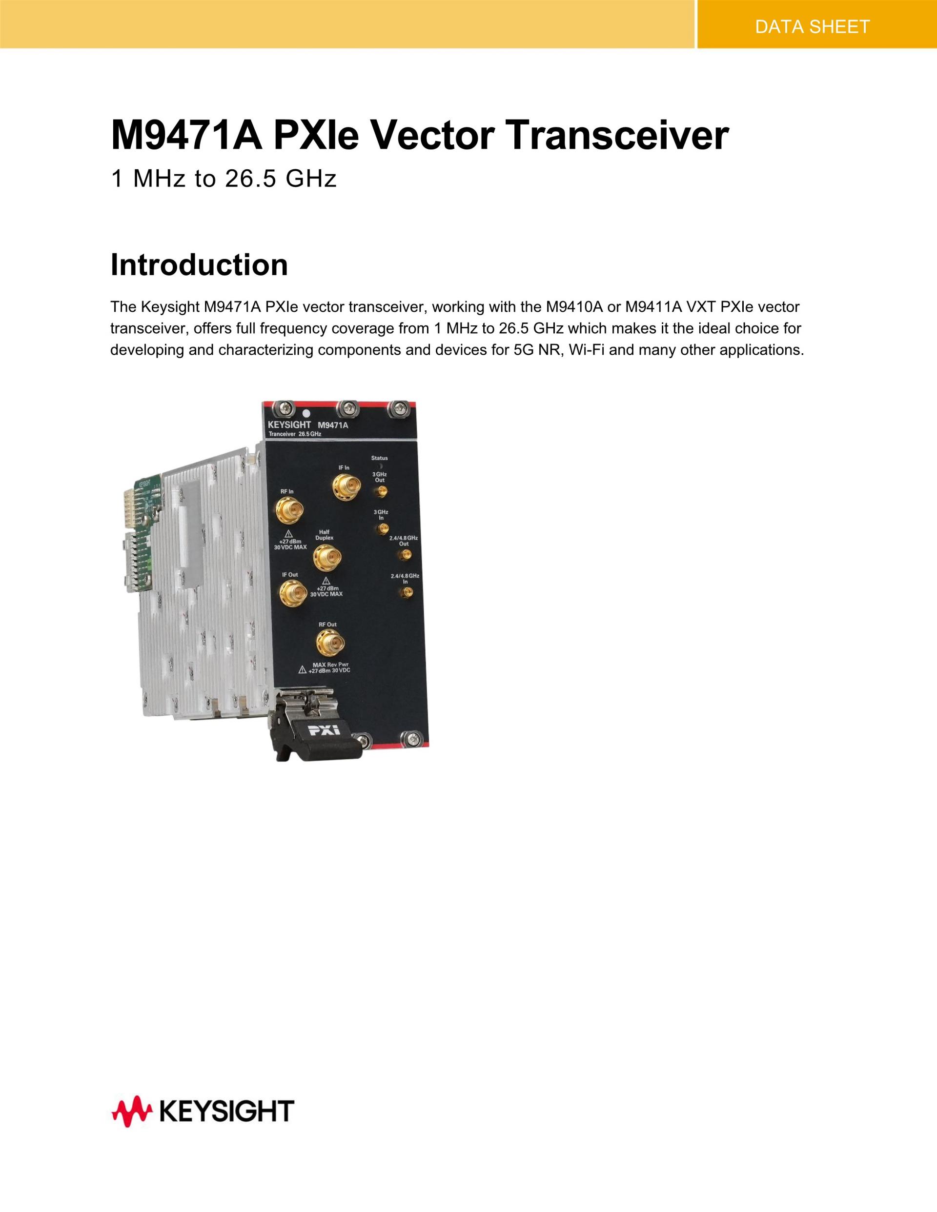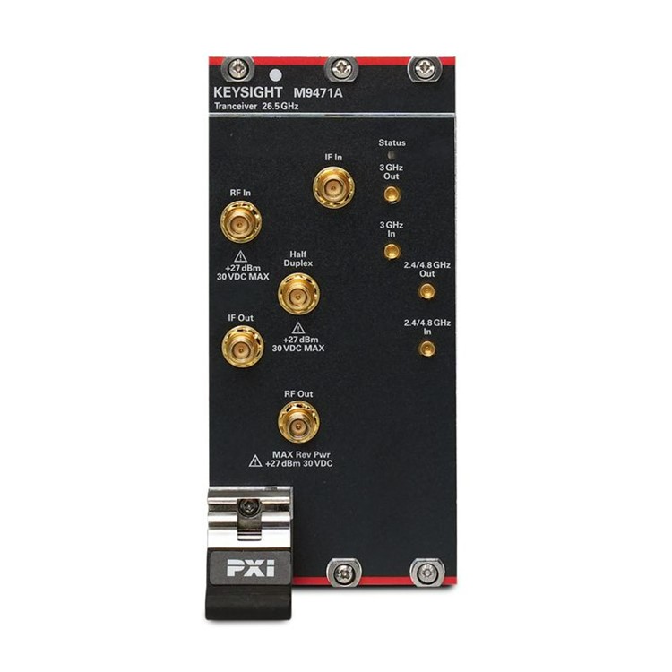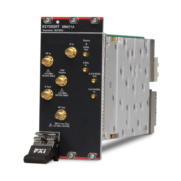 The Keysight M9471A PXIe frequency extension module is designed to work directly with M9410A and M9411A VXT PXIe vector transceivers to cover frequency range up to 26.5 GHz.