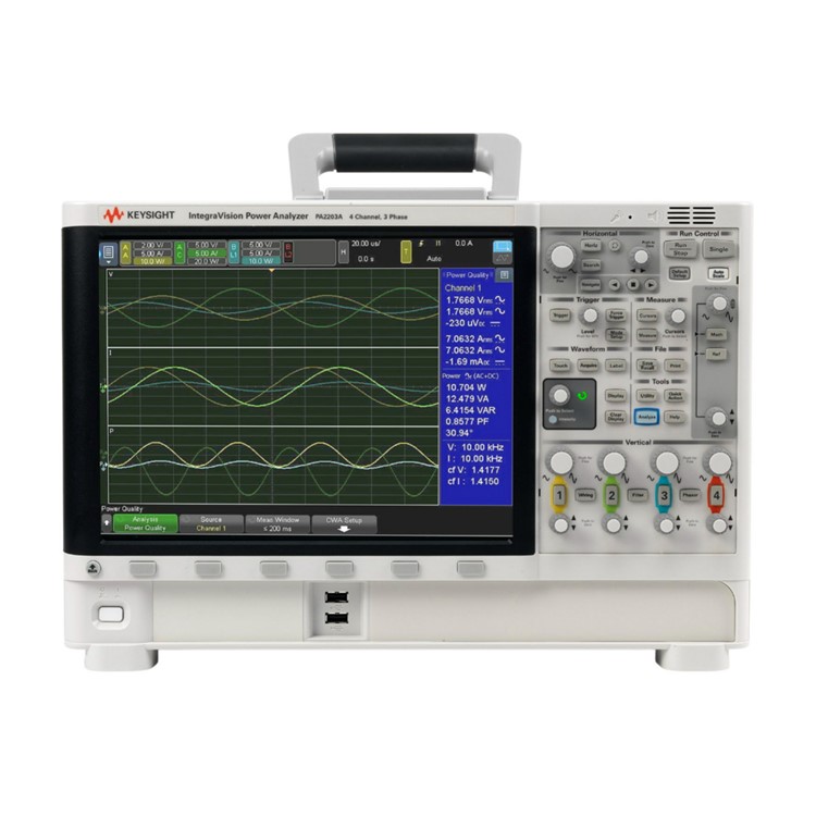 - The PA2203A IntegraVision Power Analyzer measures power parameters and displays voltage, current, and power traces on 4 channels in real time
