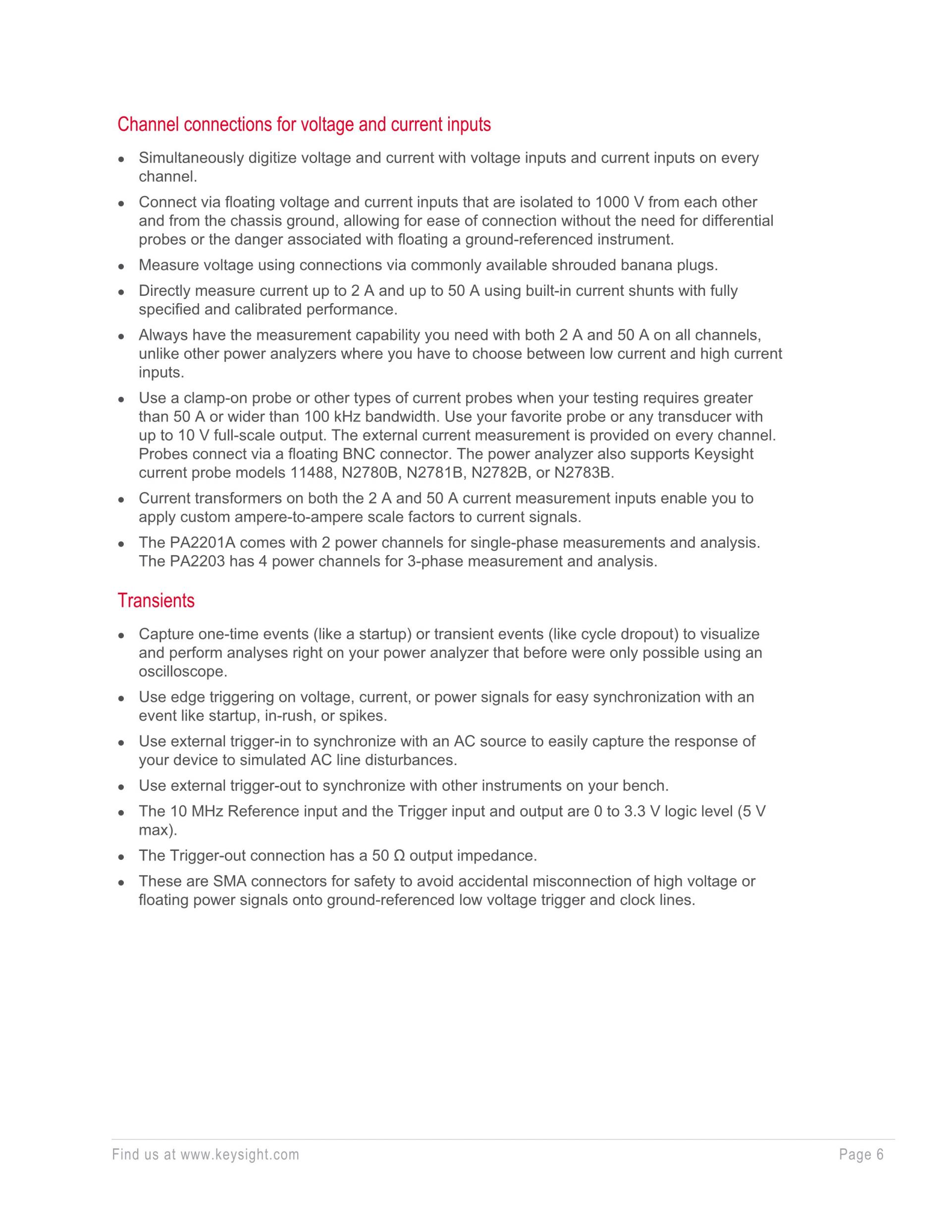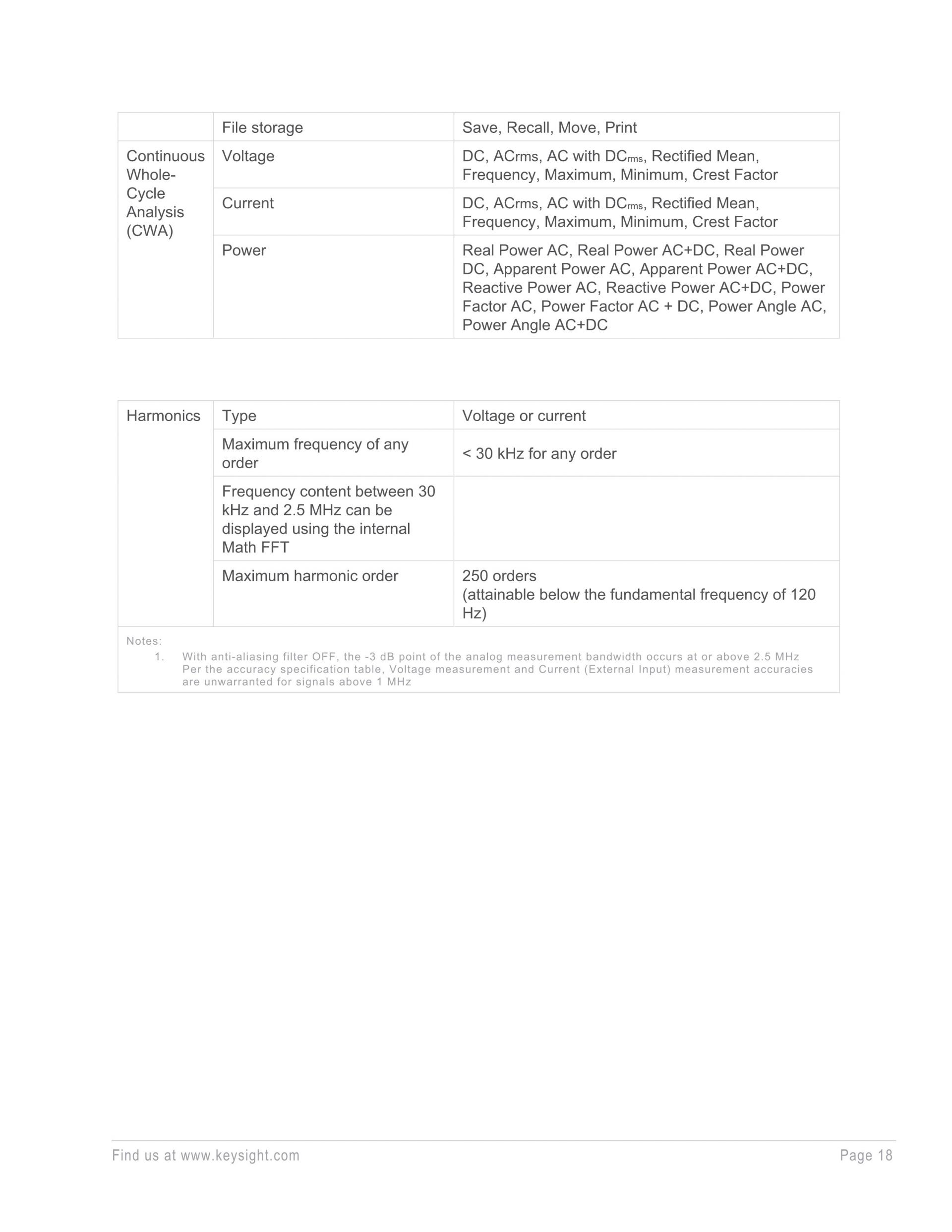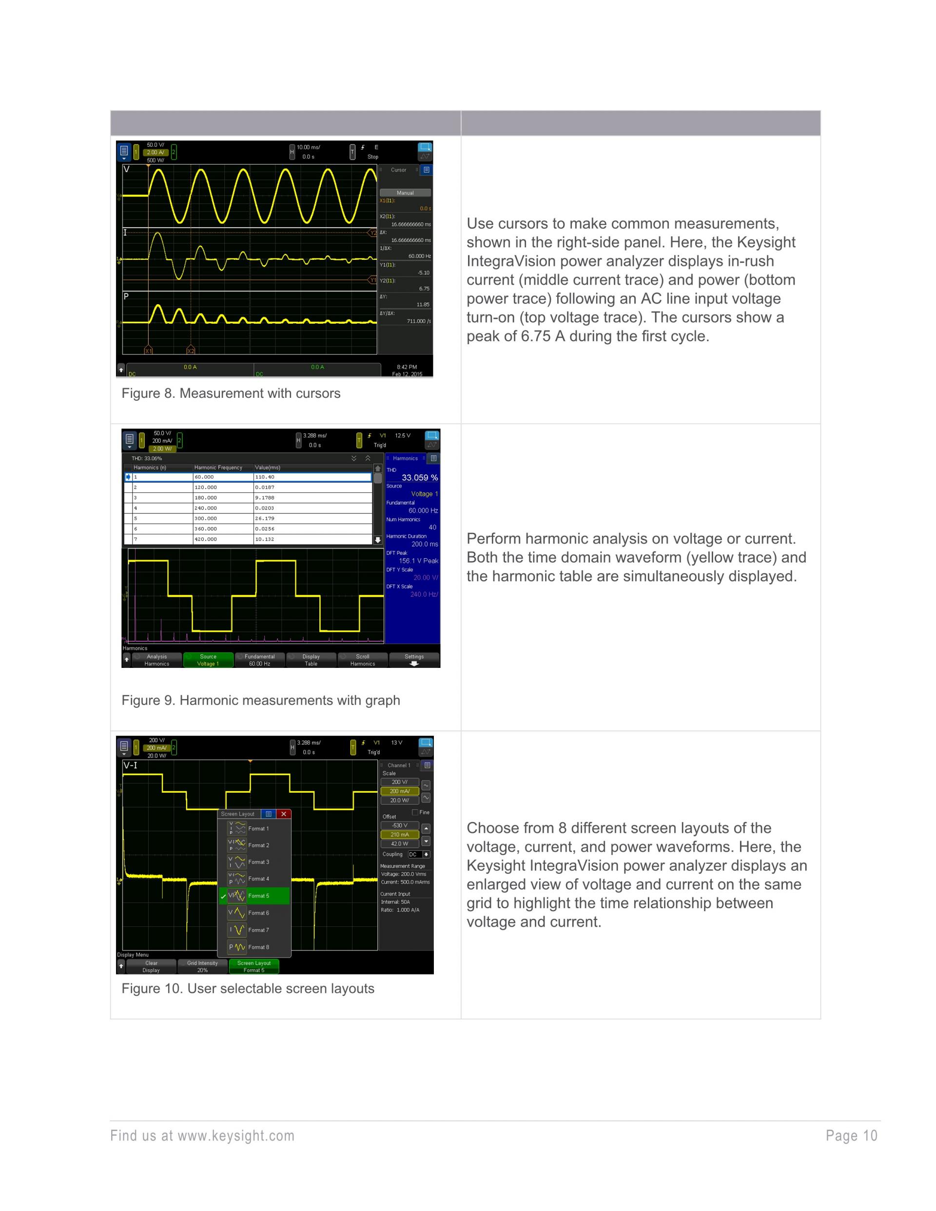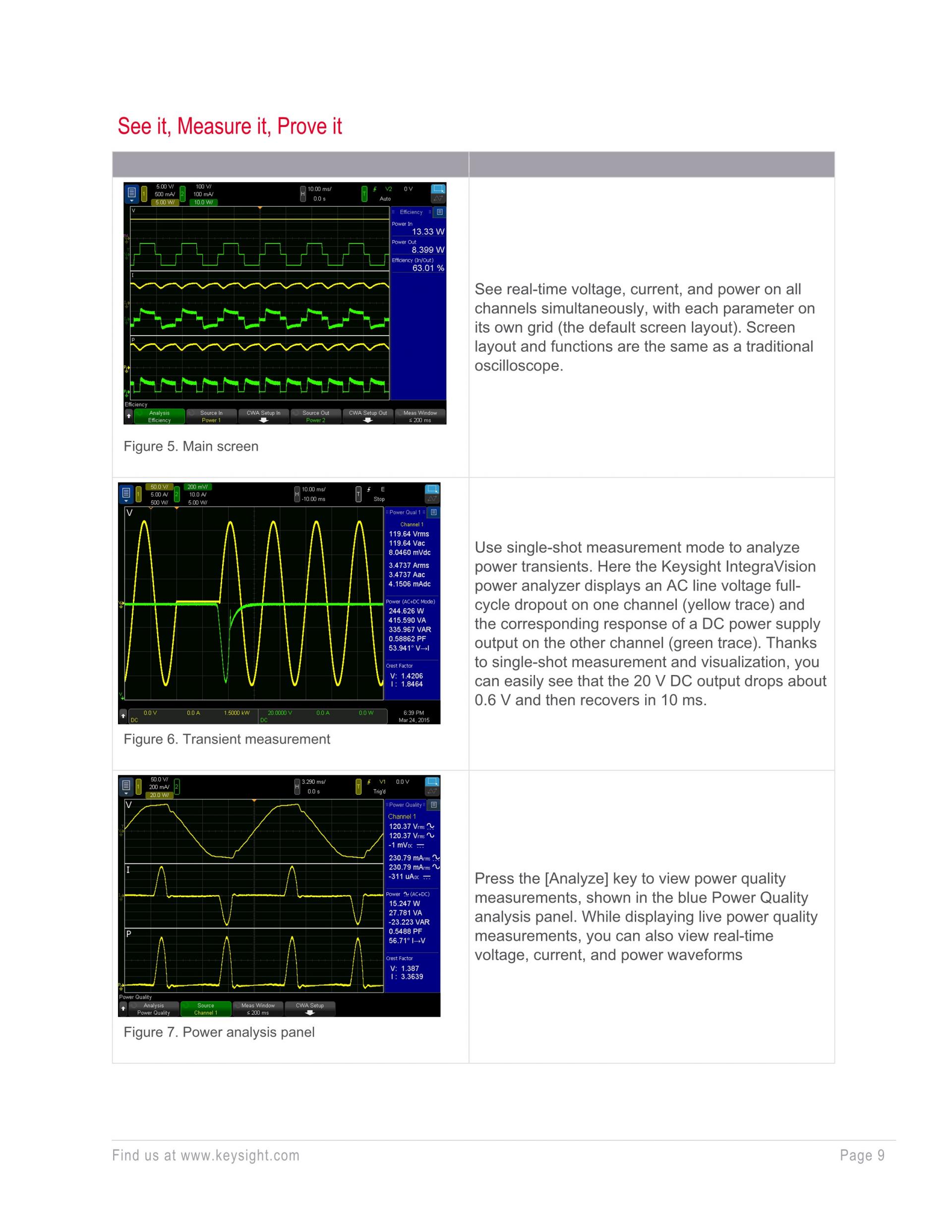- 시간 및 주파수 도메인에서 전압, 전류, 전력 분석.