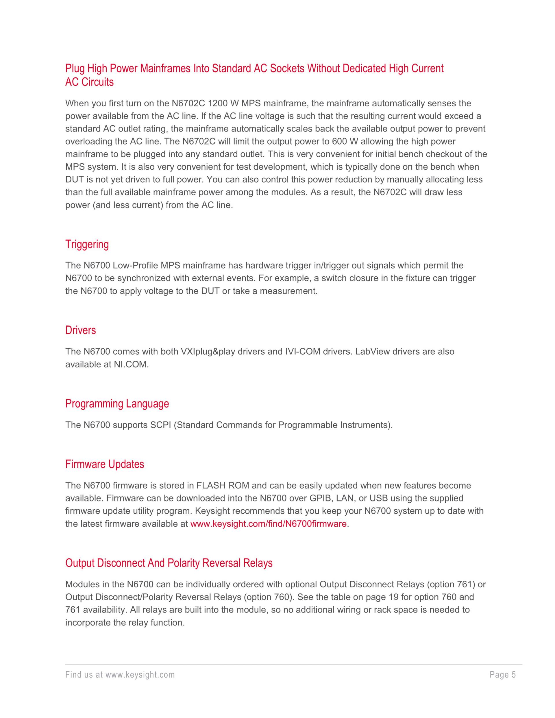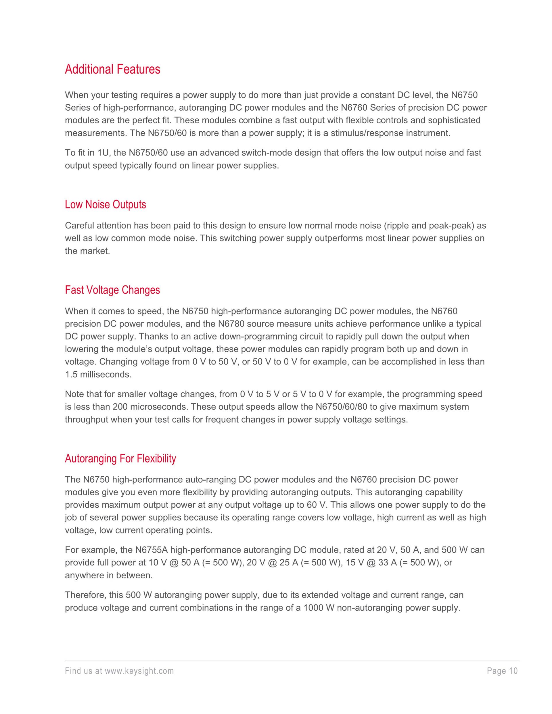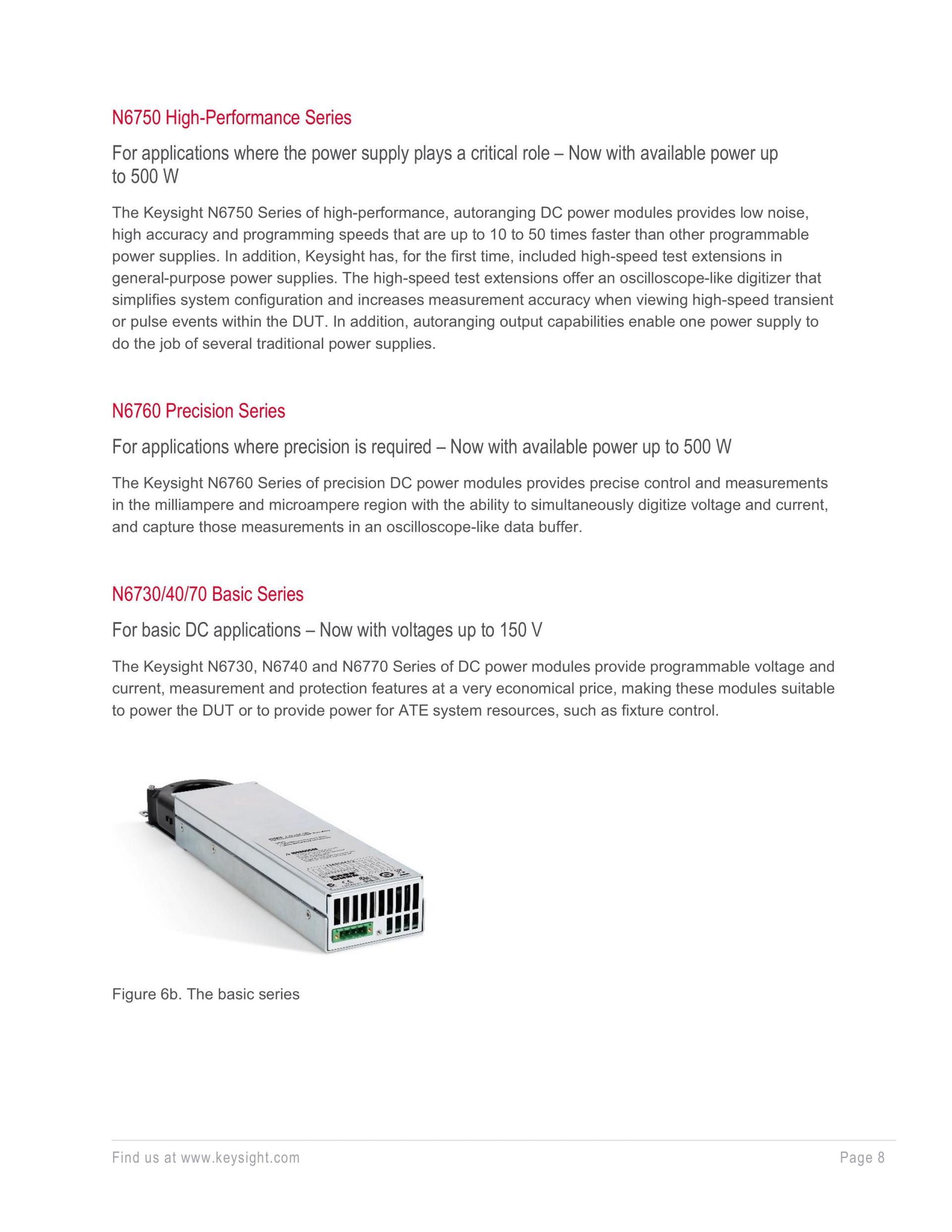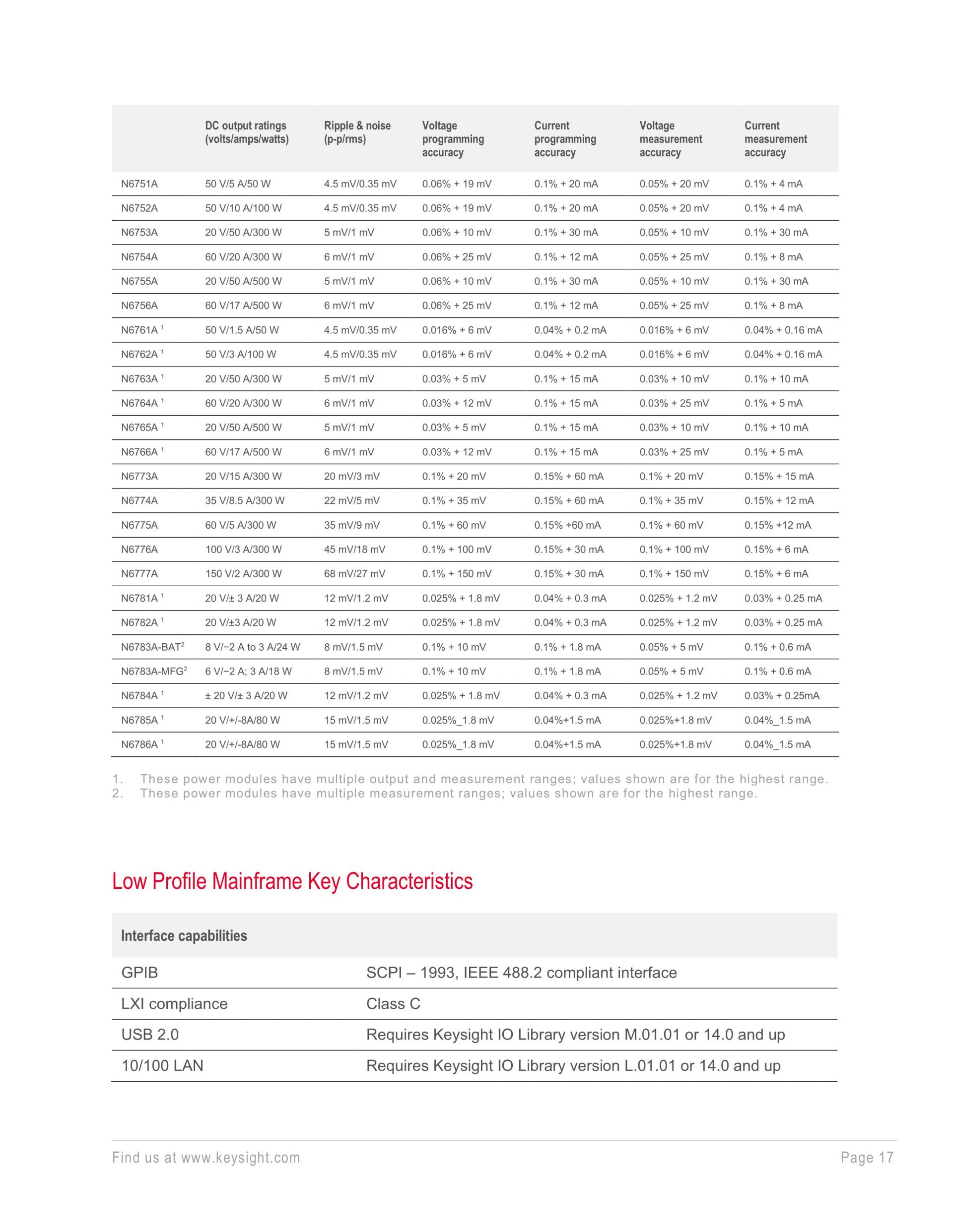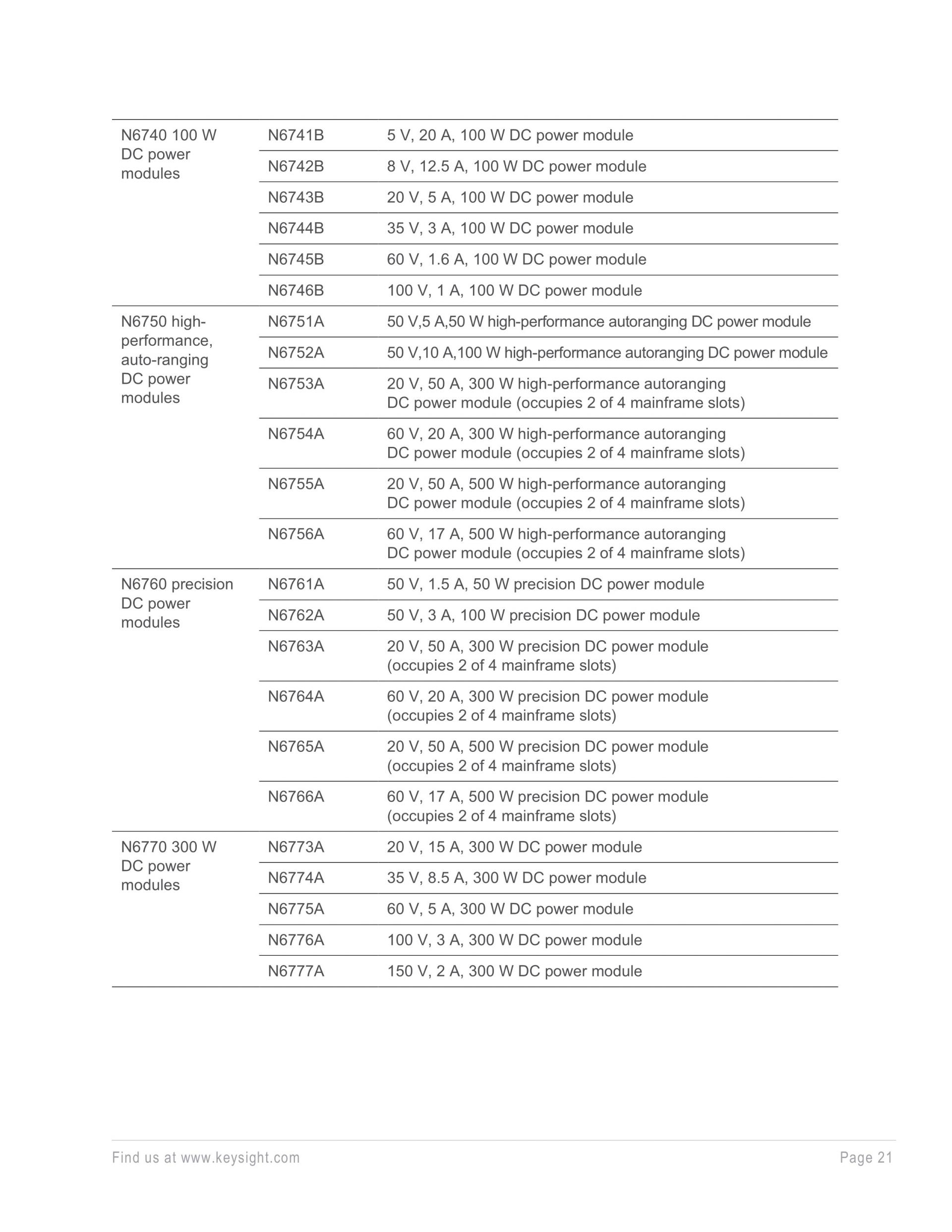 이 모듈은 소형의 다중 출력 1U 하이 N6700 로우 프로파일 모듈러 전력 계통(ATE 시스템의 경우)과 다중 출력 N6705 DC 전력 분석기(벤치 테스트의 경우) 모두에 사용됩니다. GPIB, LAN, USB 및 LXI 컴플라이언스는 표준입니다. 기본 정밀도부터 높은 정밀도까지, 20 - 500 W 범위의 전력에서 30가지 이상의 DC 전력 모듈 중에서 선택할 수 있습니다.