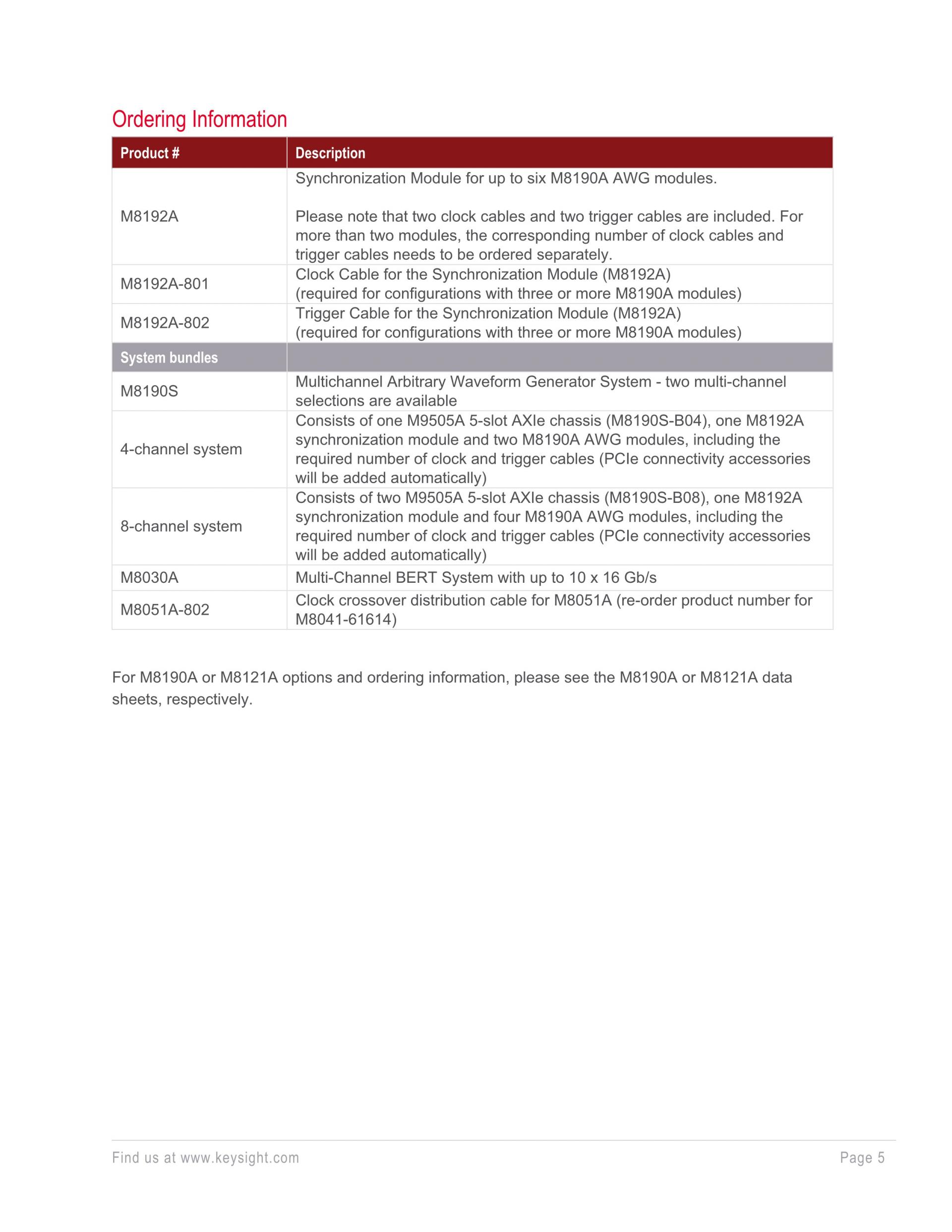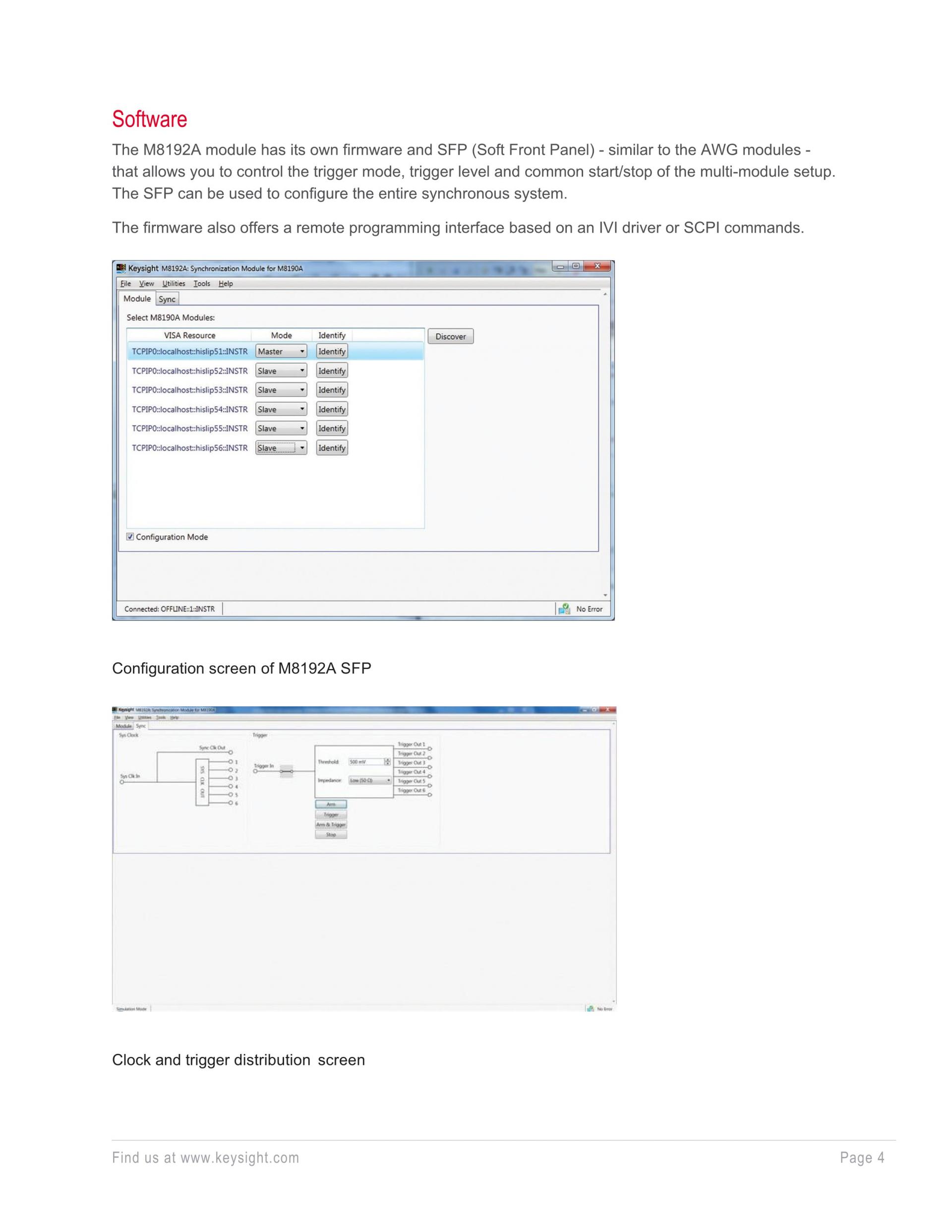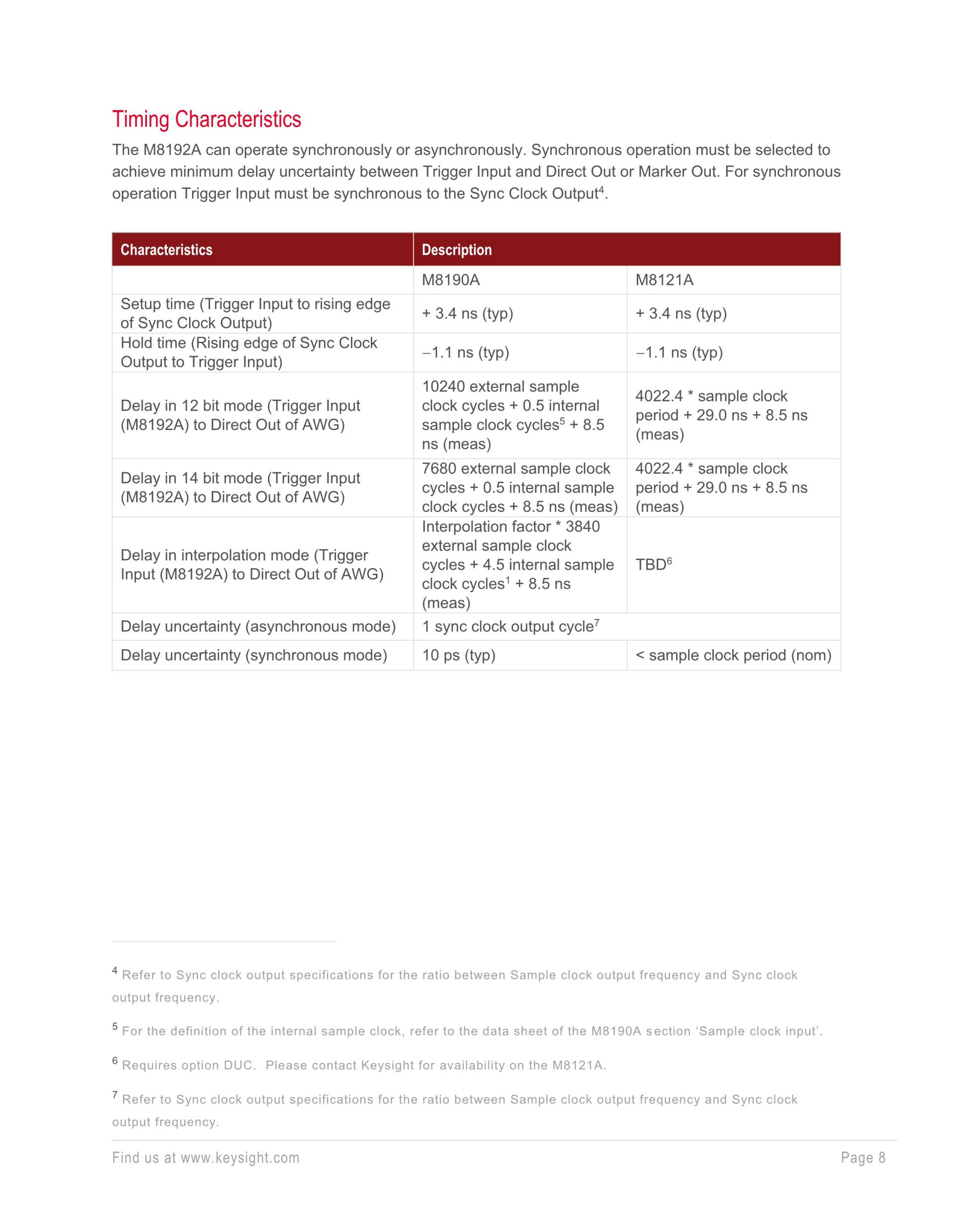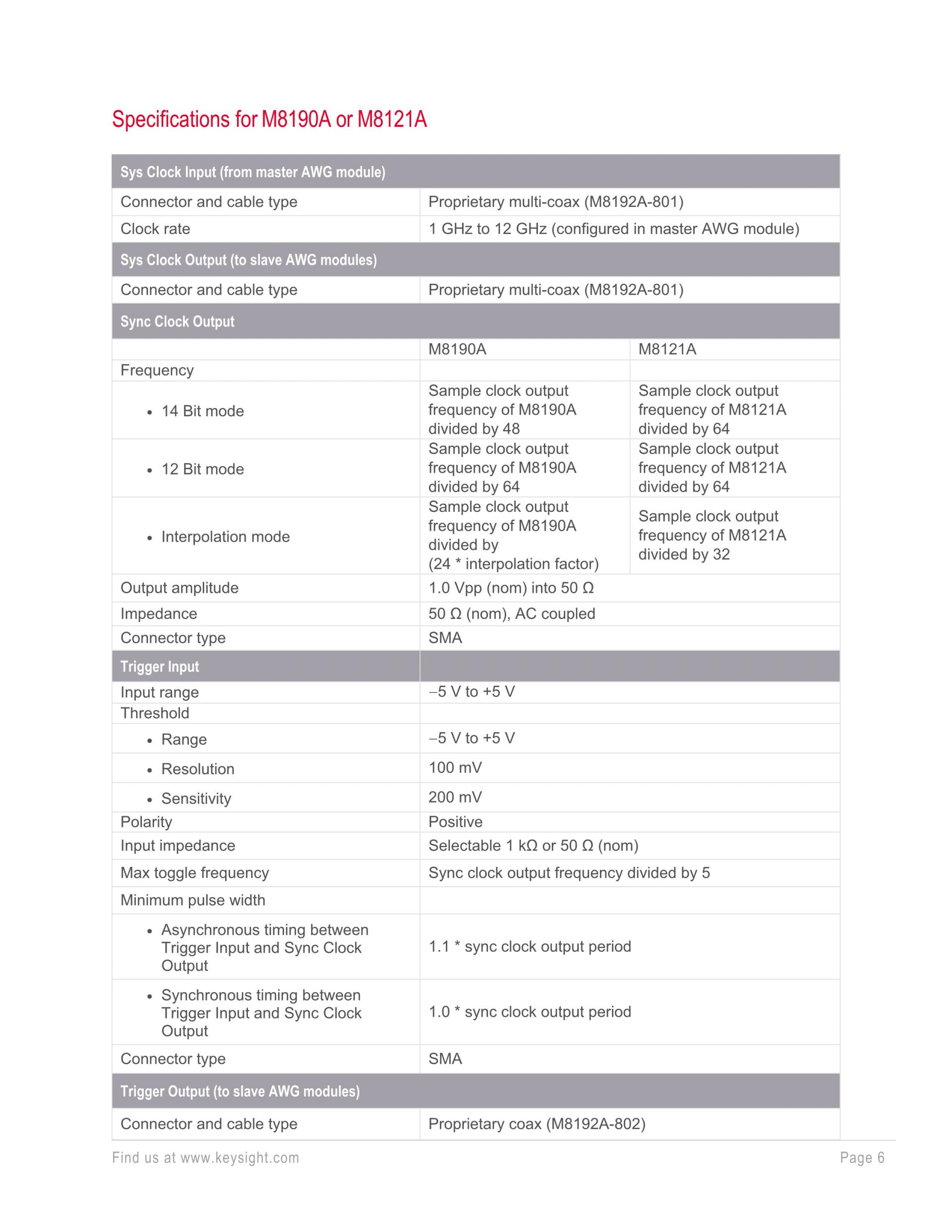 - 1개의 트리거 입력이 결정적 지연 시간으로 최대 6개의 M8190A 모듈 또는 4개의 M8051A와 1개의 M8041A 모듈 트리거링 가능