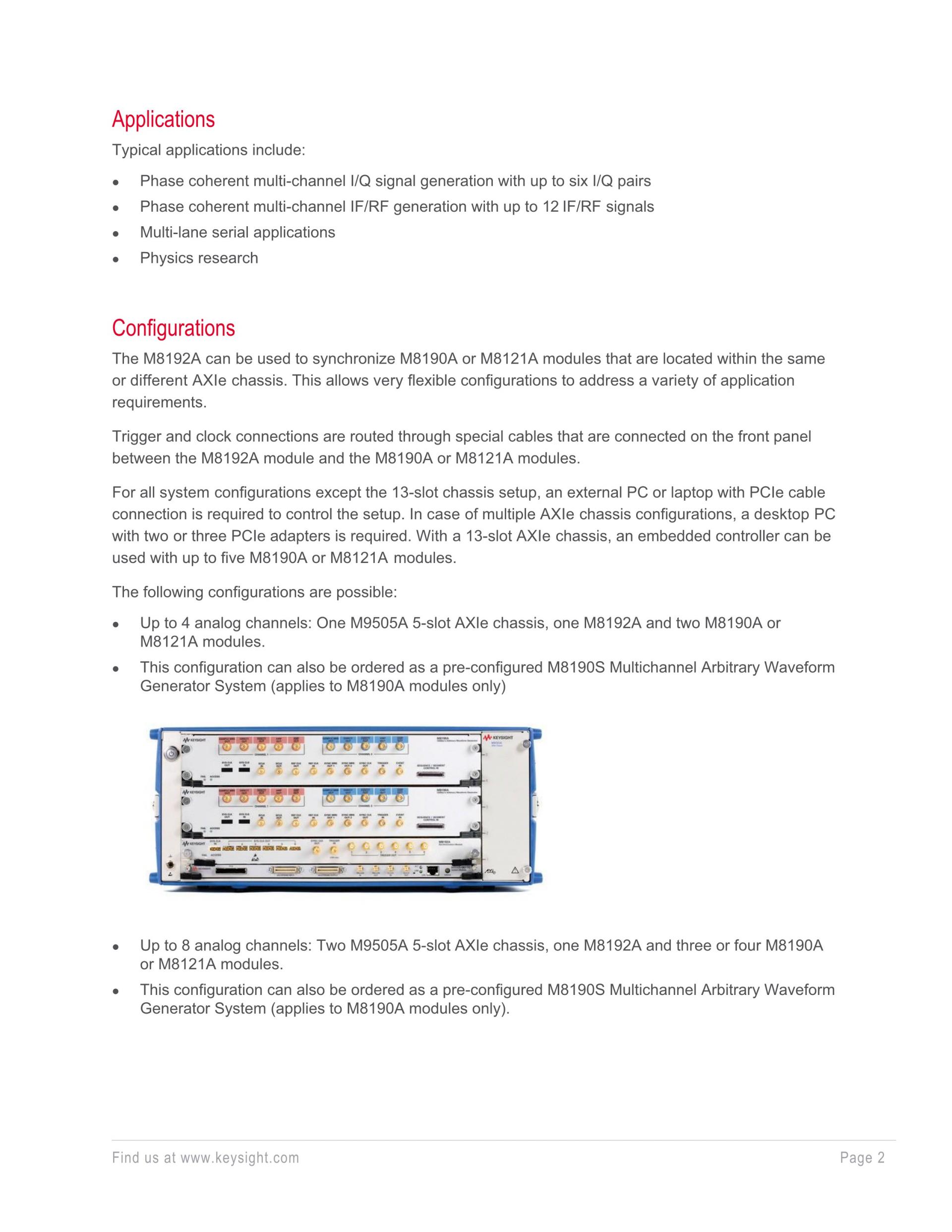 M8190S 멀티채널 임의 파형 생성기 시스템으로도 사용 가능합니다. 두 개의 멀티채널 이용 가능:
