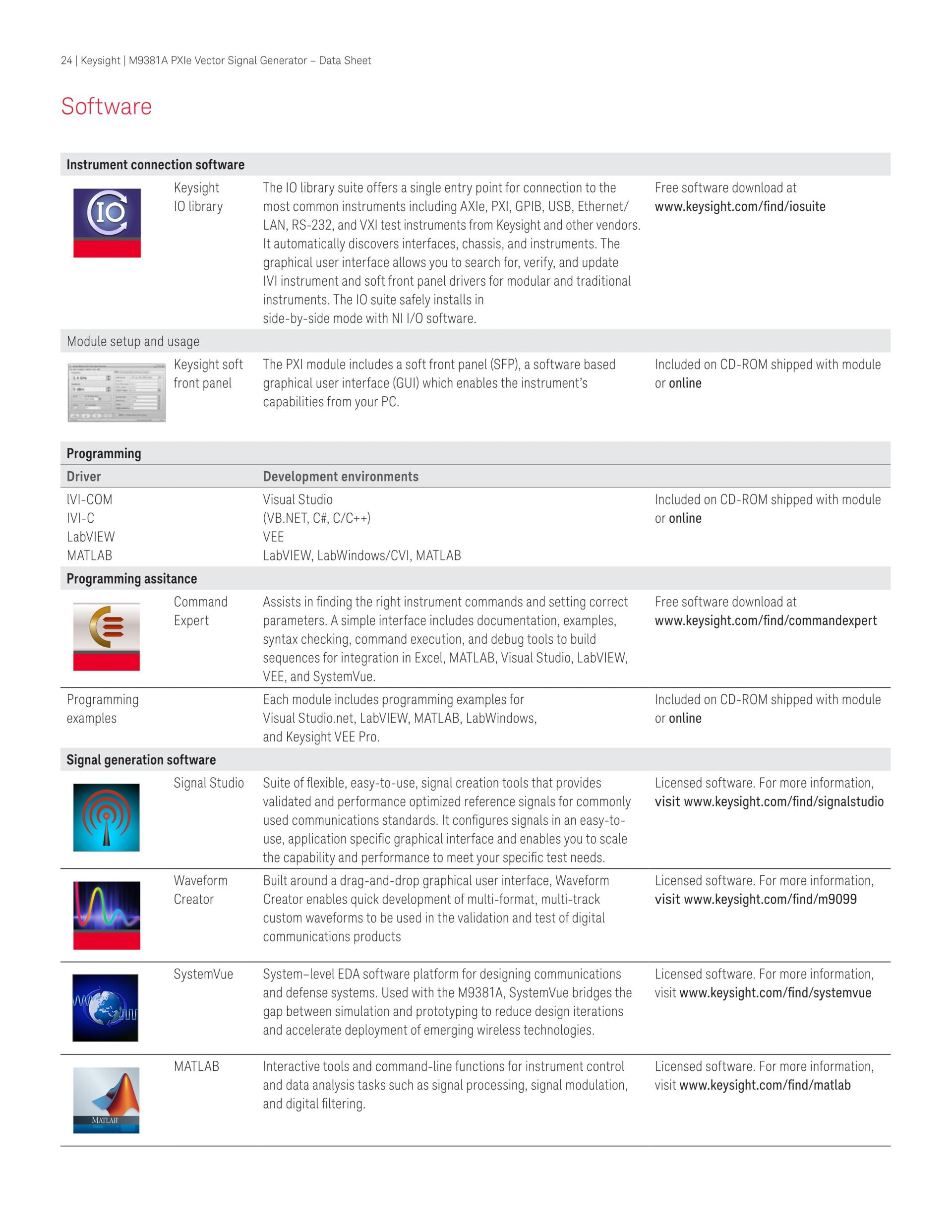 - IVI-COM, IVI-C, LabVIEW 및 MATLAB 드라이버를 사용하여 손쉽게 테스트 환경에 통합