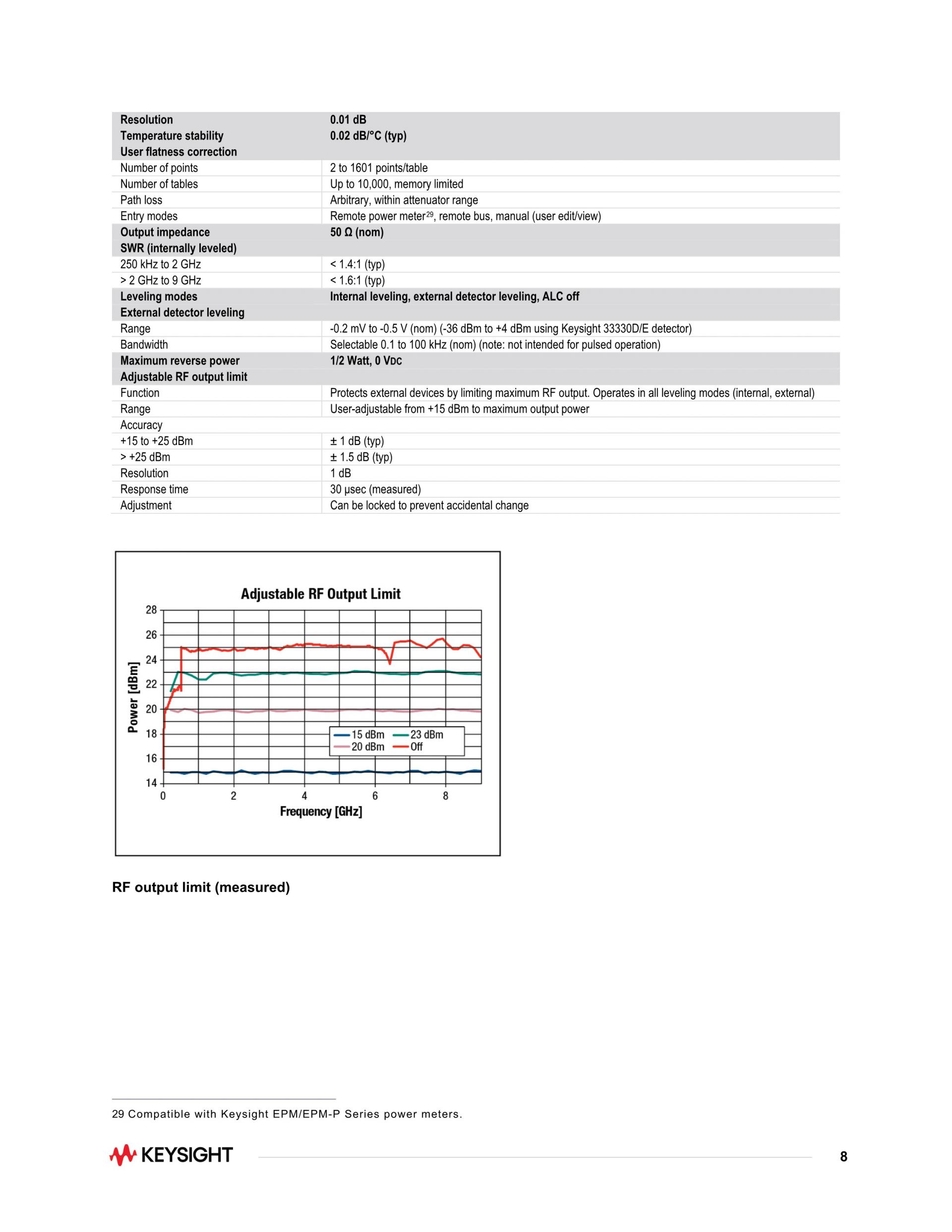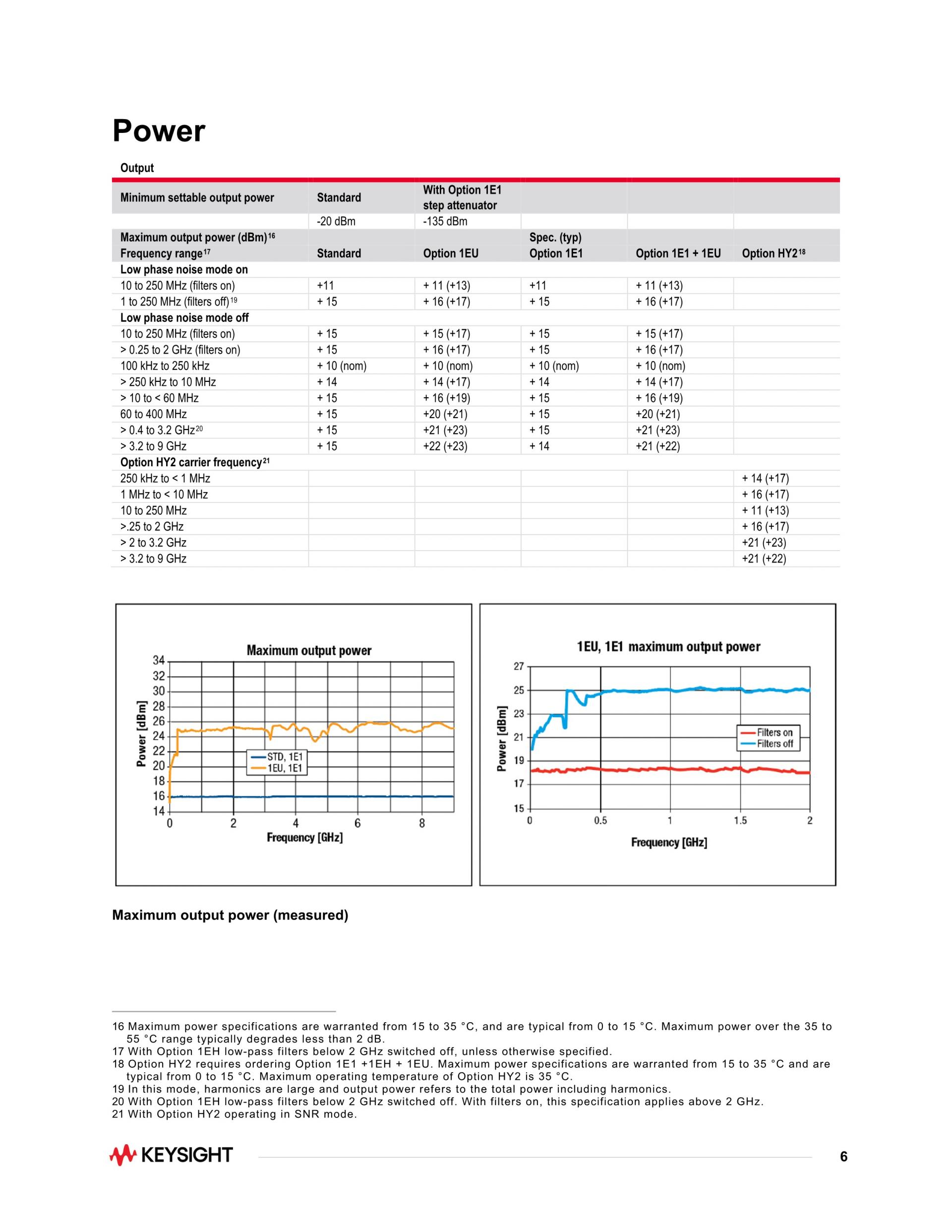- 높은 출력 전력과 우수한 수준의 정확도를 포함한 계측 등급 성능으로 까다로운 레이더 및 위성 통신 측정