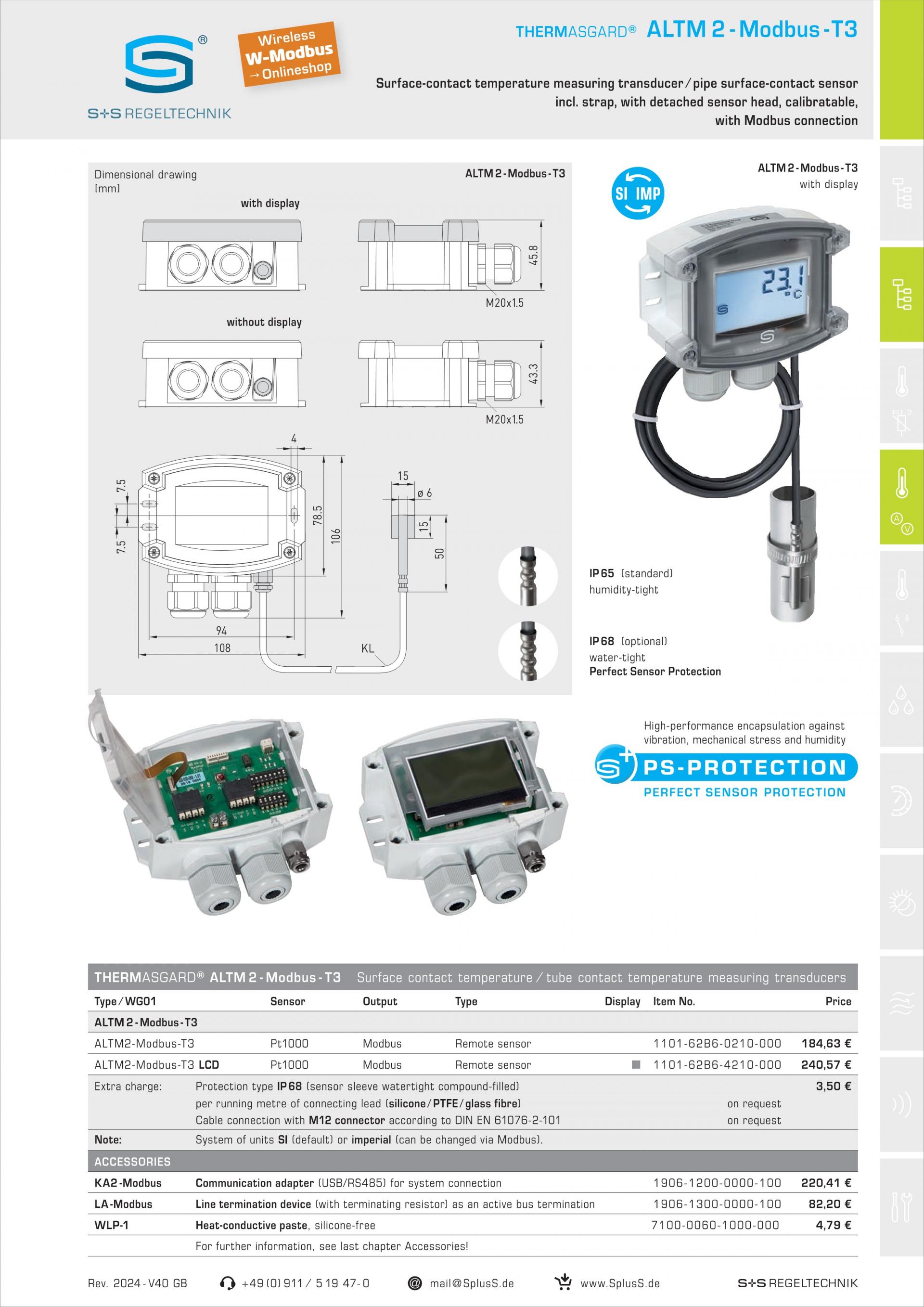S+S ALTM2-Modbus 표면 접촉 온도/튜브 접촉 온도 측정