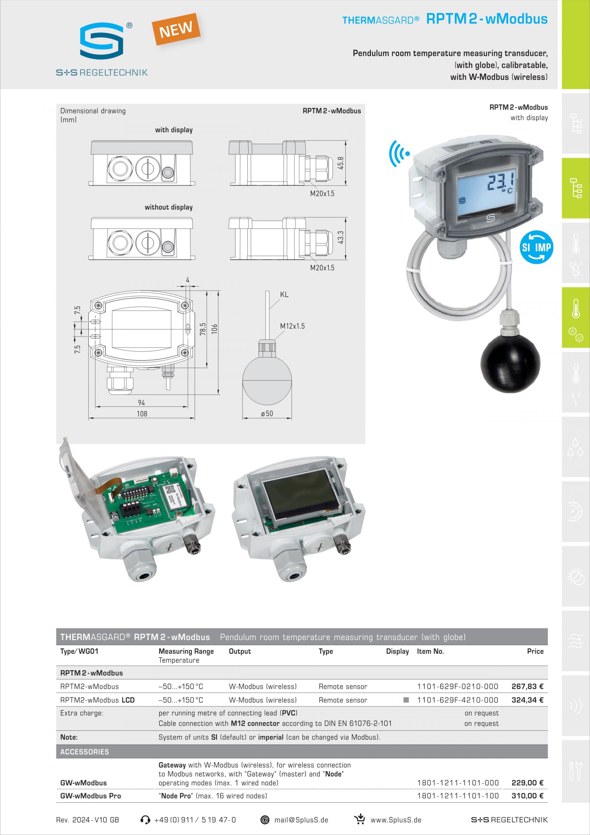 S+S RPTM2-wModbus WIRELESS Pendulum room temperature measuring transducer