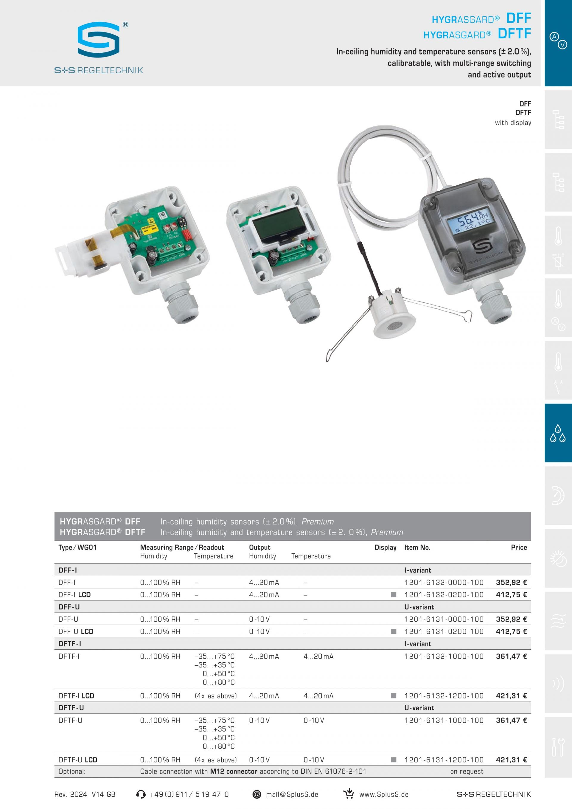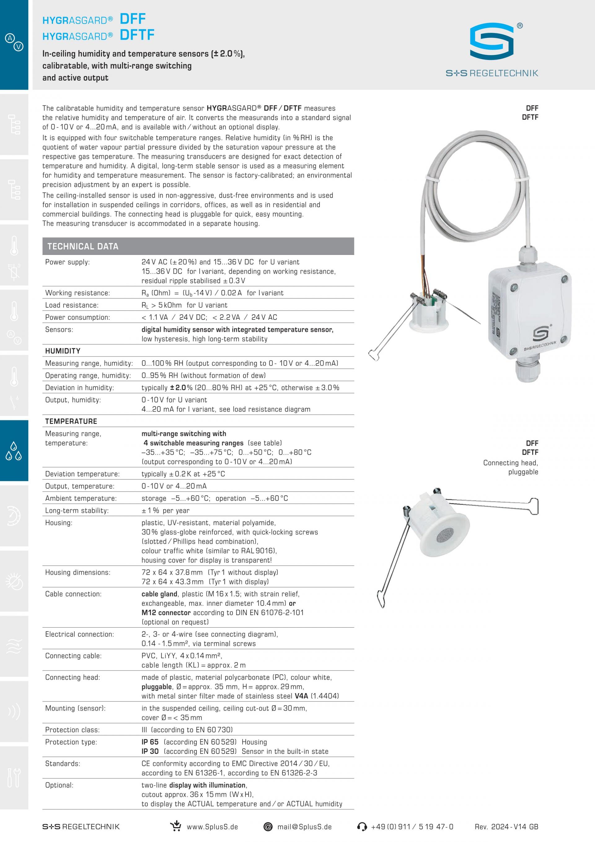S+S DFTF=Modbus Ceiling built-in humidity and temperature sensors