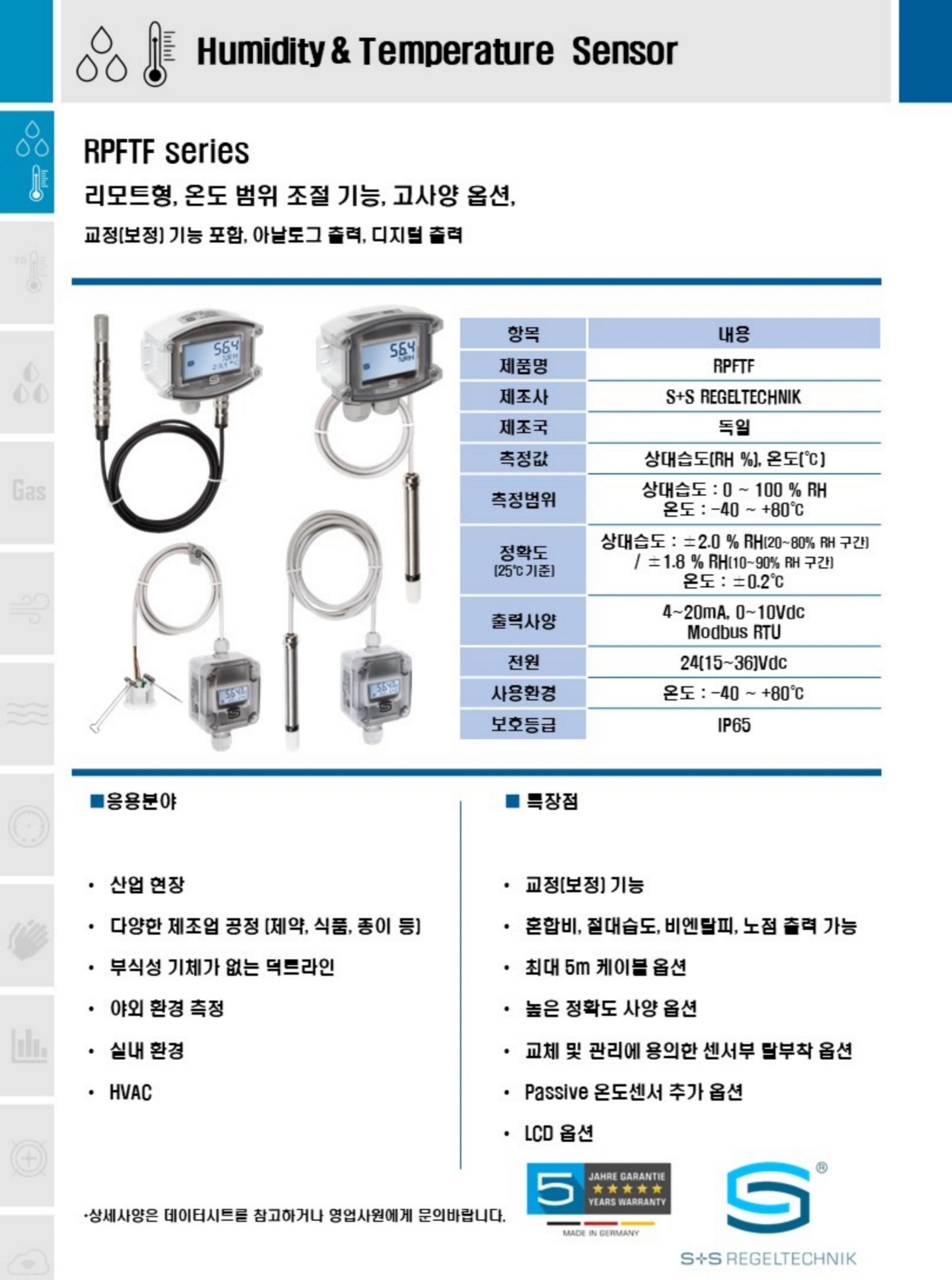 S+S RPFTF-20-Modbus 실내 진자 습도 및 온도 센서