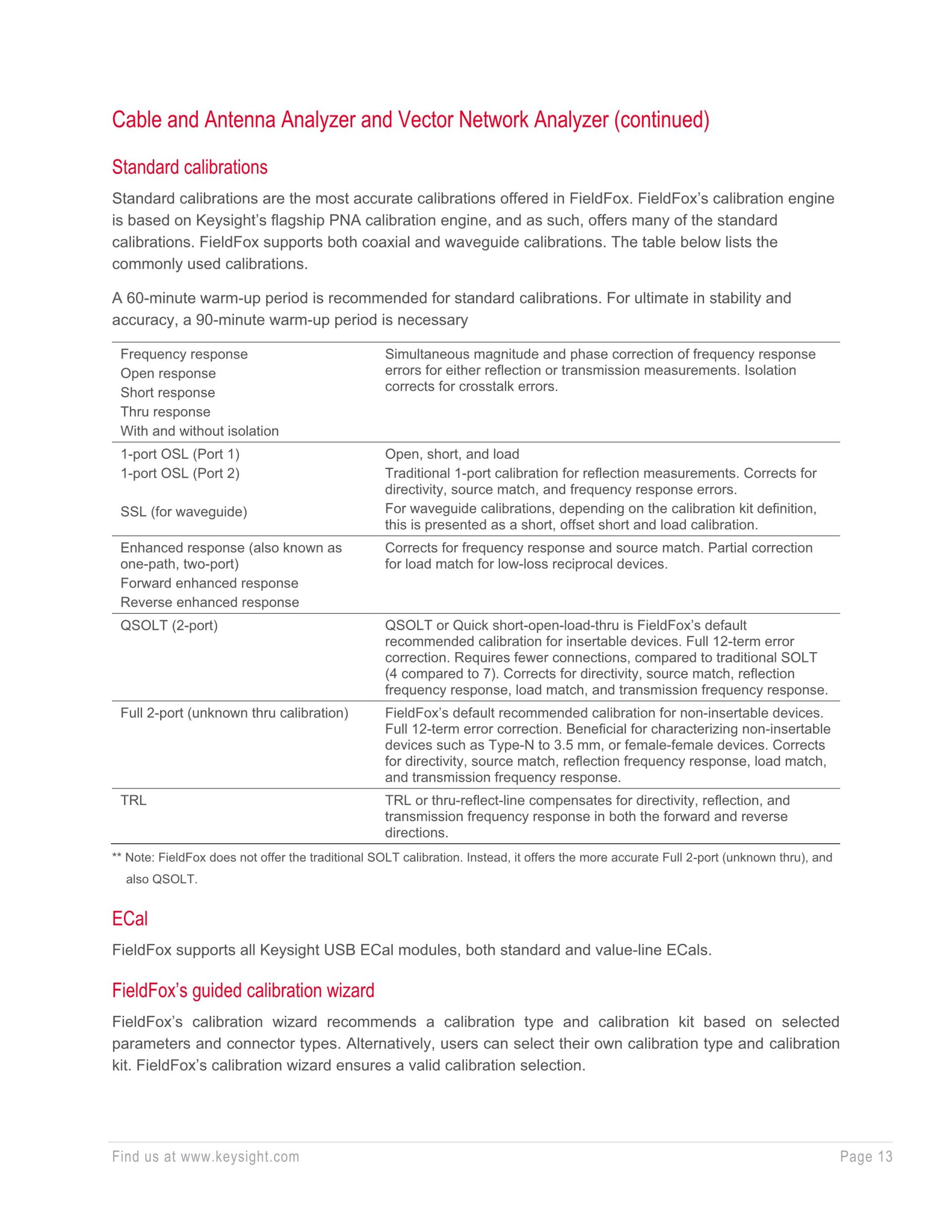 - 현장에서 QuickCal, 전체 2포트 Unknown Thru Cal, TRL(Thru, Reflect, Line) 교정으로 정확한 테스트를 수행합니다.