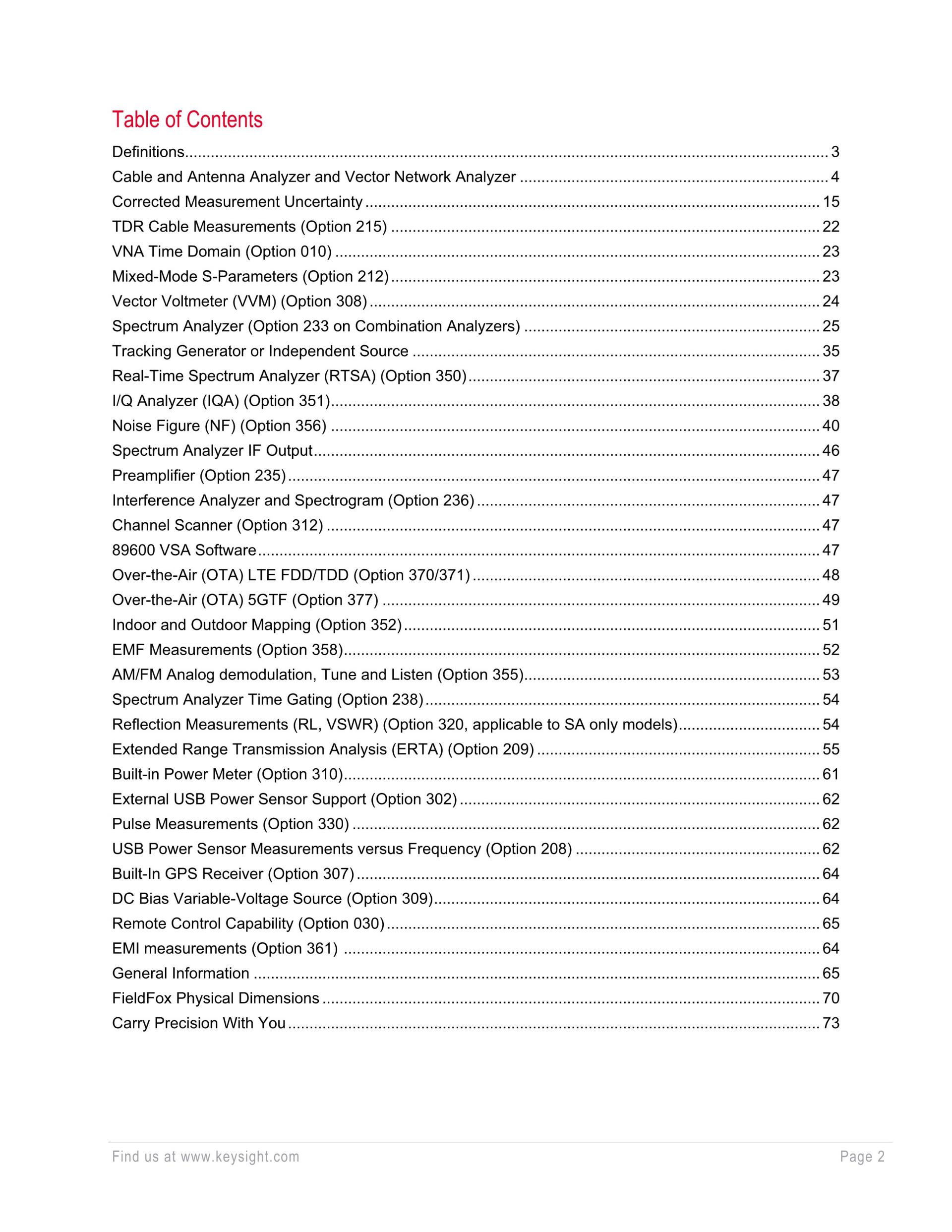 - 전체 2포트 VNA, 시간 도메인 반사계, 벡터 전압계, 케이블 및 안테나 분석기 등으로 구성합니다.