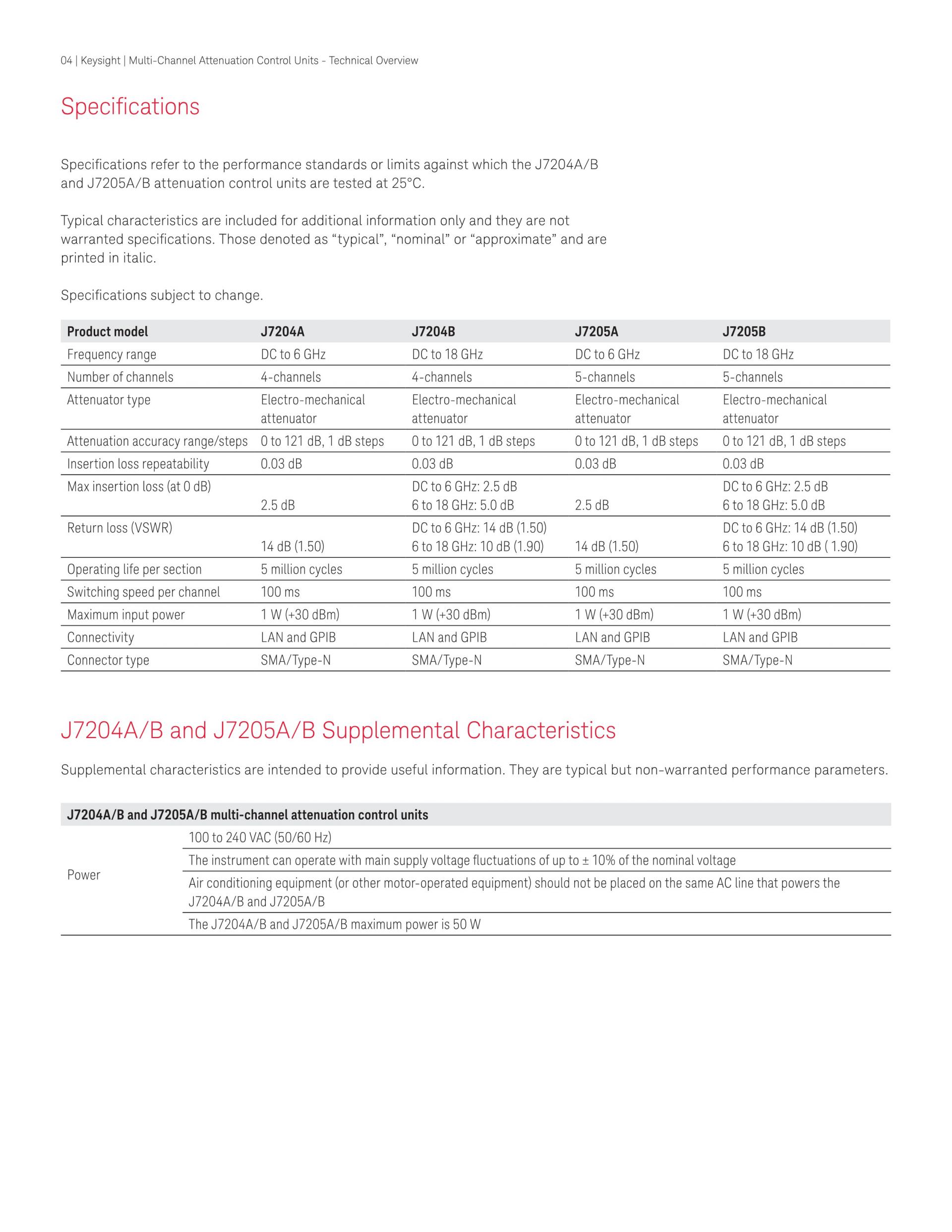 KEYSIGHT J7204A 다중 채널 감쇠 제어 장치(4채널), DC ~ 6 GHz, 0 ~ 121 dB, 1 dB 단계