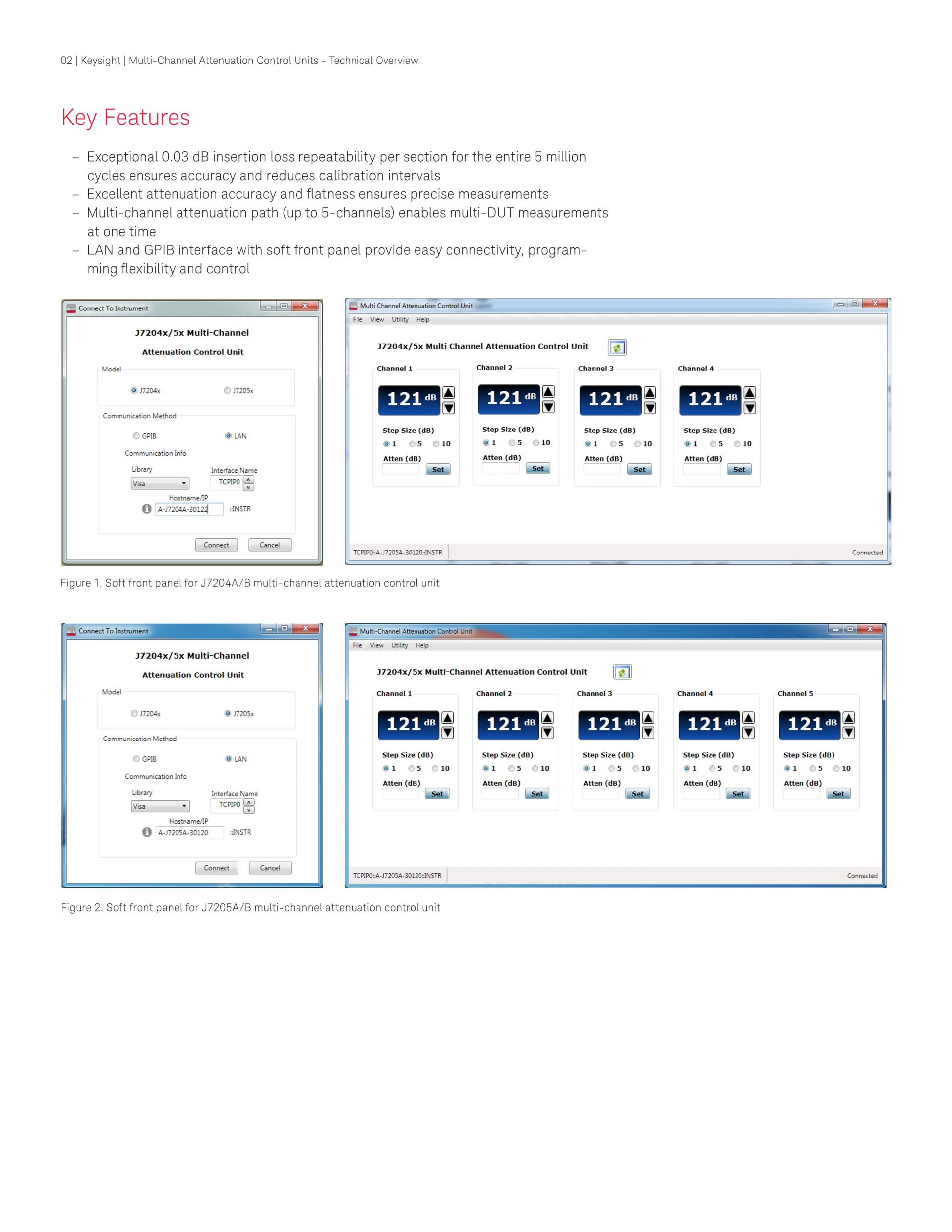 - 최대 4개의 DUT(devices under test)의 신호 감쇠와 컨티셔닝을 위한 멀티 채널 솔루션을 제공합니다