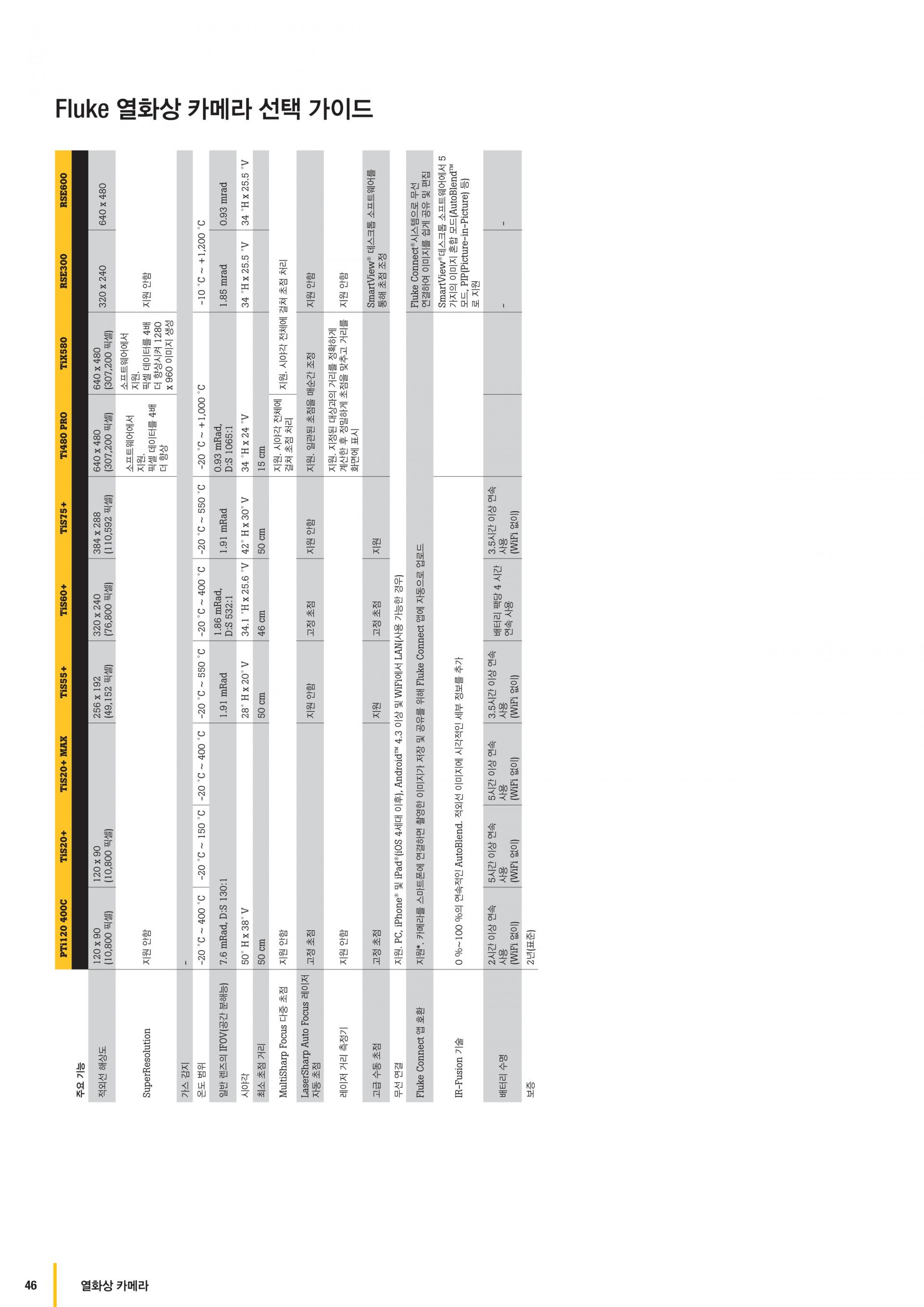 | Fluke Connect 즉시 업로드 | 지원. 카메라를 건물의 WiFi 네트워크에 연결하고 촬영한 이미지를 Fluke Connect 시스템에 자동으로 업로드하여 스마트폰 또는 PC에서 확인 |