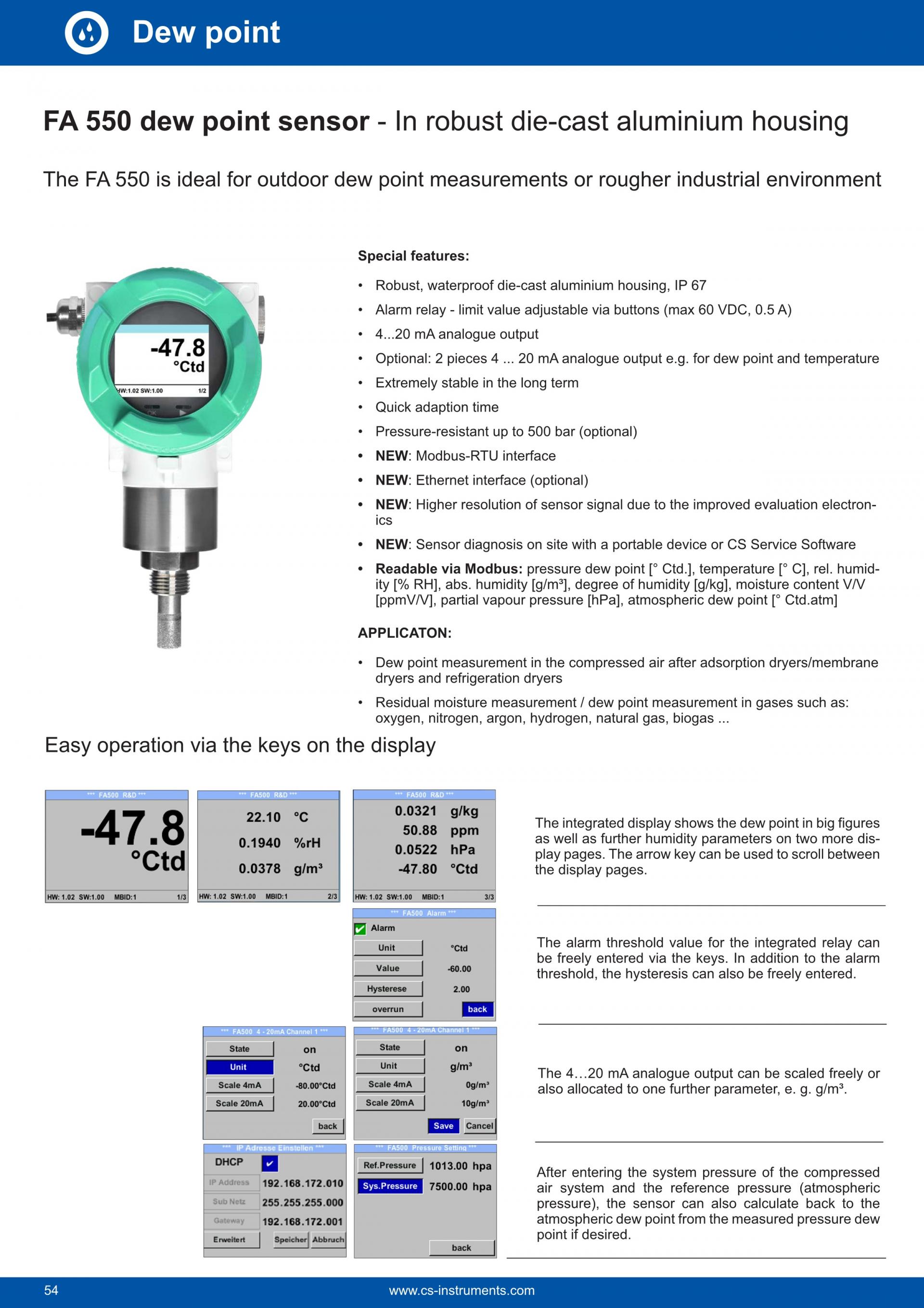 CS INSTRUMENTS FA 550 robust die-cast aluminum housing