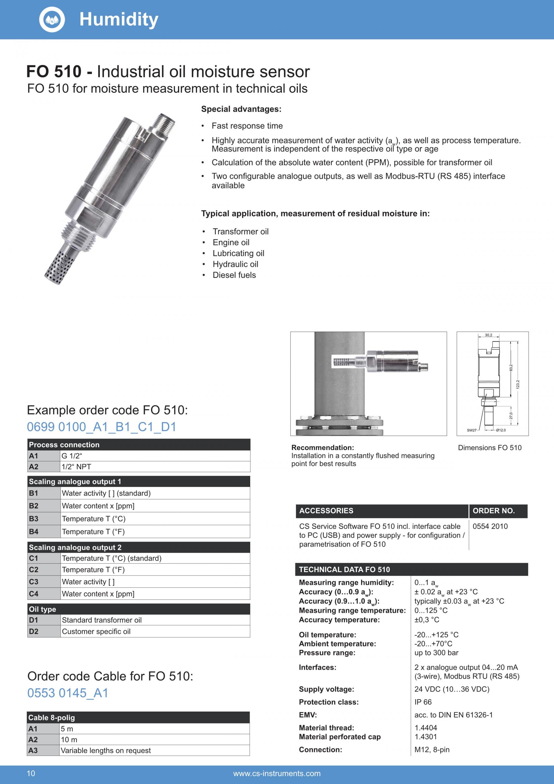 CS INSTRUMENTS FO 510 Industrial oil moisture sensor