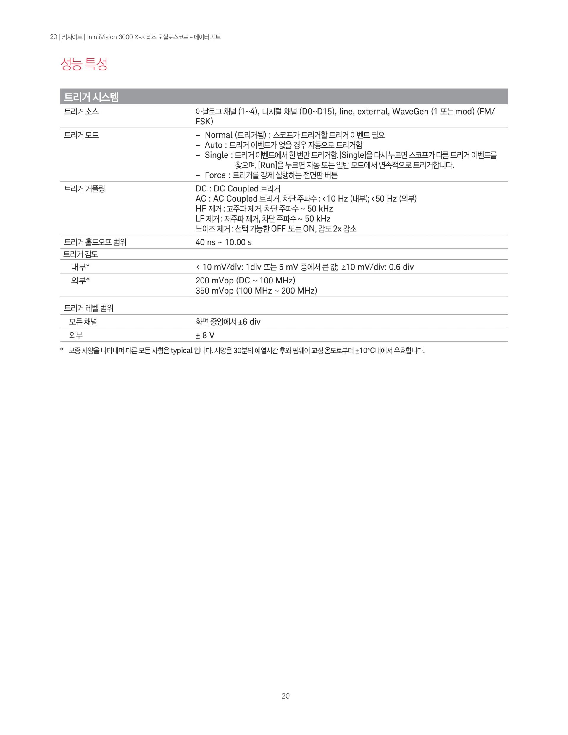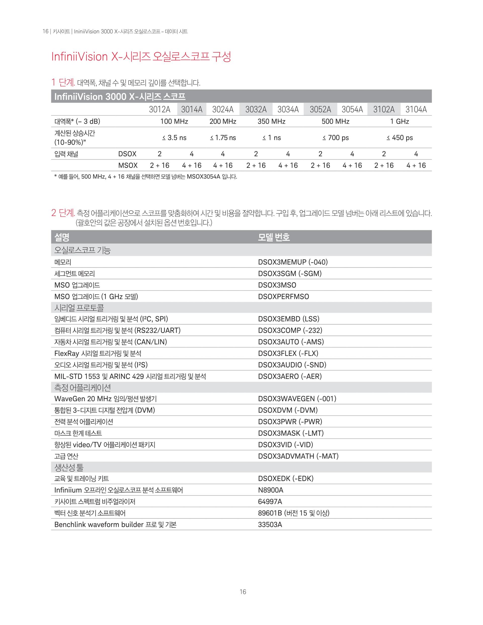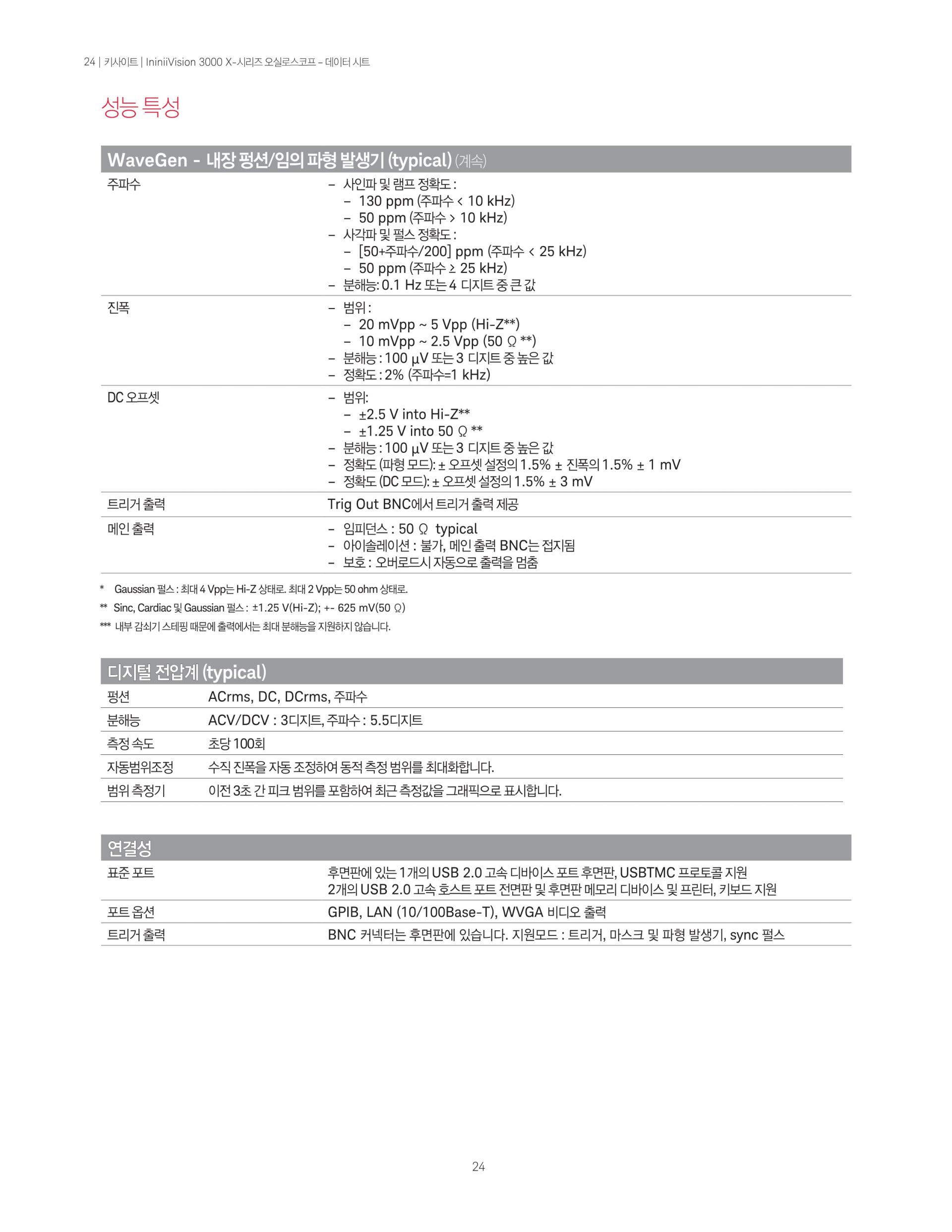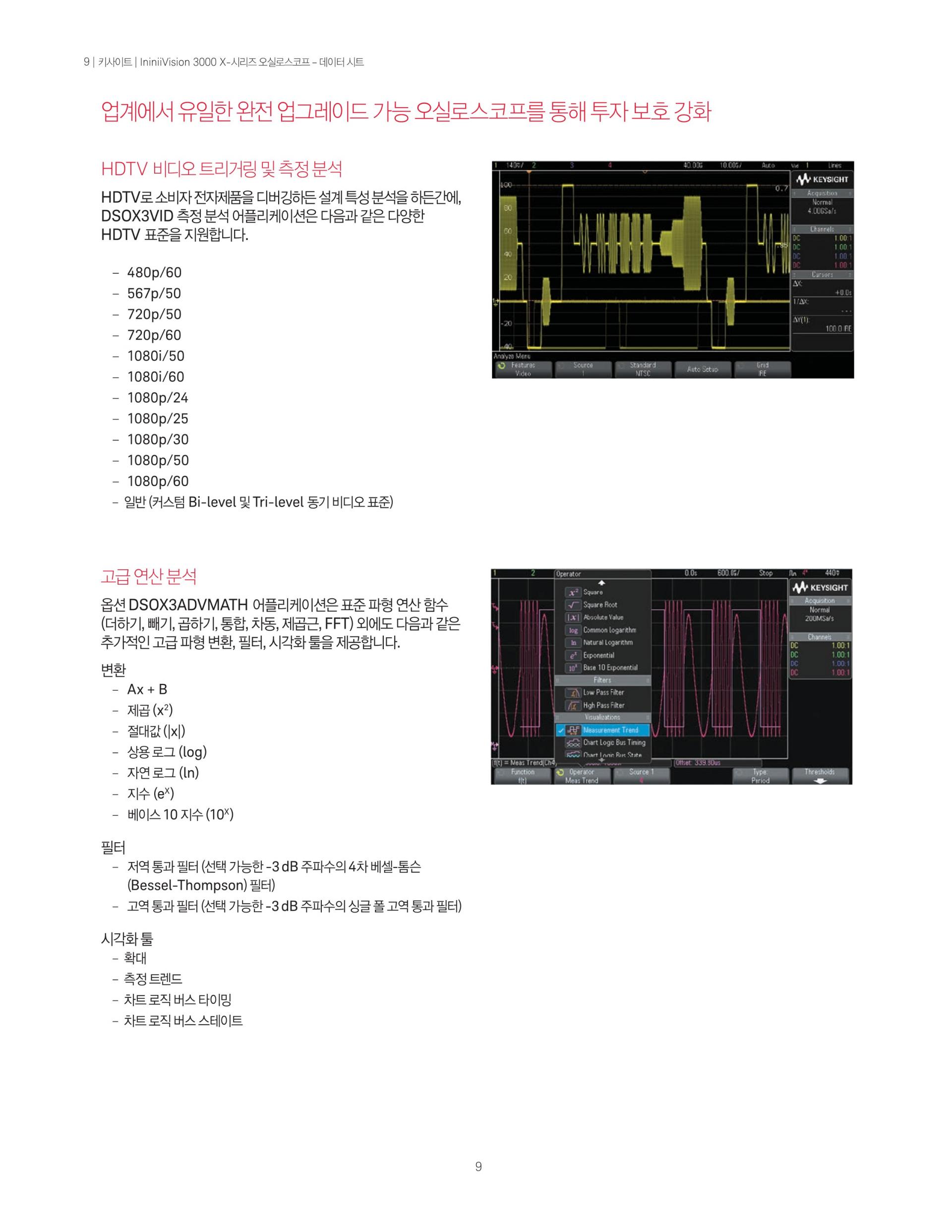 - 완전한 업그레이드의 용이성으로 측정 성능 확장: 메모리, 디지털 채널, 20 MHz 임의 파형 발생기(WaveGen), 3디지트 전압계, 시리얼 트리거 및 분석, 세그먼트 메모리 그리고 마스크 테스트 기능을 언제든지 추가