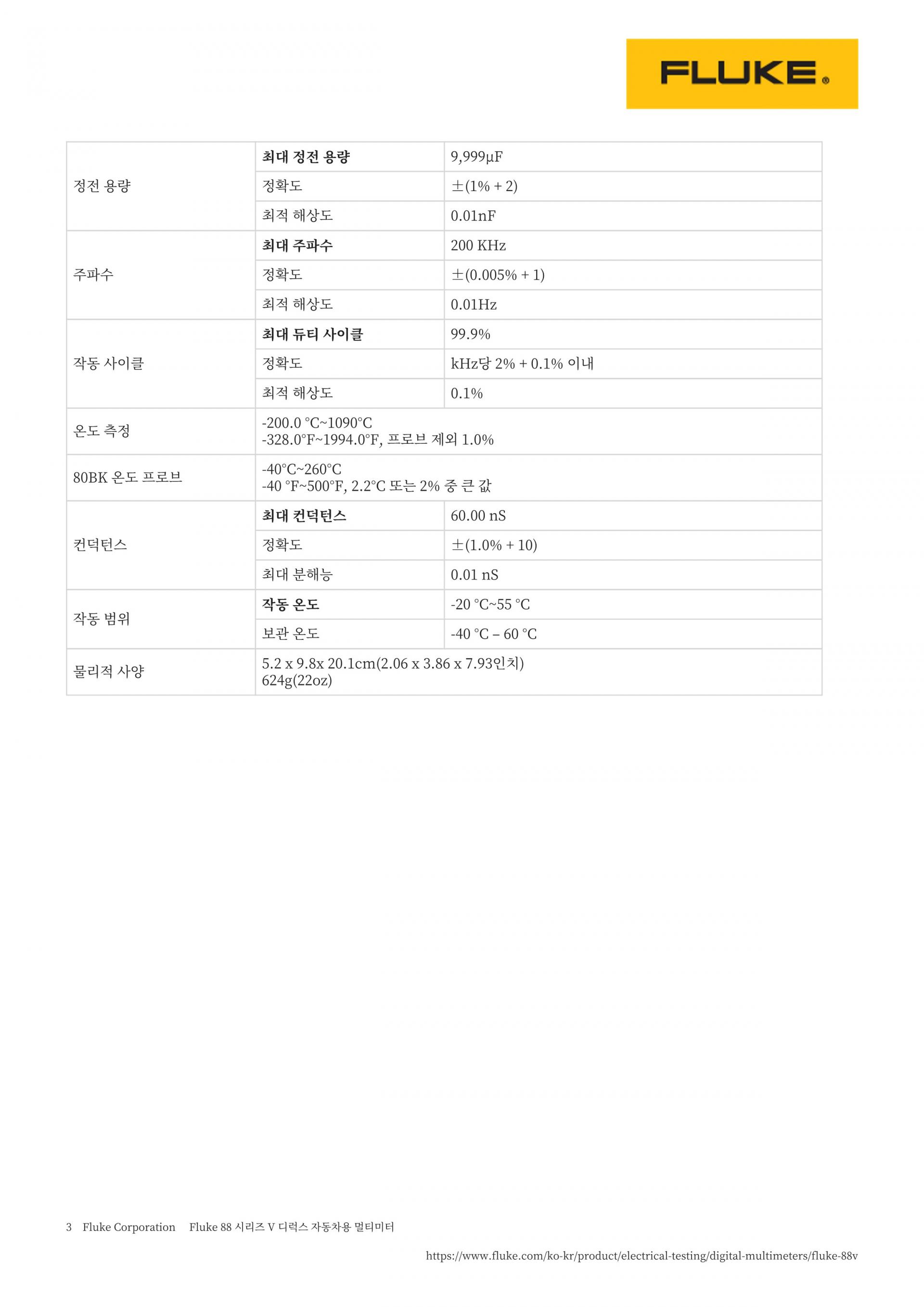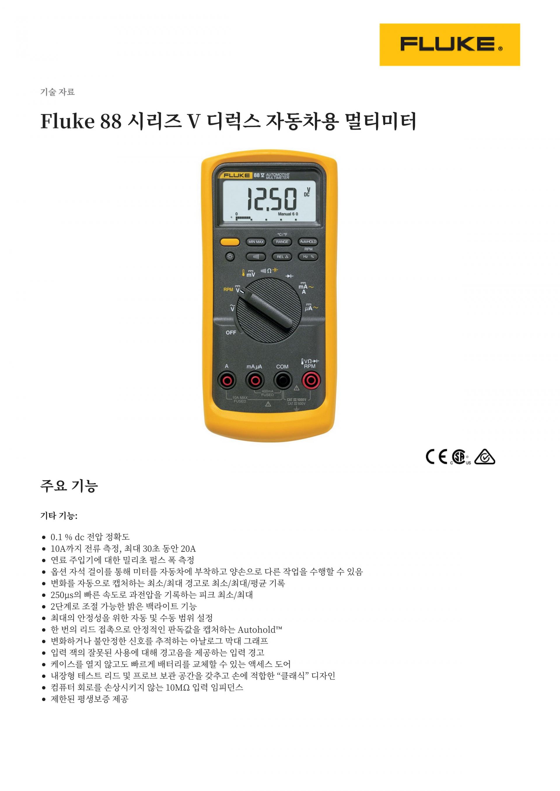 FLUKE 88V 디럭스 자동차용 멀티미터