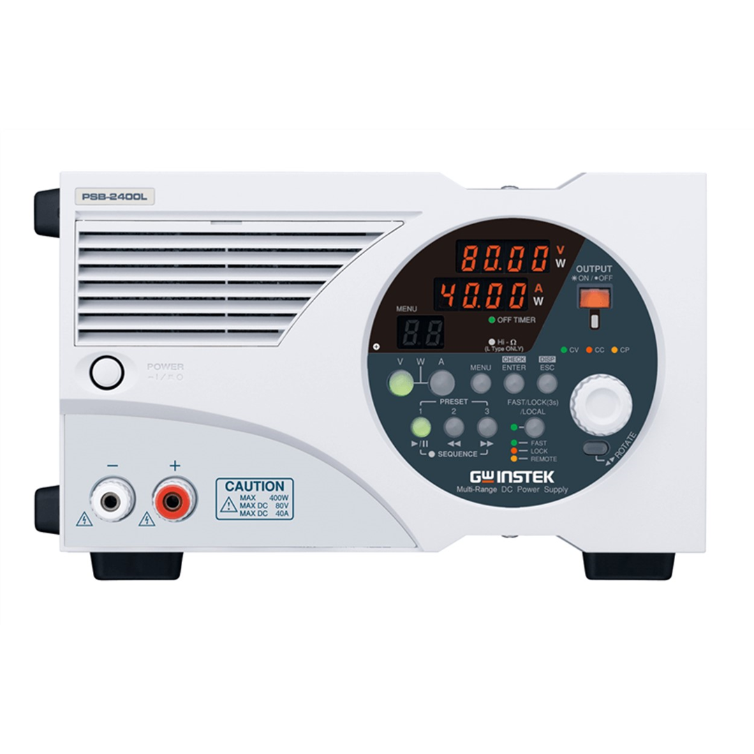 The PSB-2000 series, which is a high power density, programmable and multi-range output DC power supply. There are six models in the series including one power booster unit. The PSB-2000 series has the output voltage of 0~80V and 0~800V, and the output power ranges of 0~400W and 0~800W. The multi-range output functionality facilitates flexible collocations of higher voltage and larger current under the rated power range. Both series and parallel connections can be applied to the PSB-2000 series to fulfill the requirements of higher power output range.
