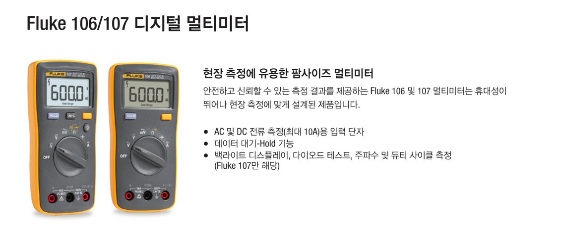 | 전류 입력용 퓨즈 보호 | 11A, 1000V 패스트 퓨즈, Fluke 지정 부품만 | |||