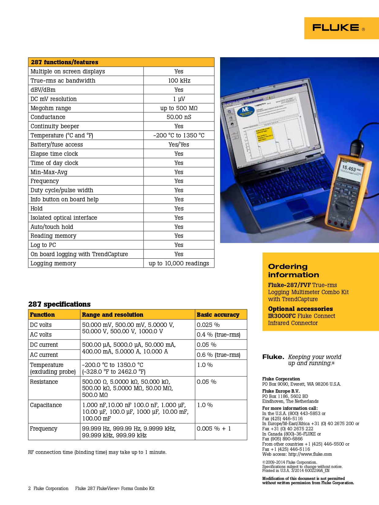 | Connectivity | Optional infrared connector via Fluke ir3000 FC | |